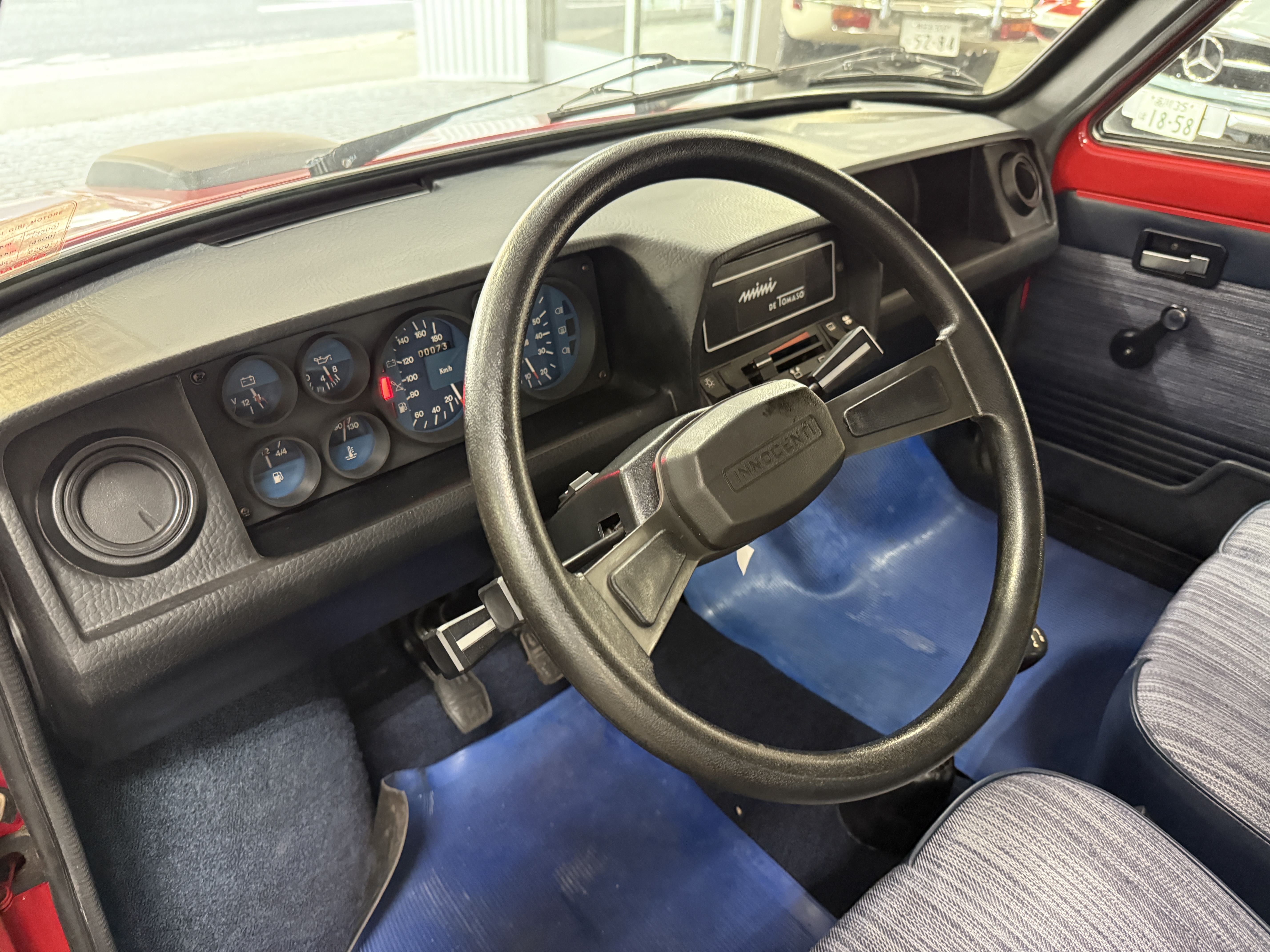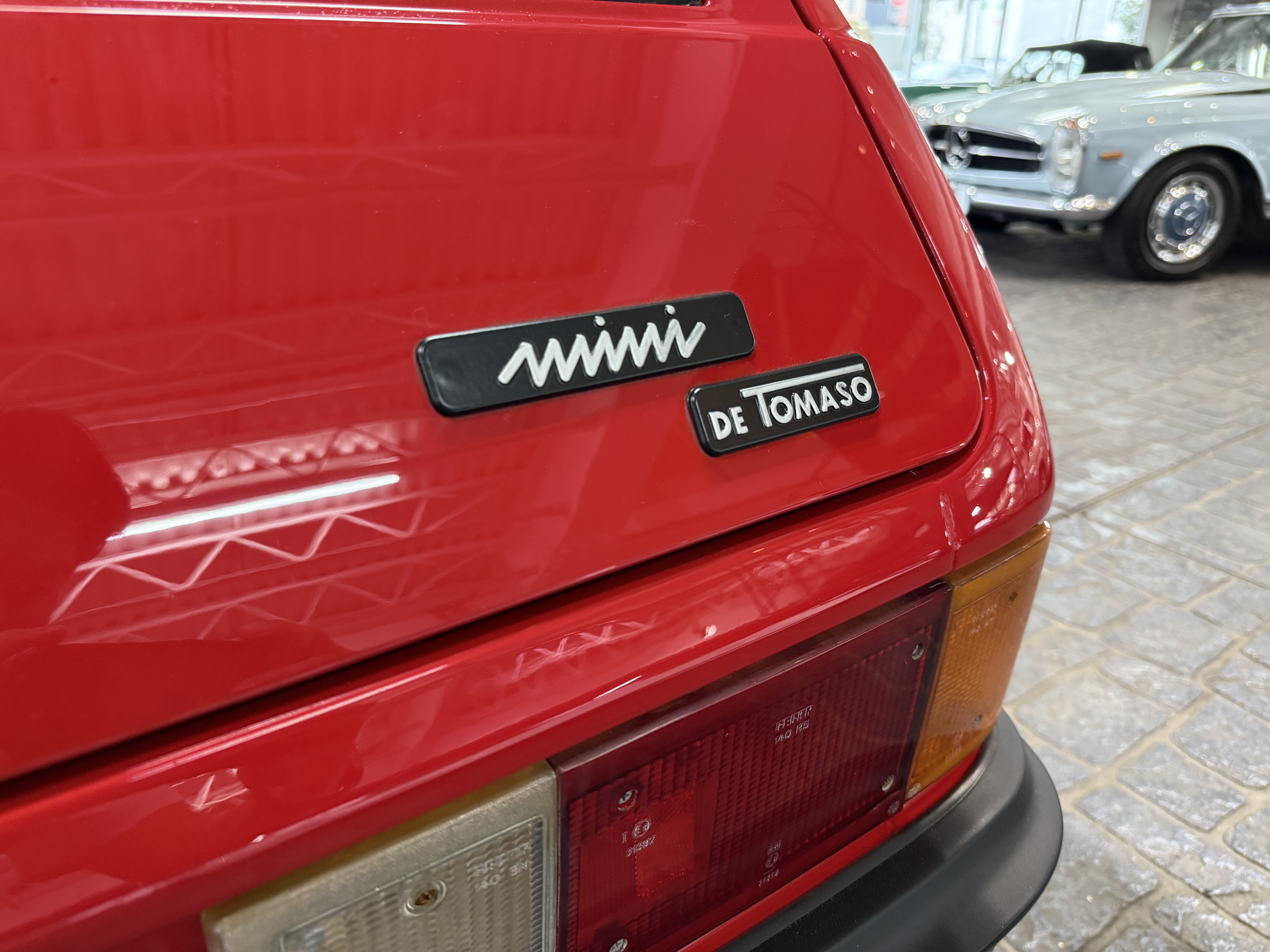 イタリアのイノチェンティ社は、創業者フェルディナンド・イノチェンティにより1920年に鉄製品の加工をメインとしながら創業開始し、その一歩を踏み出した。第一次世界大戦後にローマに誕生したこの会社は、工事現場用の足場に使うスチールパイプを製造し、1933年になるとそれを組み上げる為のクランプの発明により大きな成功をおさめた。第二次世界大戦後には、経済復興とモータリゼーションの高まりを感じたフェルナンドは、スクーターの製造を思い立ち、戦争のダメージを負ったローマの工場からミラノのランブラーテという土地に移転する。工場を新設したイノチェンティ社は、その土地の名前から「ランブレッタ」というブランドで、得意とするスチールパイプの技術をスクーターのフレームに活かして、スクーター製造業に進出し、1947年10月「ランブレッタ125M」を発売した。スクーターの製造で大成功をおさめたイノチェンティ社ではあったが、戦後復興が進む50年代後半になると、徐々に豊かさを取り戻したイタリア国内では「フィアット500/600」などの小型車が台頭し、スクーターからの乗り換えが多く見られる様になった。そこでイノチェンティ社は、1958年に自動車市場への参入を決定する。イタリアで小型大衆車の圧倒的なシェアをもつフィアットに、正面から対峙するつもりは全く無かったイノチェンティ社は、英国のBMC(ブリティッシュ・モーター・コーポレーション)を提携先として選んだ。イノチェンティ社は、1961年にBMC傘下に入ると、1964年には「ADO16」をベースとする「IM3」を発表する。オリジナルの「ADO16」のボディはカロッツェリア・ピニンファリーナによるデザインとなるが「IM3」は、このピニンファリーナによりフロントマスクを始めとするリデザインが行われ、インテリアもイタリア車らしくアレンジが施されたモデルとなっている。その翌年の1965年には、市場拡大を狙って「ミニ」の生産を開始する。イノチェンティ社製の「ミニ」は、生産初期モデルだけ、英国・ロングブリッジ工場から送られた部品をBMCから購入し、ミラノの工場で組み立てる方法で生産された。しかしコストの関係から、すぐに電装品、ホイール、ウィンドウなどのコンポーネンツの多くがイタリア国内産とされた。イノチェンティ社により生産される「ミニ」はオリジナル同様、上質な小型車としての成り立ちをもち、革新的な小さく広いボディは魅力に溢れ成功を約束されている様に見えた。ところが充分な成功を収める前に、強力なライバルが登場する。イタリアの巨人・フィアットが1969年に送り込んできた「アウトビアンキA112」だった。このモデルも上質な小型車として誕生した経緯をもち、1971年にはスポーツモデルのアバルト版も加わりラインナップを強化していた。この「アウトビアンキA112」の登場により、イノチェンティ社はアレック・イシゴニスによるデザインの「ミニ」と訣別する事とし、新たなボディデザインをカロッツェリア・ベルトーネに依頼する。1974年10月にお披露目された新型は、直線的なラインを特徴とする僅かに拡大されたボディをもつ「イノチェンティミニ90/120」となり、ベルトーネ在籍のデザイナー、マルチェロ・ガンディーニが担当したデザインとなる。跳ね上がったルーフ後端部をアクセントに持つモダンなボディと、ホイール/タイヤはそれまでの10インチから12インチ化されたが、搭載されるエンジンはそれまでと同様に、オリジナル・ミニのBMC-Aタイプを搭載。998cc/49馬力(ミニ90)と、1275cc/65馬力(ミニ120)が、ラインナップされた。しかし、翌年の1975年夏になると親会社のBLMC(BMCは1966年にジャガー社を合併しBMHとなるが、1968年には商用車の製造をするレイランド・モータースを加えBLMCとなった)が、財政危機にみまわれ国有化される流れの中で、イノチェンティ社は放出される事となる。倒産へと向かうイノチェンティ社の救済の為に、イタリア政府とGEPI(産業経営参画会社)が間に入り、その経営はアレッサンドロ・デ・トマソに任される事となる。アルゼンチンに生まれたデ・トマソは、自身の名前を冠したスポーツカー・メーカーをモデナに設立し、常に自動車への強いパッションを持ち続けてきた人物で、そのグループ傘下には、親会社シトロエンの経営難により資金繰りに行き詰まったマセラティ社を抱え、その再生を思案していた。イノチェンティ社も自身のグループ傘下としたデ・トマソは、会社を存続すべく「アウトビアンキA112アバルト」や「ミニ・クーパー」に対抗する高性能小型モデルの開発を指示する。そして1976年秋のトリノ・ショーで発表されたのが「イノチェンティミニ・デ・トマソ」となる。「デ・トマソ」の名称は既に「マングスタ」や「パンテーラ」によりスーパースポーツの領域に確たる地位を築いていたので、最高速度160km/h以上を誇るスーパー・ミニの高性能を誇示するのに相応しいネーミングとなっている。基本的なボディ骨格は