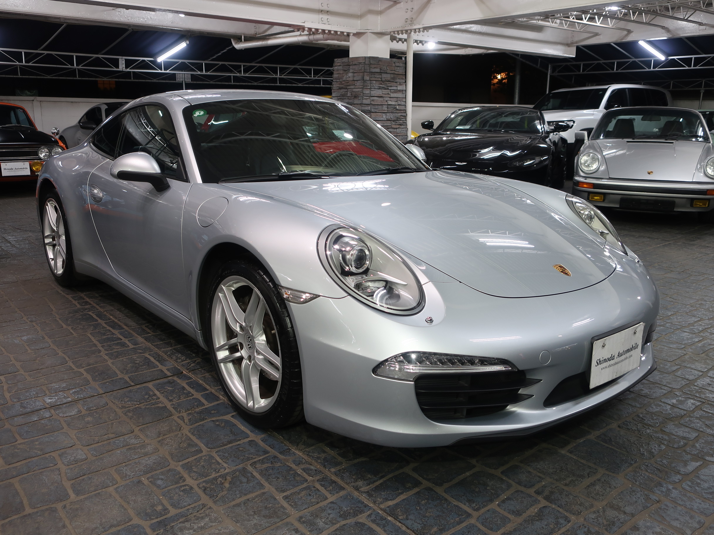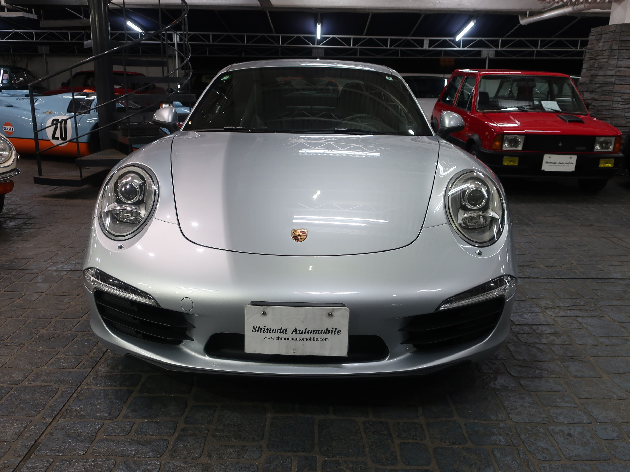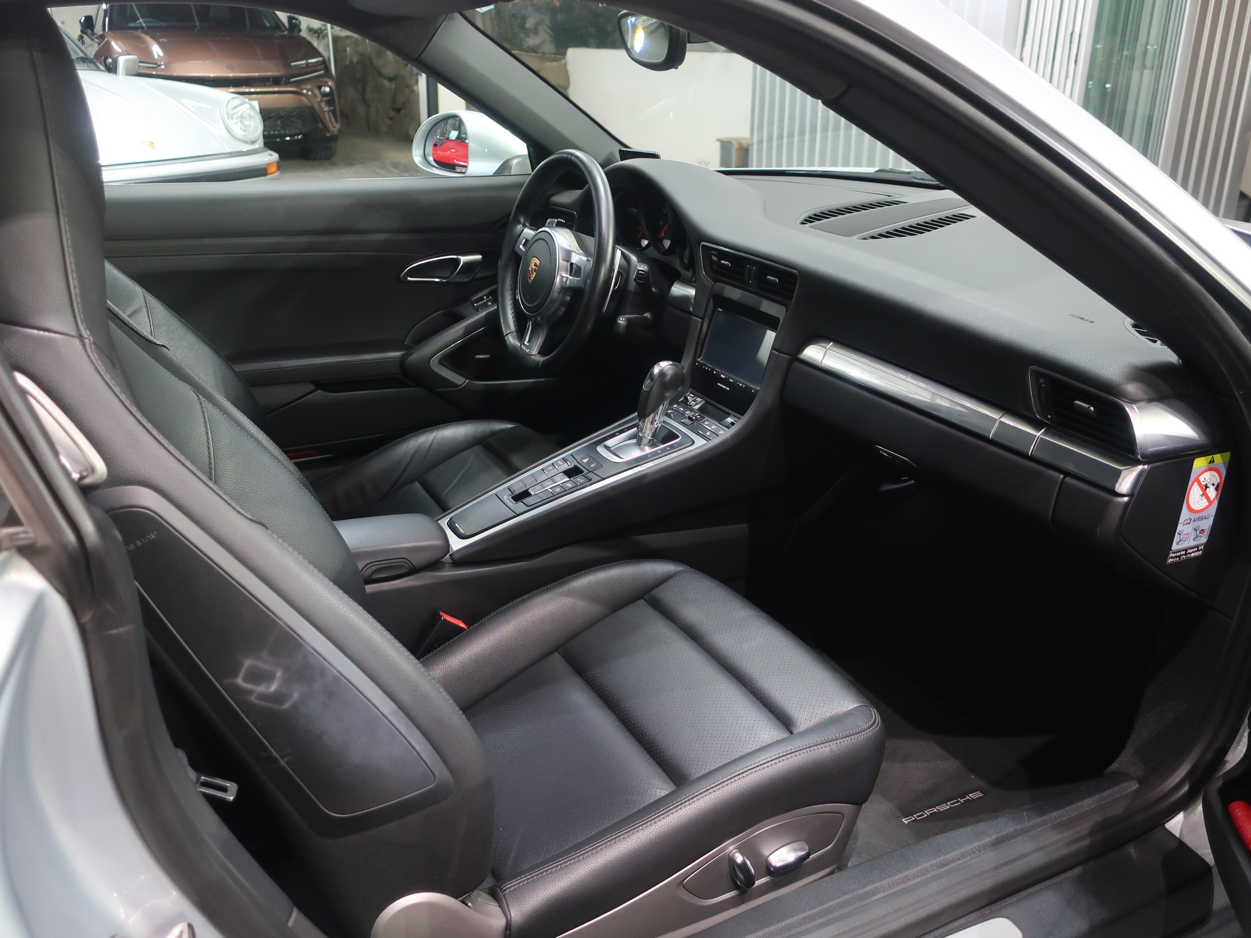 ︎2011年8月29日、ドイツ南部の街、シュツットガルト近郊の本社に隣接するポルシェ博物館で「911カレラ・スニークプレビュー」が開催され「991型カレラ」はそこではじめて公開された。先代となる「997型カレラ」から「998型」と型式を継承しなかったのは、続き番号にすることで開発中の部品が次期「911」のものと漏洩してしまうのを防ぐためと「997型」のエボリューションモデルでは無く、それ以上に大きな変化・進化が込められた事による。先代の「997型カレラ」に比べ一挙に大型化されるという事前情報が広まる中で、車幅はほぼ同寸の1808mm、全長も56mmという僅かな増加に留まり、ボディサイズの大きな変更は行われなかった。大きくなったように見えるとすれば、100mm延ばされたホイールベースと、拡大されたフロントトレッド、それに伴いより幅広い間隔で、外側にレイアウトされた「911」の特徴となる丸型のヘッドライトによるもの。LEDテクノロジーを用いたテールランプは、シャープな薄型形状とされリア回りはランプ上方レベルで、リアエンドを取り巻く水平ラインが強調され、先代との変化がわかりやすい。ルーフラインが数ミリ下げられ、ウィンドウグラフィックがスリークな形状にリファインされることで、伸びやかで「モダンな911」というイメージのボディデザインは、より「911」らしいデザインを追求した結果だといわれている。そのボディデザインは、メルセデスベンツで初代「SLK」を手がけ「スマート」や「サーブ」を経て2004年にポルシェ・デザイン部門に移籍し、「993型カレラ」をデザインしたハーム・ラガーイの後任としてチーフとなったミハエル・マウアーによるもの。マウアーはナロー時代の「911」がもつ美しいシルエットを意識しつながら、リアフェンダーの織りなす曲面や、丸型ヘッドライトカバーにバブル形状の膨らみを持たせるなど、細部にわたりこだわったデザイン表現を用いている。「991型カレラ」の正式なショーデビューは2011年9月のフランクフルトショーとなる。前世紀末にフラット6エンジンが水冷化され「996型カレラ」として登場した「911」は、キープコンセプトともいえる「997型カレラ」に進化した後、この「991型」では久しぶりの「フルモデルチェンジ」に近い、使用部品の95%が刷新された「911」となっている。先代までの頑強な鋼板製のモノコックボディは、様々な種類のスチールに加え、アルミやマグネシウムなどを用いたハイブリッド構造となり、モノコック単体で45kg軽く仕上げられている。フロントフェンダー、トランク・フード、ドア、リア・エンジンリッドはアルミ製とされ、インテリアトリムの樹脂素材の最適化により、さらなる軽量化もほどこされている。「991型」では先代に比べ、静的捩れ剛性で25%、動的捩れ剛性で20%、固有振動数で13%の向上が図られ、軽量化されながらも剛性アップも達成されている。ダイエットされたボディに対しパワーアップしたエンジンを搭載、組み合わされるギアボックスは、新型7段PDKと、これをベースに乗用車史上初となる7段MTが設定されている。新たに採用された電動パワーステアリングは、良好なタッチとナチュラルな感触により洗練されたフィーリングをもちながらも、路面からのキックバックが少なくおさえられ、古くからの「911」ファンには少し物足りなく感じられるかもしれない。120km/hで上昇し、80km/hで格納される電動式リア・スポイラーは、空力的に有効な範囲が898mmから1137mmに拡大され、サイドウィンドウ前端からドアパネルに移設したサイド・ミラーやフラット化されたフロアパネル、冷却システムの刷新により、ワイドタイヤ装着にもかかわらずCd値は0.29へと向上している。「964型」以降全ての「911」開発に携わり「991型」の開発も担当した、チーフ・プロジェクト・エンジニアのアウグスト・アハライトナーは「あらゆる重要な分野で991型は一歩前進している」とコメントを残している。また、2006年以降ポルシェの開発プロジェクト・チームに加わった伝説のラリー・ドライバー、ヴァルター・レアルは「991型は、バランスが良くドライバーに従順で、これ以上手の入れようの無いクルマ」と高い完成度を力説している。︎今回入荷した2015年式「911カレラPDK」に搭載されるエンジンは、MA104型とよばれるオールアルミ製の水冷式・水平対向直噴6気筒DOHC24バルブエンジンとなり、ボア×ストローク97mm×77.5mmで、3436ccの排気量を得る。MA104型エンジンは先代の「997型カレラ」が搭載するMA102型エンジンに比べ178cc少ない排気量となっている。これは、ボアは共通ながらストロークを「997型カレラS」用の3.8ℓ・MA101型のコンロッドを用いる事で4mmショート・ストローク化した事によるもの。排気量を下げながらも12.5の圧縮比をもち、最高出力は350馬力/7400rpm、最大トルク39.8kgm/5600rpmを発揮、「997型カレラ」に比べ、5馬力アップと同等のトルク値を実現している。排気量を縮小しながらもパフォーマンス・アッ