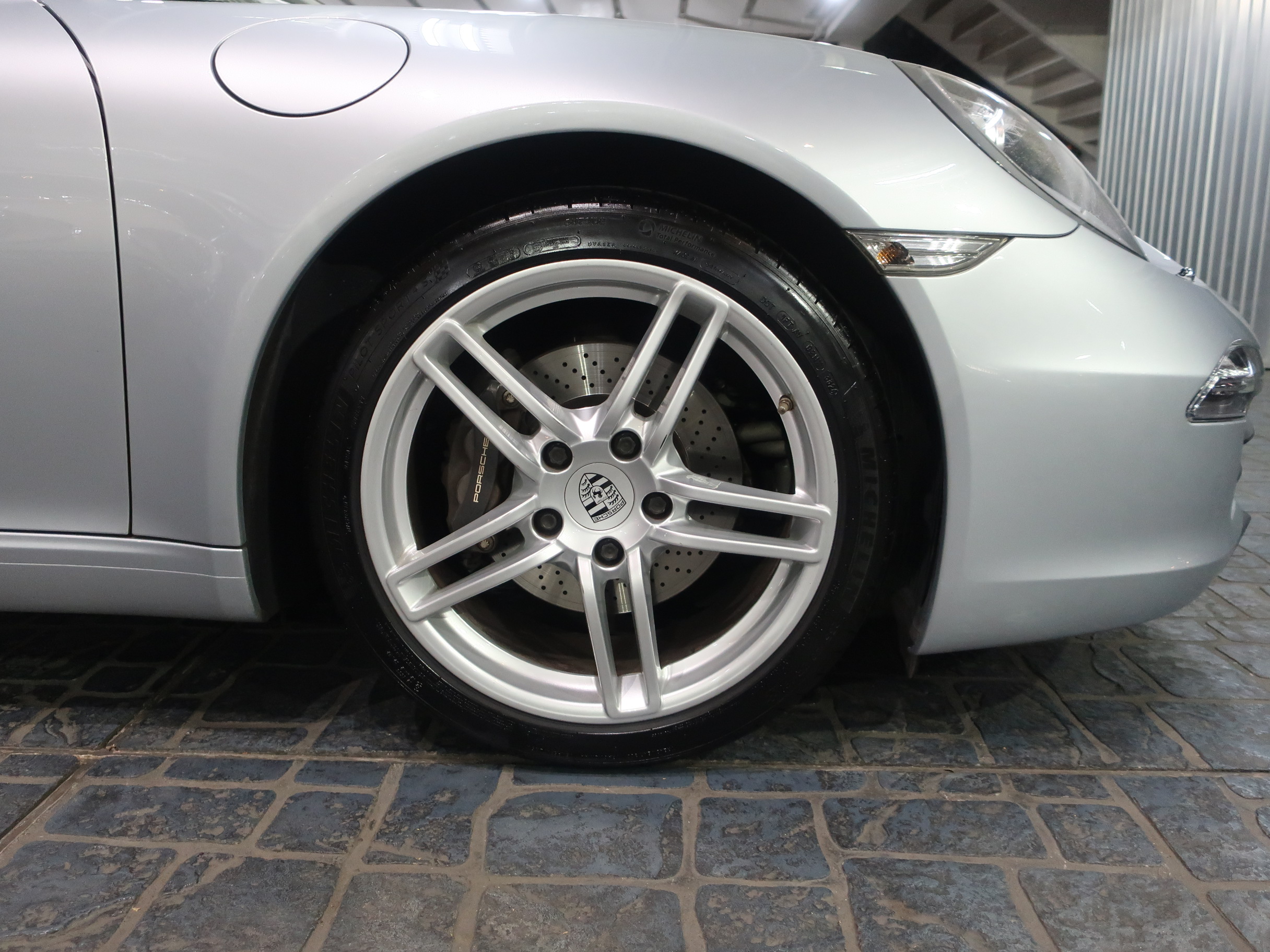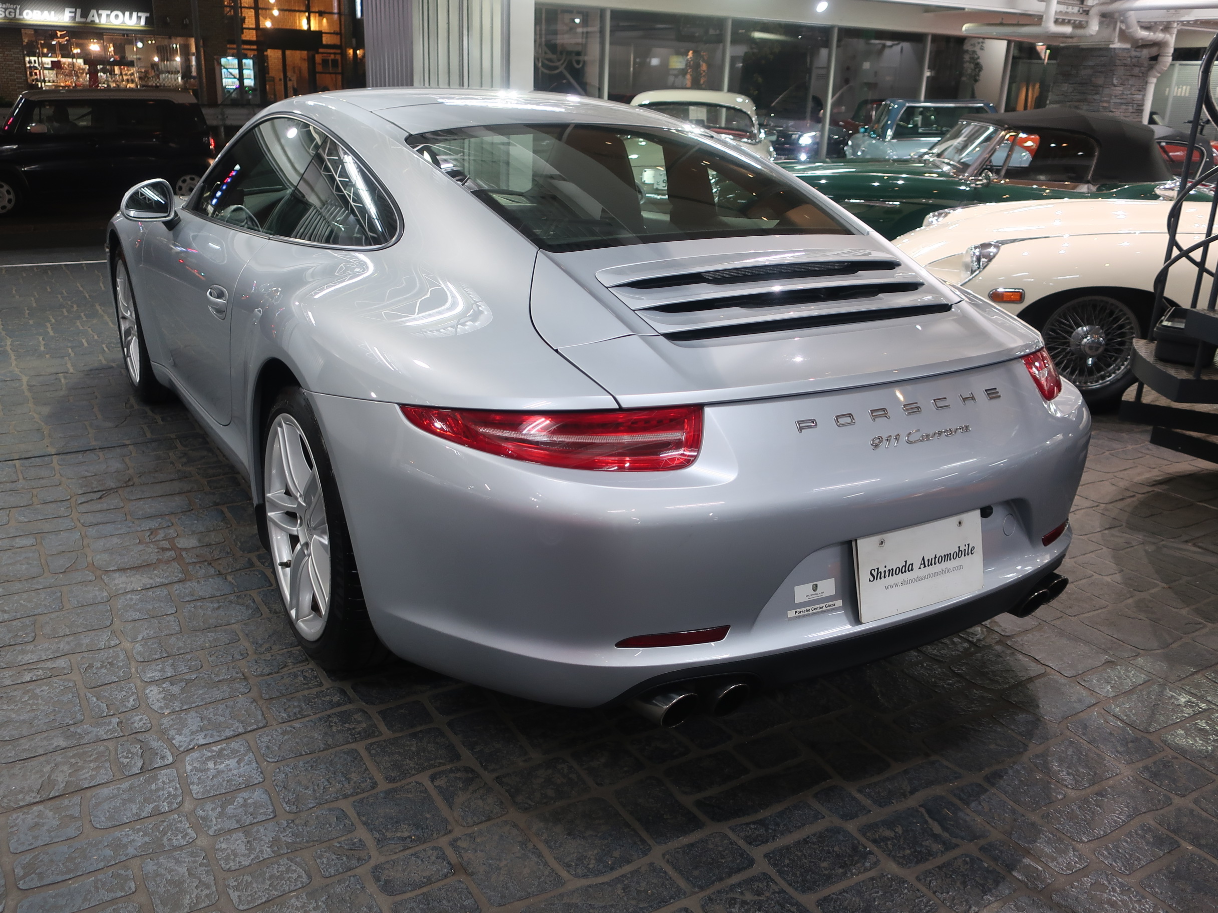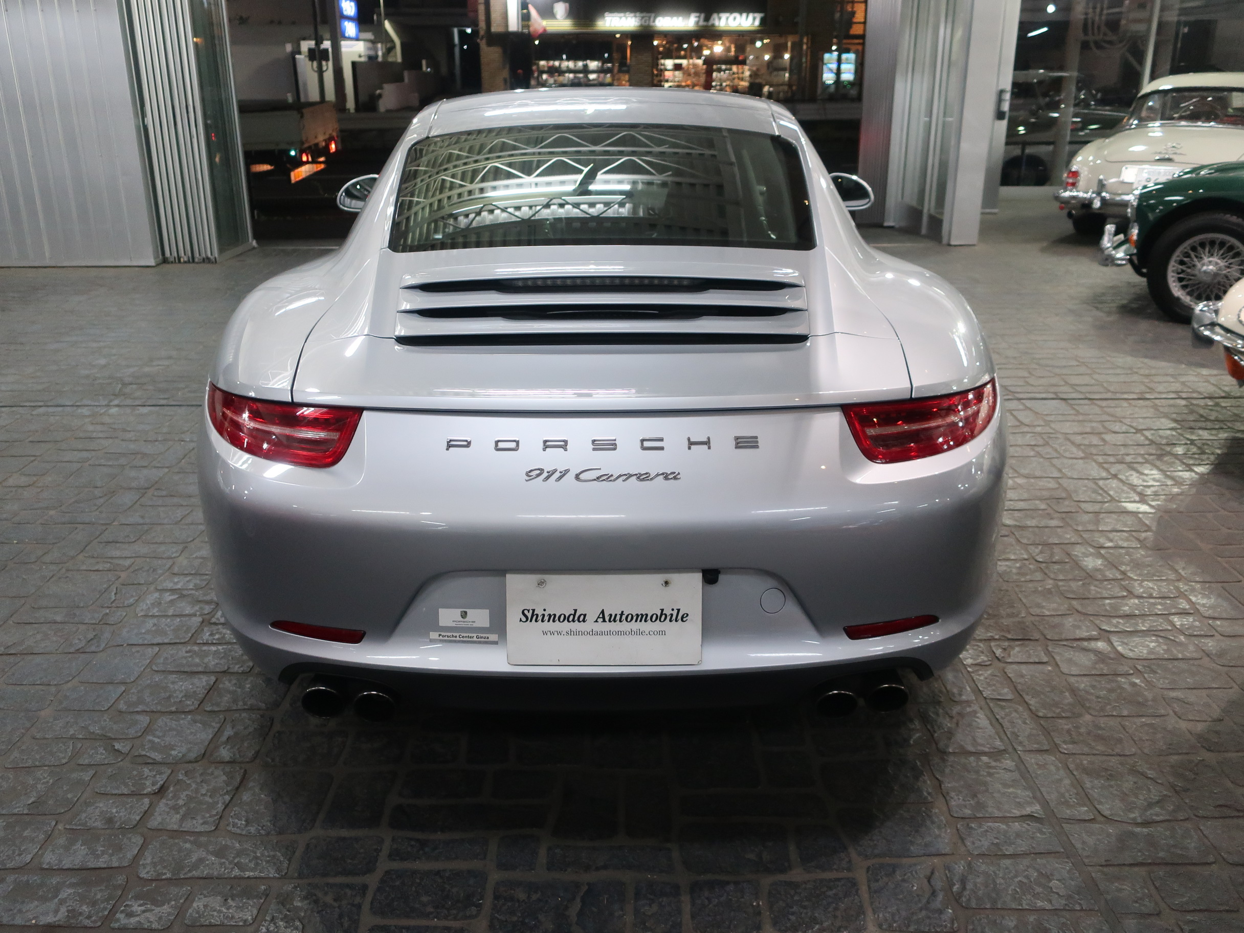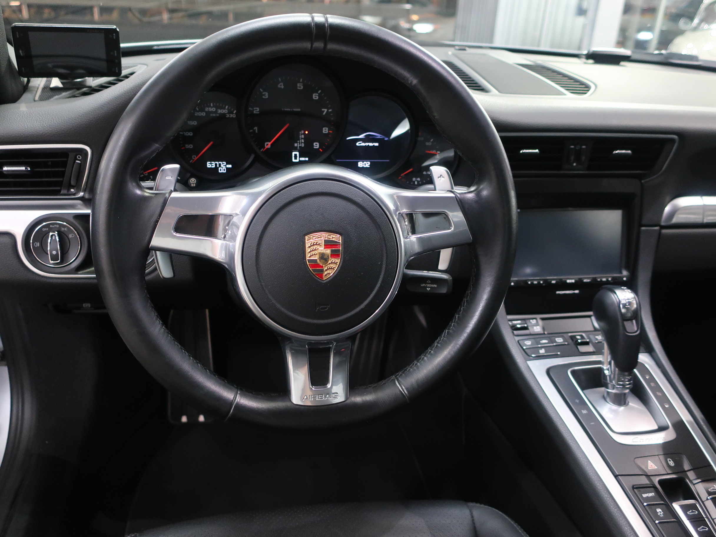 ︎2011年8月29日、ドイツ南部の街、シュツットガルト近郊の本社に隣接するポルシェ博物館で「911カレラ・スニークプレビュー」が開催され「991型カレラ」はそこではじめて公開された。先代となる「997型カレラ」から「998型」と型式を継承しなかったのは、続き番号にすることで開発中の部品が次期「911」のものと漏洩してしまうのを防ぐためと「997型」のエボリューションモデルでは無く、それ以上に大きな変化・進化が込められた事による。先代の「997型カレラ」に比べ一挙に大型化されるという事前情報が広まる中で、車幅はほぼ同寸の1808mm、全長も56mmという僅かな増加に留まり、ボディサイズの大きな変更は行われなかった。大きくなったように見えるとすれば、100mm延ばされたホイールベースと、拡大されたフロントトレッド、それに伴いより幅広い間隔で、外側にレイアウトされた「911」の特徴となる丸型のヘッドライトによるもの。LEDテクノロジーを用いたテールランプは、シャープな薄型形状とされリア回りはランプ上方レベルで、リアエンドを取り巻く水平ラインが強調され、先代との変化がわかりやすい。ルーフラインが数ミリ下げられ、ウィンドウグラフィックがスリークな形状にリファインされることで、伸びやかで「モダンな911」というイメージのボディデザインは、より「911」らしいデザインを追求した結果だといわれている。そのボディデザインは、メルセデスベンツで初代「SLK」を手がけ「スマート」や「サーブ」を経て2004年にポルシェ・デザイン部門に移籍し、「993型カレラ」をデザインしたハーム・ラガーイの後任としてチーフとなったミハエル・マウアーによるもの。マウアーはナロー時代の「911」がもつ美しいシルエットを意識しつながら、リアフェンダーの織りなす曲面や、丸型ヘッドライトカバーにバブル形状の膨らみを持たせるなど、細部にわたりこだわったデザイン表現を用いている。「991型カレラ」の正式なショーデビューは2011年9月のフランクフルトショーとなる。前世紀末にフラット6エンジンが水冷化され「996型カレラ」として登場した「911」は、キープコンセプトともいえる「997型カレラ」に進化した後、この「991型」では久しぶりの「フルモデルチェンジ」に近い、使用部品の95%が刷新された「911」となっている。先代までの頑強な鋼板製のモノコックボディは、様々な種類のスチールに加え、アルミやマグネシウムなどを用いたハイブリッド構造となり、モノコック単体で45kg軽く仕上げられている。フロントフェンダー、トランク・フード、ドア、リア・エンジンリッドはアルミ製とされ、インテリアトリムの樹脂素材の最適化により、さらなる軽量化もほどこされている。「991型」では先代に比べ、静的捩れ剛性で25%、動的捩れ剛性で20%、固有振動数で13%の向上が図られ、軽量化されながらも剛性アップも達成されている。ダイエットされたボディに対しパワーアップしたエンジンを搭載、組み合わされるギアボックスは、新型7段PDKと、これをベースに乗用車史上初となる7段MTが設定されている。新たに採用された電動パワーステアリングは、良好なタッチとナチュラルな感触により洗練されたフィーリングをもちながらも、路面からのキックバックが少なくおさえられ、古くからの「911」ファンには少し物足りなく感じられるかもしれない。120km/hで上昇し、80km/hで格納される電動式リア・スポイラーは、空力的に有効な範囲が898mmから1137mmに拡大され、サイドウィンドウ前端からドアパネルに移設したサイド・ミラーやフラット化されたフロアパネル、冷却システムの刷新により、ワイドタイヤ装着にもかかわらずCd値は0.29へと向上している。「964型」以降全ての「911」開発に携わり「991型」の開発も担当した、チーフ・プロジェクト・エンジニアのアウグスト・アハライトナーは「あらゆる重要な分野で991型は一歩前進している」とコメントを残している。また、2006年以降ポルシェの開発プロジェクト・チームに加わった伝説のラリー・ドライバー、ヴァルター・レアルは「991型は、バランスが良くドライバーに従順で、これ以上手の入れようの無いクルマ」と高い完成度を力説している。︎今回入荷した2015年式「911カレラPDK」に搭載されるエンジンは、MA104型とよばれるオールアルミ製の水冷式・水平対向直噴6気筒DOHC24バルブエンジンとなり、ボア×ストローク97mm×77.5mmで、3436ccの排気量を得る。MA104型エンジンは先代の「997型カレラ」が搭載するMA102型エンジンに比べ178cc少ない排気量となっている。これは、ボアは共通ながらストロークを「997型カレラS」用の3.8ℓ・MA101型のコンロッドを用いる事で4mmショート・ストローク化した事によるもの。排気量を下げながらも12.5の圧縮比をもち、最高出力は350馬力/7400rpm、最大トルク39.8kgm/5600rpmを発揮、「997型カレラ」に比べ、5馬力アップと同等のトルク値を実現している。排気量を縮小しながらもパフォーマンス・アッ