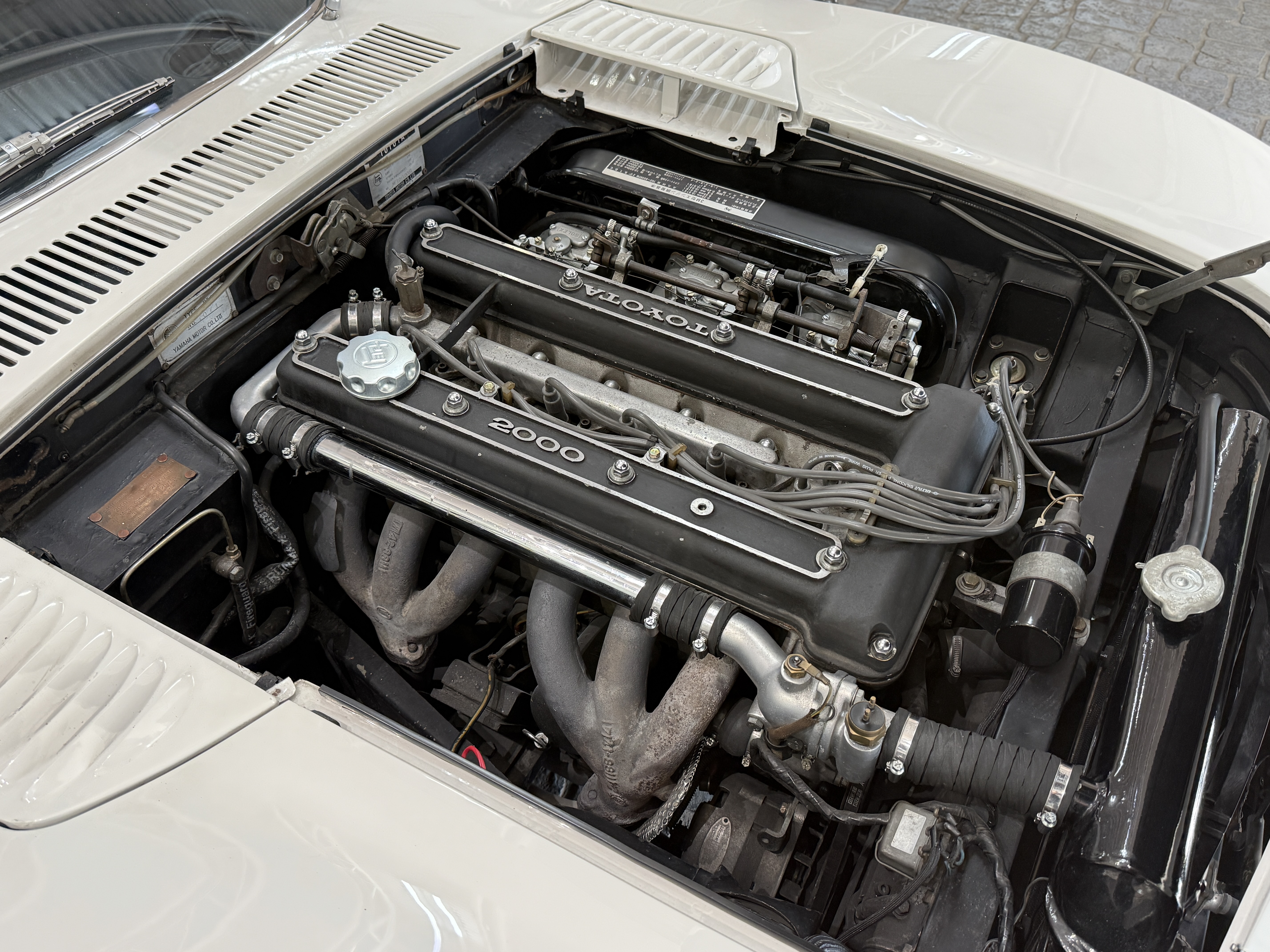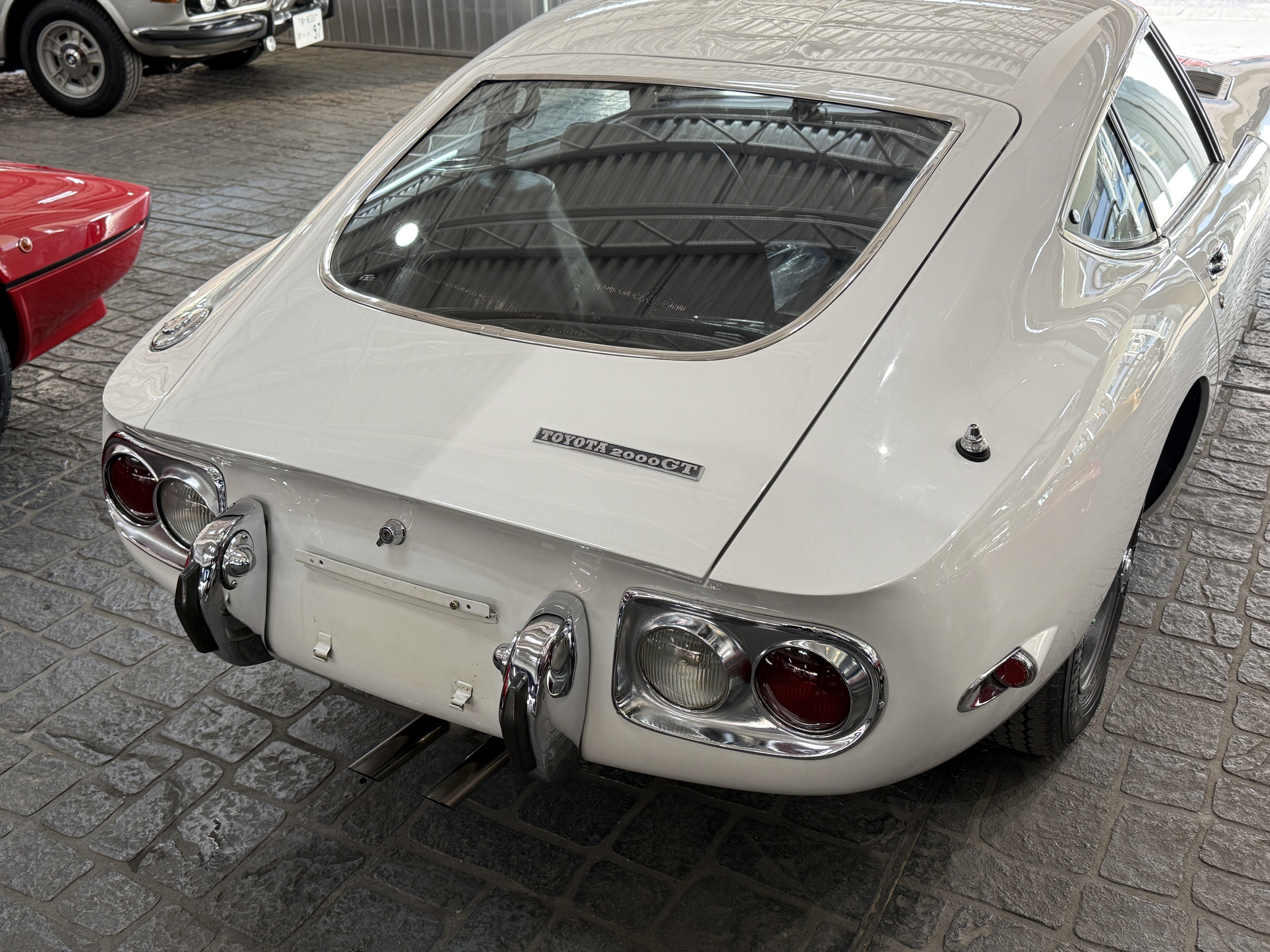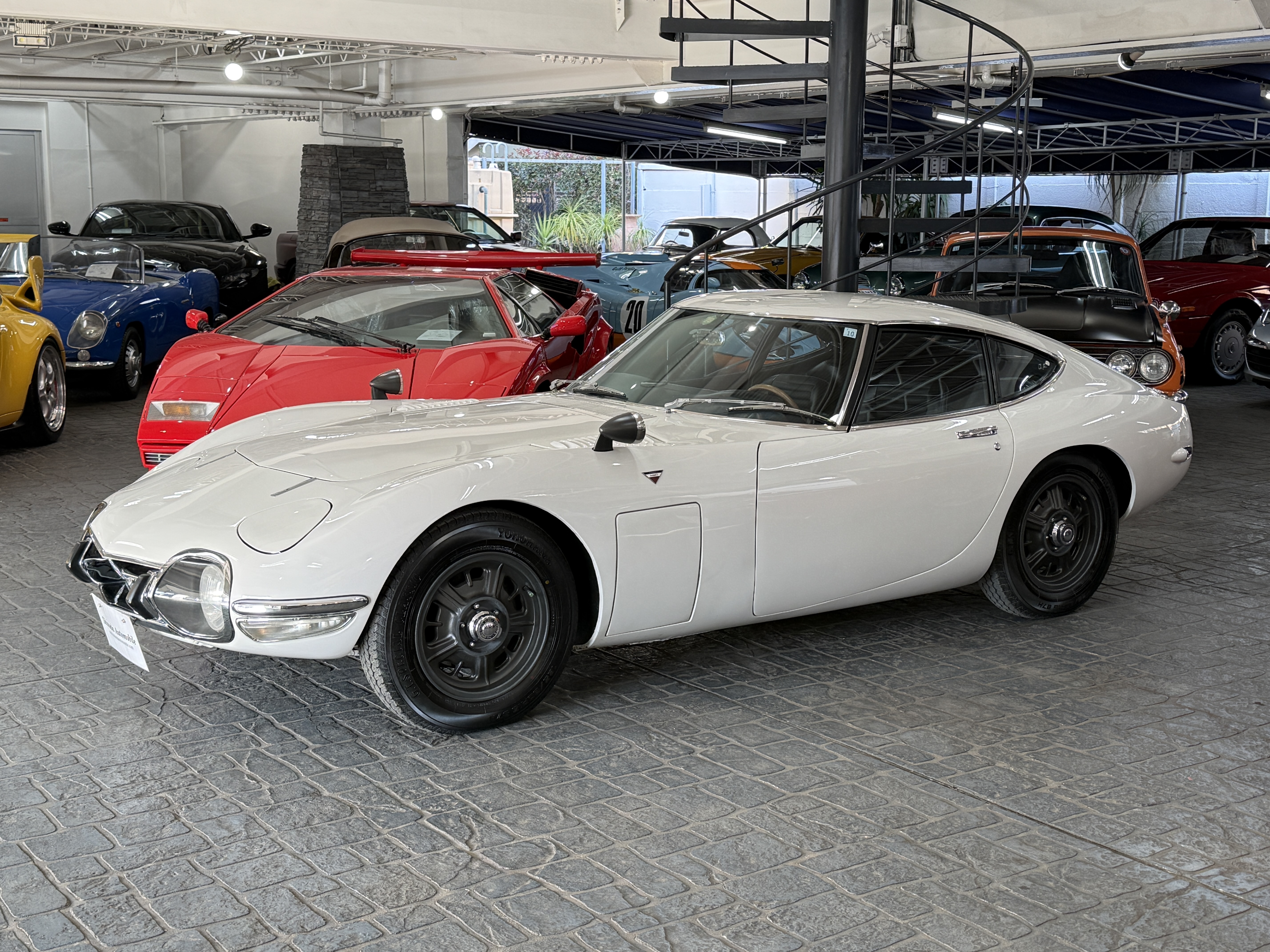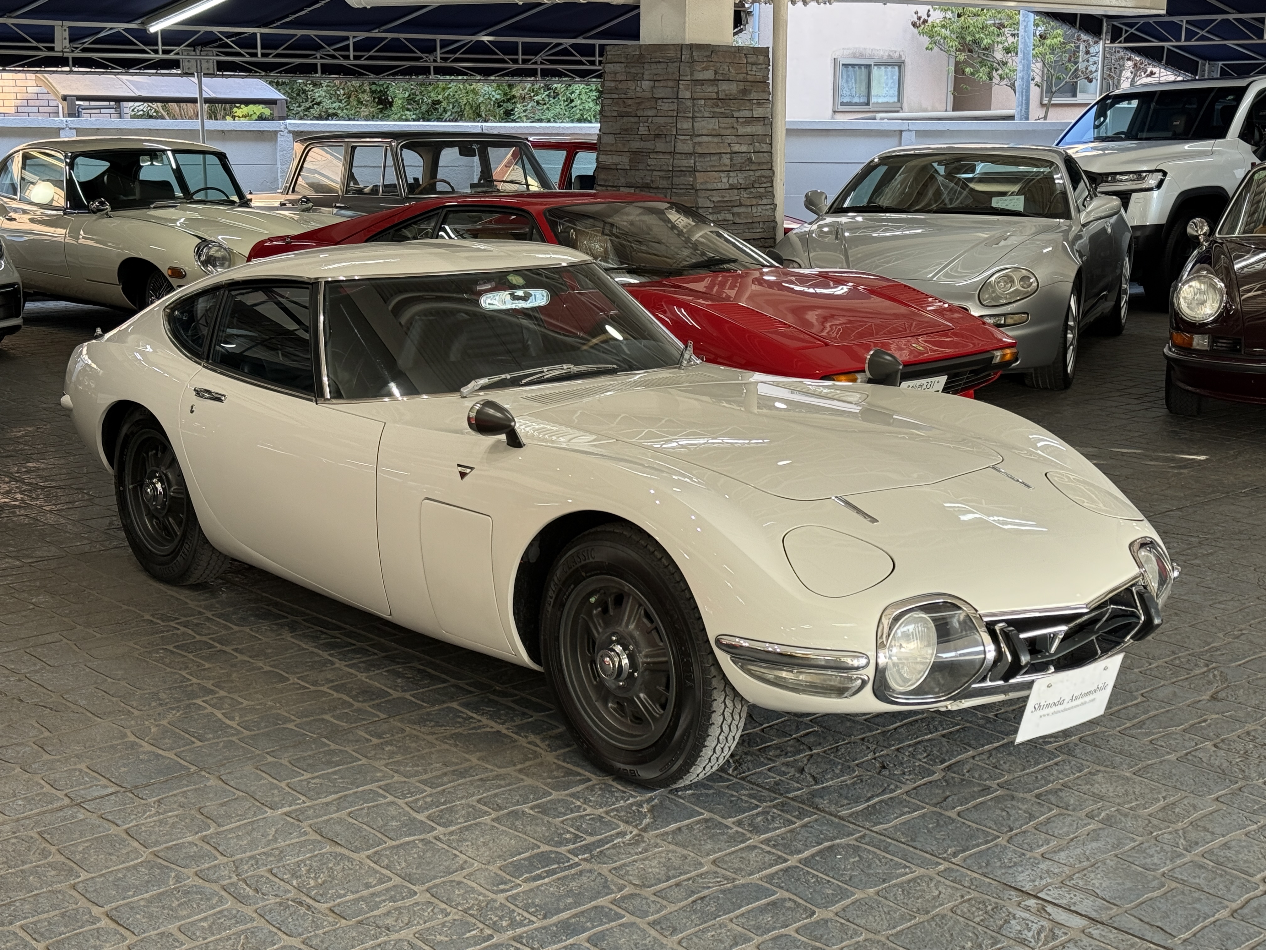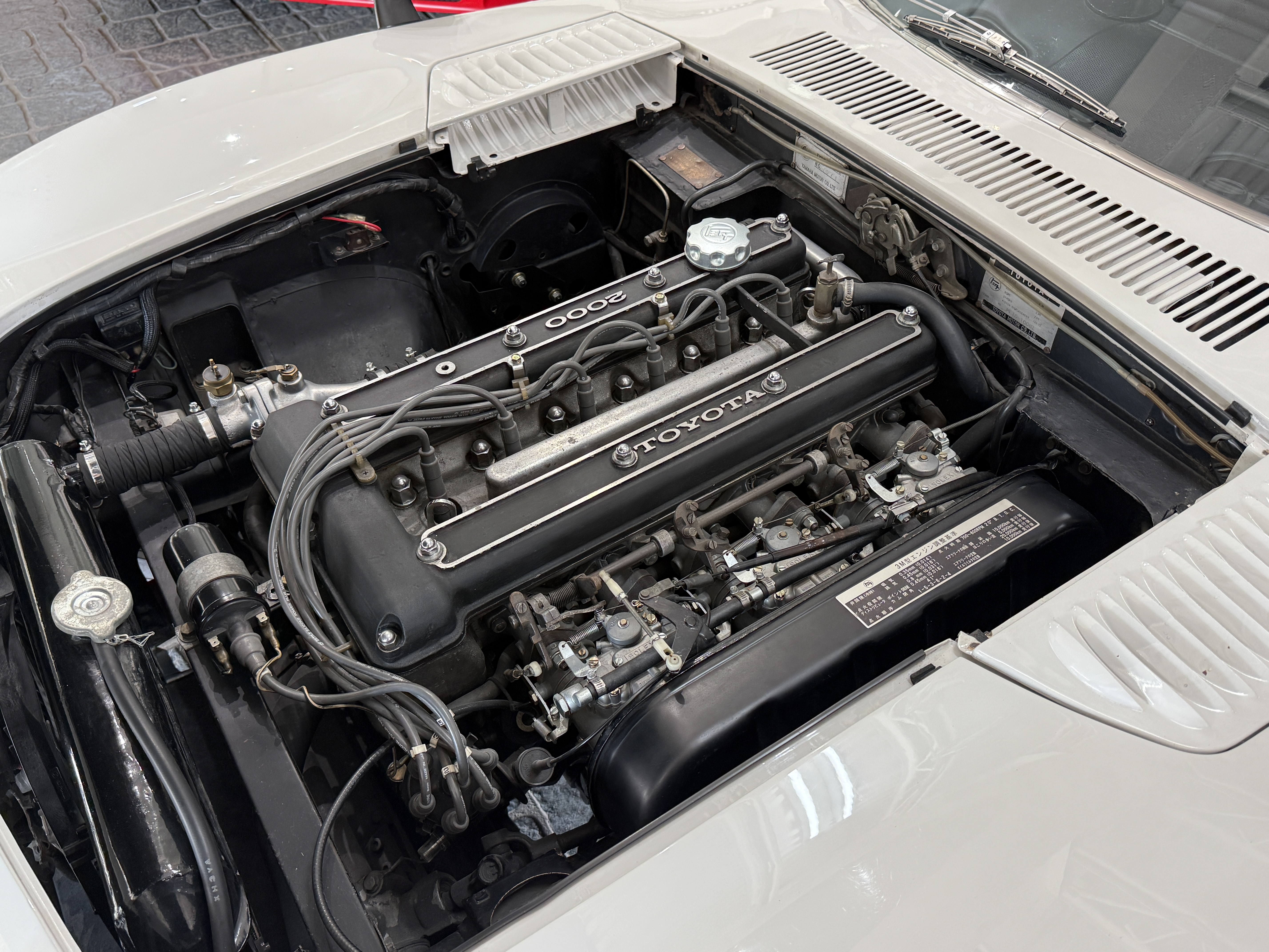 ︎1962年9月に建設された鈴鹿サーキットでは、翌年の1963年5月に、わが国のモータースポーツのあけぼのともいえる「第一回日本グランプリ」が開催された。国際スポーツカークラスではロータスやフェラーリ、ポルシェが参戦する中で、C-Ⅱ、C-Ⅴ、C-Ⅵクラスの3クラスでそれぞれパブリカ、コロナ、クラウンが優勝し、トヨタはその技術力の高さと、優れたクルマの性能をアピールした。参加自動車メーカー各社が本腰を入れ迎えた翌年の「第二回日本グランプリ」では、スカイラインやグロリアを有するプリンス自動車に先を越され、ヨーロッパ車の高性能ぶりを目の当たりにしたトヨタは、持てる技術を結集させ「ル・マン24時間」レース参戦も視野に入れた、国際的なスペックをもつ新型スポーツカー(コードネーム280A)を開発するプロジェクトをスタートさせる。直列6気筒2000ccのDOHCエンジン、5段・フルシンクロのマニュアル・トランスミッション、リミテッド・スリップ・ディファレンシャル、ダブル・ウィッシュボーン式+コイルスプリングによる四輪独立懸架、四輪ディスクブレーキ等、当時考え得る限りの技術を盛り込み、その開発に臨んだ。更に当時、最先端のスポーツカーであった「ロータス・エラン」に影響を受けたと思われる、ボックス断面をもつ鋼板製のX型バックボーンフレームの採用も考慮され、驚異的ともいえるスピードで開発が進められるとともに高い性能を追求していた。そこで追い風となったのは、日産との協業でスポーツカーを開発するというプランを白紙にされた、日本を代表するオートバイメーカー、ヤマハからの協力の申し出だった。ヤマハ発動機が、楽器製造から分離独立したのが1955年、デビュー作ともいえる2輪車「YA-1」のヒットをきっかけにホンダやスズキの様に自動車生産にも意欲をみせ、DOHCエンジンやイタリアのカロッツェリアの様な、ハンドクラフトによるボディ生産技術の研究を進めていた。ヤマハは、本来なら独自でクルマ開発を行うところを日産と協力するカタチで技術を磨き、1964年の第11回東京モーターショーでは「ダットサン・クーペ1500(後の初代シルビア・CSP311型)」を製作し発表するに至る。そこから更にオールアルミ製DOHCエンジンを搭載したプロトタイプGT「A550X」を製作するが、日産との関係は解消。その手腕を買われトヨタの新型スポーツカー開発プロジェクトに協力する事となる。レースでは監督を務めていたトヨタの河野二郎主査率いる少数精鋭の新型スポーツカー開発チームが描くアウトラインを基に、ヤマハが細部の部品設計を担い発案から僅か1年後の1965年秋、150万人もの入場者を集めた第12回東京モーターショーのトヨタブースに、早くもそのプロトタイプが姿を見せた。既に販売が開始されていた小型スポーツモデル「トヨタスポーツ800(UP15型)」にも通じるフロントマスクをもつそのモデルは「トヨタ2000GT(MF10型)」と名付けられ、後にデビューすることになる市販型とほぼ同様のスタイルをもち、低く流れる様なボディ・デザインと豪華な装備により、大きな驚きをもって人々の注目を集めた。トヨタ社内デザイナーの野崎喩(さとる)は、このモデルをデザインするにあたり「空気抵抗を低く抑える為に全面投影面積をなるべく小さくし、ボディ表面を流れる空気の流れを乱す事無くリフトが発生しない様に慎重にデザインした」と語る。フロントに直6エンジンを搭載するファストバックの2座GTクーペなので、そのフォルムは1961年にデビューした「ジャガーEタイプ」と比較されがちだけれど、大きな曲率をもつラインで表面処理された「Eタイプ」のボディデザインに対して、一回り小さなボディの「2000GT」はフロントやリアのフェンダー部分やノーズ先端付近に存在するエッジがアクセントとなり端正にまとめられたスタイルをもつ。このエッジをもつボディのイメージは野崎が1963年、米国カリフォルニアの「アートセンター・スクール」に短期留学し、その時に自身で描いた無名のGTカーのスケッチにサイドまで回り込んだフロントウィンドウとともに既に存在していた。プロジェクトが進行するにつれラウンドしたボディに美しくエッジが融合して見せる絶妙なプロポーションは日本らしさを含みながら、時の経過とともに存在感を高める秀逸なデザインとして輝きを増す事となる。また国産モデルとして初採用となった特徴的なリトラクタブル・ヘッドライトは、対米輸出を考慮してカリフォルニアの規格をクリアする為に、地上高24インチを確保したものとなっている。ショーデビューを果たした後に実走行によるテストが開始されると、はじめに空力の影響が確認された。風洞実験もままならず、デザイナーの想像と経験をもとにデザインされたボディなので心配されたのは空力によるリアのリフトだった。幸いテストドライバーからの指摘はなく、テストの要点は高い速度における耐久性に移っていった。それを確認する一環として1966