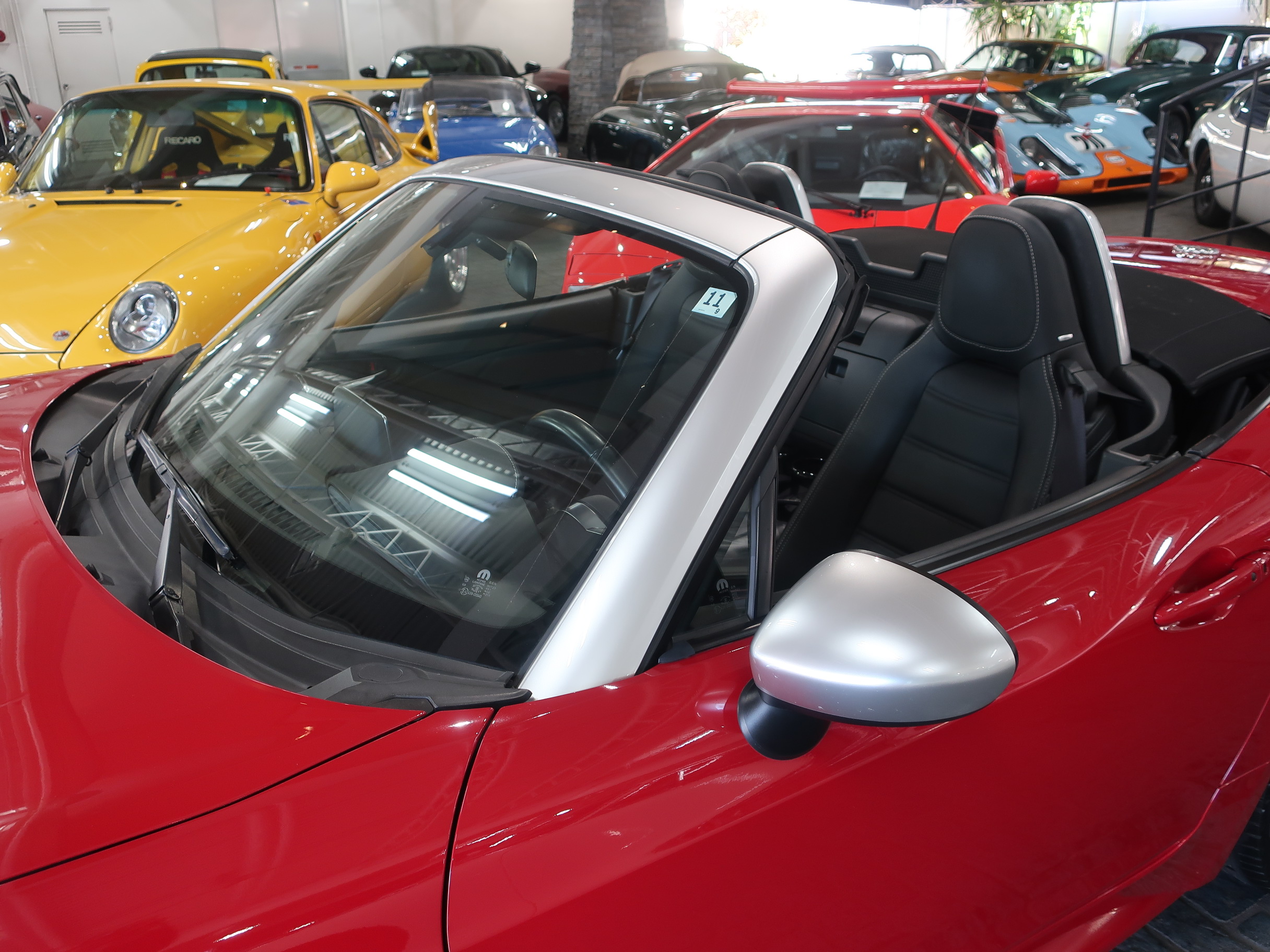 ︎2015年11月のLAショーで発表された、新しい「フィアット124スパイダー」、翌年の2016年3月のジュネーブショーでは、そのチューンナップ・モデルとなる「アバルト124スパイダー」がデビューする。フィアットはこれまで多くのオープントップモデルを世に送り出してきた自動車メーカーで、初代「124スパイダー」がデビューした1966年は、フィアットを大きく成長させたヴィットリオ・バレッタから創業者の孫にあたるジャンニ・アニエッリに経営が引き継がれた年となる。「フィアット124スパイダー」は、この年のトリノショーで「124スポルト・スパイダー」としてデビューを果たした。その美しいボディデザインはピニンファリーナによるもので、担当したのは当時在籍していたトム・チャーダとなる。27歳でピニンファリーナに移籍したトム・チャーダは「フェラーリ365GTカリフォルニアスパイダー」のデザインなどに関わるが、彼の代表作といえば34歳の時に、デザインディレクターだったジョルジェット・ジュジャーロの後任として再び戻ったカロッツェリア・ギアでの「デ・トマソ・パンテーラ」となるのかもしれない。発表された「124スポルト・スパイダー」は、1967年春のジュネーブショーでデビューする「124スポルト・クーペ」と共にフィアットに初のヨーロッパ・カー・オブ・ザ・イヤーをもたらした「124」シリーズの一翼を担っていた。フィアットがラインナップするモデルは、それまでは排気量の数字をモデル名としてきたが、この「124」以降、「128」「131」「132」は開発ナンバーがモデル名となっている。「124スポルト・スパイダー」は、当初搭載していた1.4ℓDOHC・4気筒エンジンは、メインマーケットとなる北米での排ガス規制に対応しながら1.6ℓ、1.8ℓと排気量を拡大し、最終的には2ℓまで進化を重ねながら1980年代まで生産が続けられた。また1972年にはヨーロッパラリー選手権(ERC)、世界ラリー選手権(WRC)への参戦を目的に、アバルトによりエボリューションモデルとなる「フィアットアバルト124ラリー」をFIAグループ4レギュレーションに沿って開発(フィアットアバルト124ラリーのアバルトでの開発ナンバーはSE026となる)する。ボディ剛性を確保しにくいオープントップモデルとしては、驚異的なパフォーマンスと結果をモータースポーツ界にも残している。その歴史ある車名を引き継いで登場した新たな「124スパイダー」は、驚くべきことに現行型「マツダ・ロードスター(ND型)」をベースに開発され、イタリアはトリノのフィアットに代わって、日本の広島で製造されるモデルとなる。これは、2010年にデビューしたアルファロメオ創立100周年と、ピニンファリーナ創立80周年を記念したショーモデル「アルファロメオ ・デュエットッタンタ」が発端となっている。ピニンファリーナ在籍のローウィ・フェルメールシュによりデザインされた「デュエットッタンタ」はアルファロメオ の「スパイダーデュエット」と「80」を意味するイタリア語の「オッタンタ」を組み合わせた車名からもわかる様に「次期アルファロメオ ・スパイダー」を想定したモデルとなる。2012年5月23日にマツダとフィアット傘下のアルファロメオが、それぞれの「次期オープンスポーツモデル」について開発と生産に向けた協議を開始することに同意したと正式に発表。この声明の中に「両社のこれらのモデルをマツダ本社工場で生産することを想定する」という内容が含まれていた。明らかにFRレイアウトを想定したプロトタイプの「デュエットッタンタ」が次期「アルファロメオ ・スパイダー」として登場するという期待が高まった。しかし、当時のフィアットCEOだったセルジオ・マルキオンネによる「プレミアムメーカーであるアルファロメオは、全てのモデルをイタリア国内で作られなければならない」という結論から、ひと晩でこの新しいイタリアン・オープンスポーツカー計画はフィアットのものとなる。数多くのオープントップモデルをラインナップしてきたフィアットの歴史の中で、1966〜1985年までの長きにわたり総生産台数は20万台、WRCにも名を残すインパクトあるモデル名として「124スパイダー」が選択され「フィアット」版と、より高性能な「アバルト」版として開発はすすめられた。プラットフォームと足回りは、まだ正式発表されていなかった「ロードスター(ND型)」と共有となるが、ボディパネルに共通パーツは無くデザインは初代の面影を引用しながらフィアット・チェントロスティーレのルーベン・ワインバーグによりデザインされた。マツダとフィアット両社のデザイン・チームは、それぞれのスタッフを完全に隔離した状態でデザインを行い、完成まではお互いの作品を目にする事は無かったといわれている。6角形のフロント・グリルやボクシーなリアエンド、ボンネット上の二つのパワーバルジ、ドアハンドル付近からキックアップする特徴的なライン、ライン発光で強調されたヘッドランプの輪郭