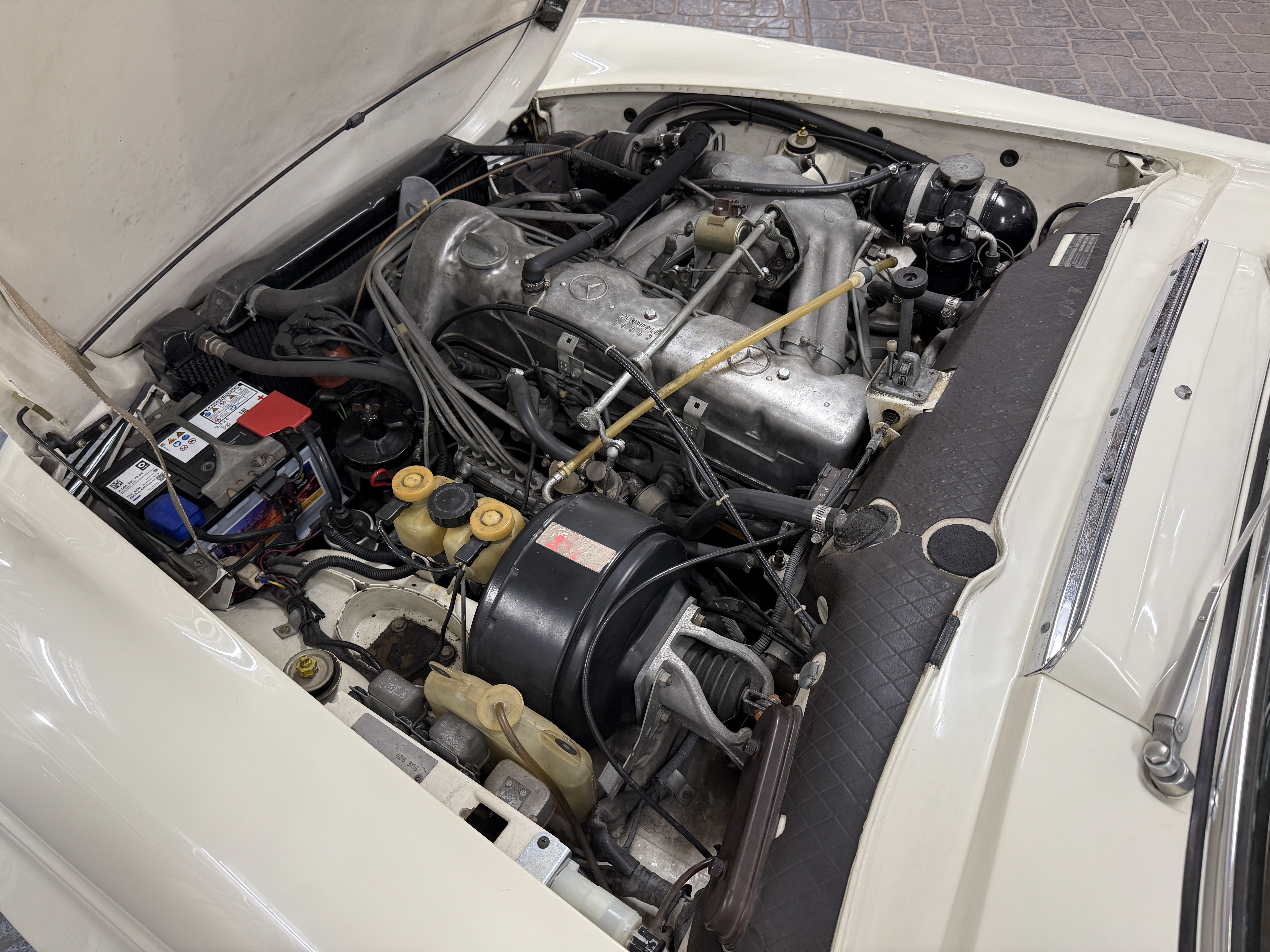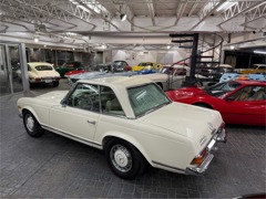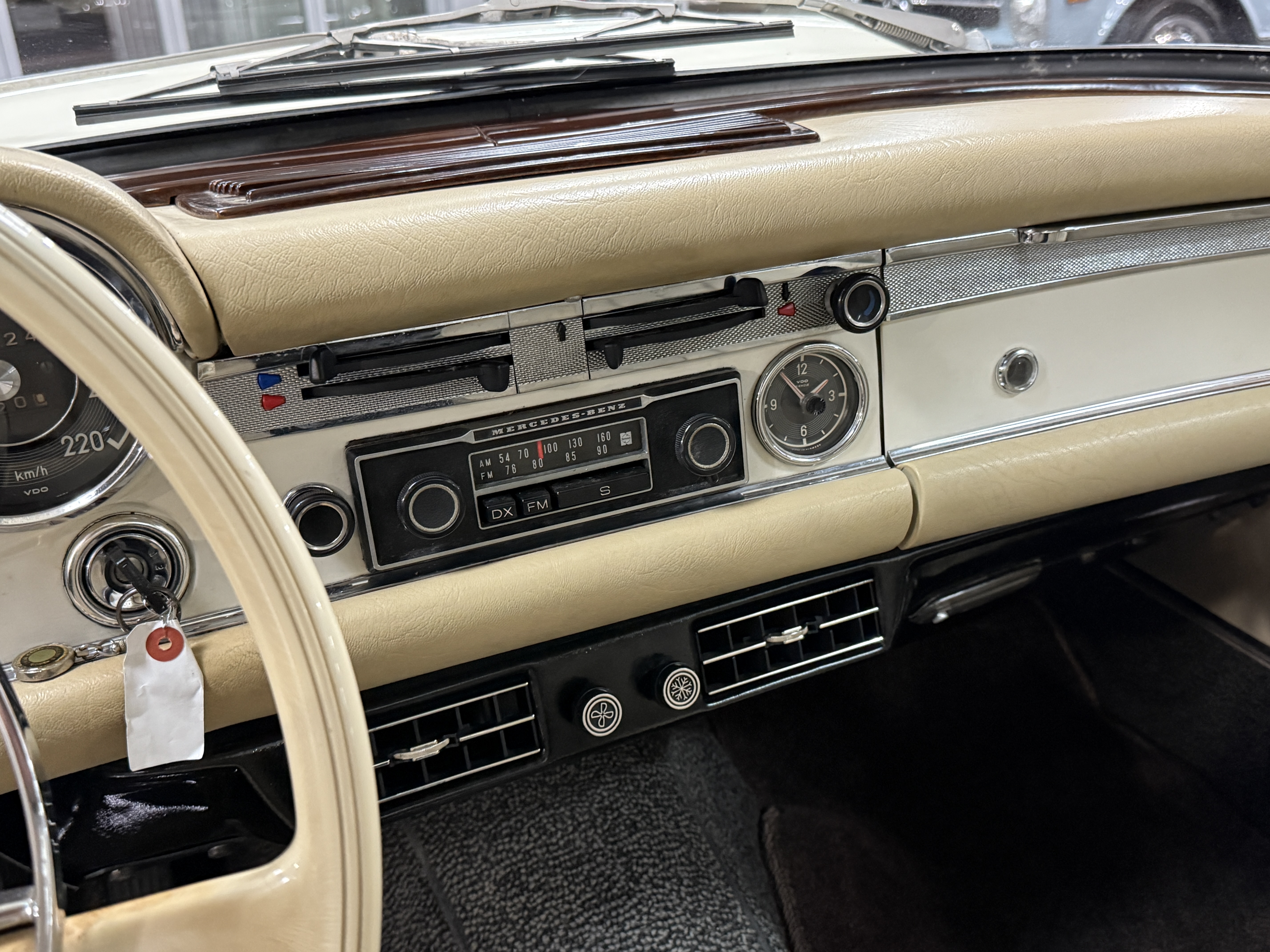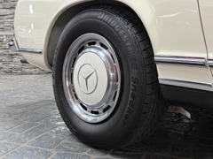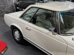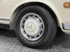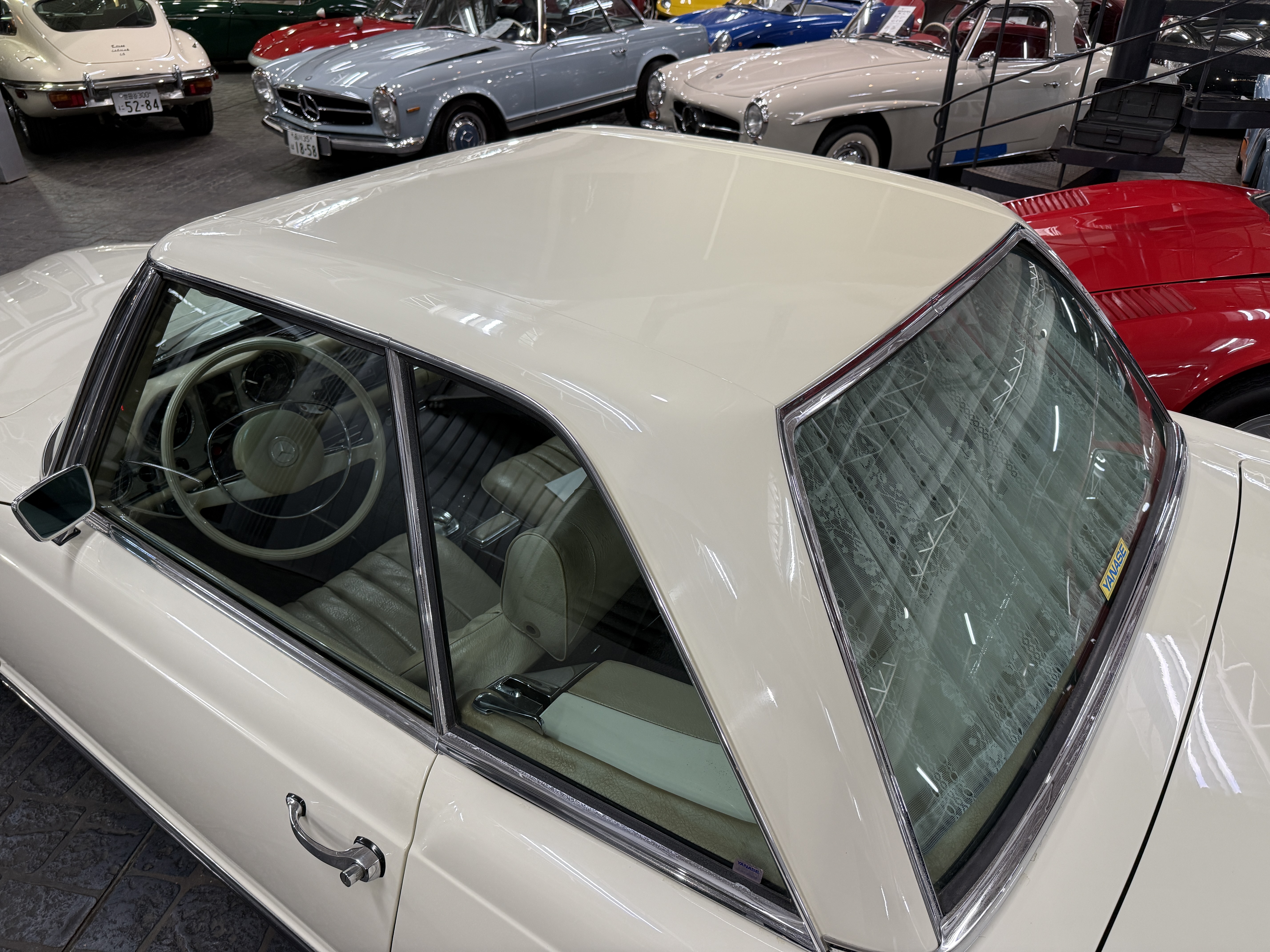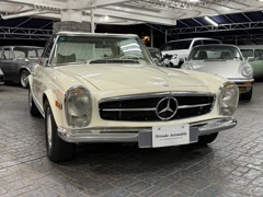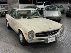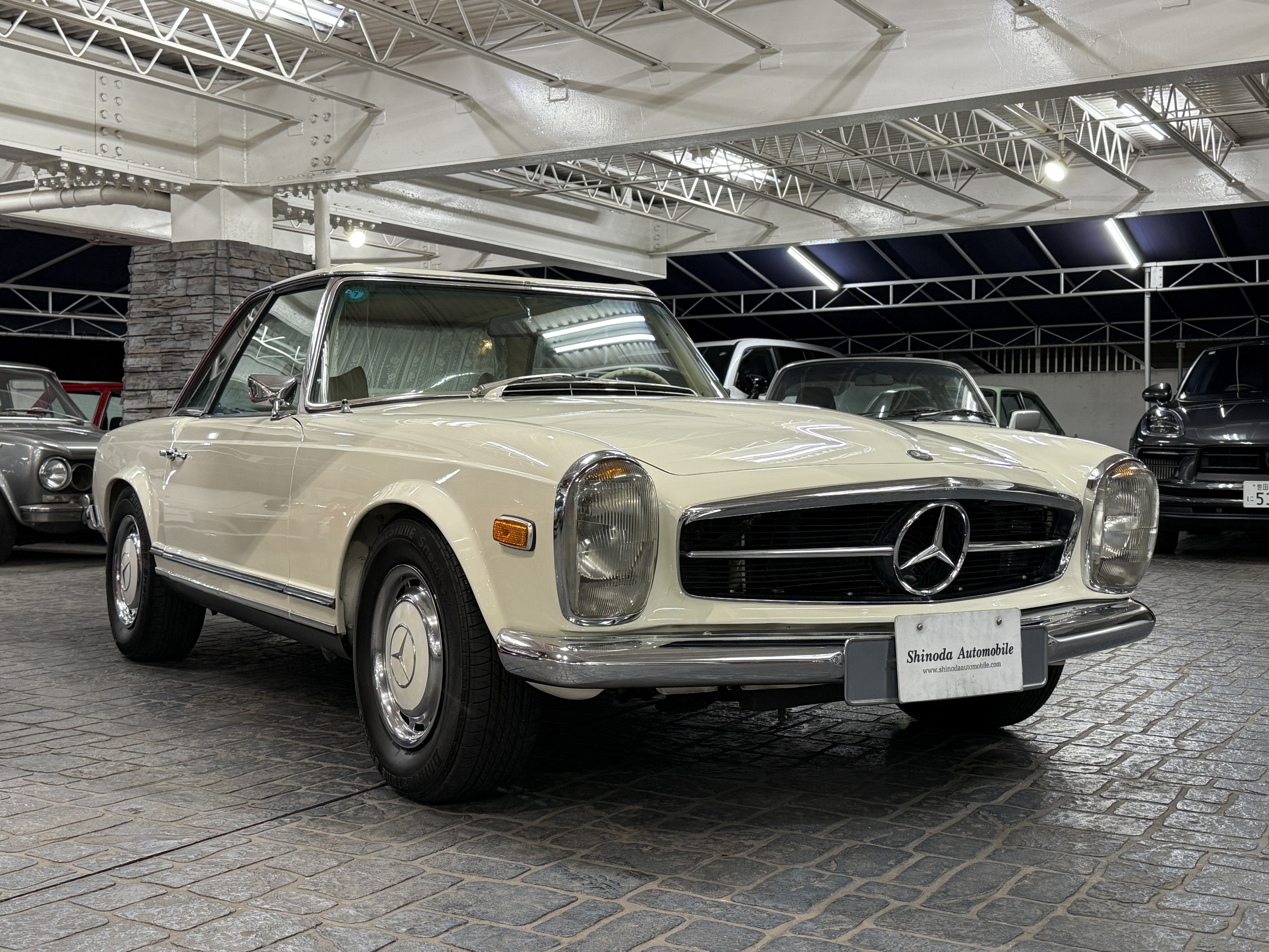 ︎1963年3月のジュネーブショーで発表された「W113型 SL」は、それまでメルセデスベンツが販売してきた「SL」とは、全く異なる種類のスポーツモデルだった。「W110型 220SE」セダンをベースとして製作された「W113型 SL」は流麗なボディスタイルをもつが、戦後のメルセデスベンツのスポーツイメージの象徴ともいえる初代の「W198型 300SL」や、そのイメージを踏襲する「W121型 190SL」とは対照的にボディから緩やかな丸みは消えている。クロームメッキで囲まれた、大きな縦型ヘッドライトと幅広いラジエーターグリル、ひときわ目立つスリーポインテッドスターによりメルセデスベンツであることは、一目瞭然となるが、それ以外は全てが異なり新しい時代を意識したモダンなデザインが採用されている。無骨で硬質な印象では無く、どちらかといえば繊細でエレガントな直線基調の造形となるボディスタイルは、時代を超越した美しさで表現されたものとなっている。ハードトップやボディと共色のホイールキャップを採用するなど、ビジュアル的な配慮も施されたエクステリアデザインは、1963年の登場時から1971年の生産中止となる迄、手直しを受けずに生産され続けた。このボディデザインはメルセデスベンツのデザイン部門のチーフデザイナーに抜擢された、フランス人デザイナーのポール・ブラックによるもの。ボルドー出身の彼は「カー・デザイナー」の他にも「彫刻家や画家」の肩書きをもち、生地のパターンデザイナーでもあるドイツ人の妻、アリスと常に行動を共にする。ポール・ブラックはパリ12区にあるエコール・ブールという彫刻やデザインの高等専門カレッジを卒業し、1953年にフィリップ・シャルボノーと出会う。1950年代を代表するフランスの著名なインダストリアルデザイナーだったシャルボノーから多くを学ぶポール・ブラックだったが、およそ1年後に3年間の兵役を果たさなければならずフランス陸軍の西ドイツ空軍基地に配属させられる。そこでの任務は将校用の車両の管理・手配となり、20歳過ぎのポール・ブラックは、何台ものメルセデスベンツを預かっては、人目を忍んでワインディングを走らせたり、時にはサーキットに持ち込んだりしていたという。兵役中のこの任務がきっかけで、メルセデスの車両をモチーフに数々のボディバリエーションを描き始め、そのデッサンがドイツ人将校の目に留まり、数日後メルセデスベンツから重役が訪ねてきてスカウトされることとなる。兵役を終える迄の1年間を過ごした後、ジンデルフィンゲンにあったメルセデスベンツのデザイン部門でデザイナーとして10年間の契約を結ぶ。戦禍の名残が色濃く残るドイツに於いて、メルセデスベンツでは朝8時に始業して昼に1時間半の休みを挟んで19時まで勤務、社をあげて荒廃からの立ち直りを懸命に目指していた。そんな時勢であってもネオン管トンネル設備を持つメルセデスベンツは、ボディパネルに光を映し込んで、パネルの平滑性をチェックしていた。当時はハンドクラフトからプレス成型への過渡期で、ポール・ブラックはテクノロジーと美の融合を常に意識してデザインにあたっていたとされる。プレス成型という大量生産に向いた技術を使って、戦後のパリで見られたカロッツェリア特有の美意識や、高級感との融合を理想としていた。その二律背反する要素を昇華せしめたのは、ポール・ブラックのデッサンと造形によるその独自のモダンタッチによる表現だった。彼の代表作に挙げられる「W113型 SL」は、当初はクォーターウィンドウの無い「190SL」に似たスタイルだったという。そこからグラスエリアを広げルーフラインを直線的に彫琢を重ね、より機能性を意識し美しさを求めながら、プレス成型ゆえに可能となる綺麗な直線を活かしたカタチを導き出したとされている。ポール・ブラックは後にBMWに移籍し、最も美しいクーペ といわれた「E24型6シリーズ(635csiに代表される)」も手がけた人物で、BMW退職後にはプジョーに移籍し、インテリアデザインを担当している。「W113型 SL」は、中央が凹んだ独特なデザインのハードトップとなる「パゴダルーフ」を備える事も特徴で、その語源はミャンマーの仏塔(ストゥーパ)を指す「パゴダ」から来ている。アジア全域で見られる建築用語で「大きな庇の両端に行くに従い反り返った形状の屋根」を表す言葉となっている。「パゴダルーフ」は衝撃吸収ボディ構造の開発をしていたベラ・バレニーにより生み出されたもので、約1000kgの荷重に耐える様に設計されている。大きなウィンドウ・エリアは、良好な視界を確保しながら、高い強度をもつ事で高い安全性を確立している。バレニーはメルセデスベンツ在籍中に2500件にものぼる特許を取得し、メルセデスベンツの安全に対する屋台骨を構築しながら、衝突安全対策に大きく寄与した人物で「W113型 SL」は、衝突安全ボディを最初に導入したスポーツモデルでもあった。セミモノコック構造のボディは