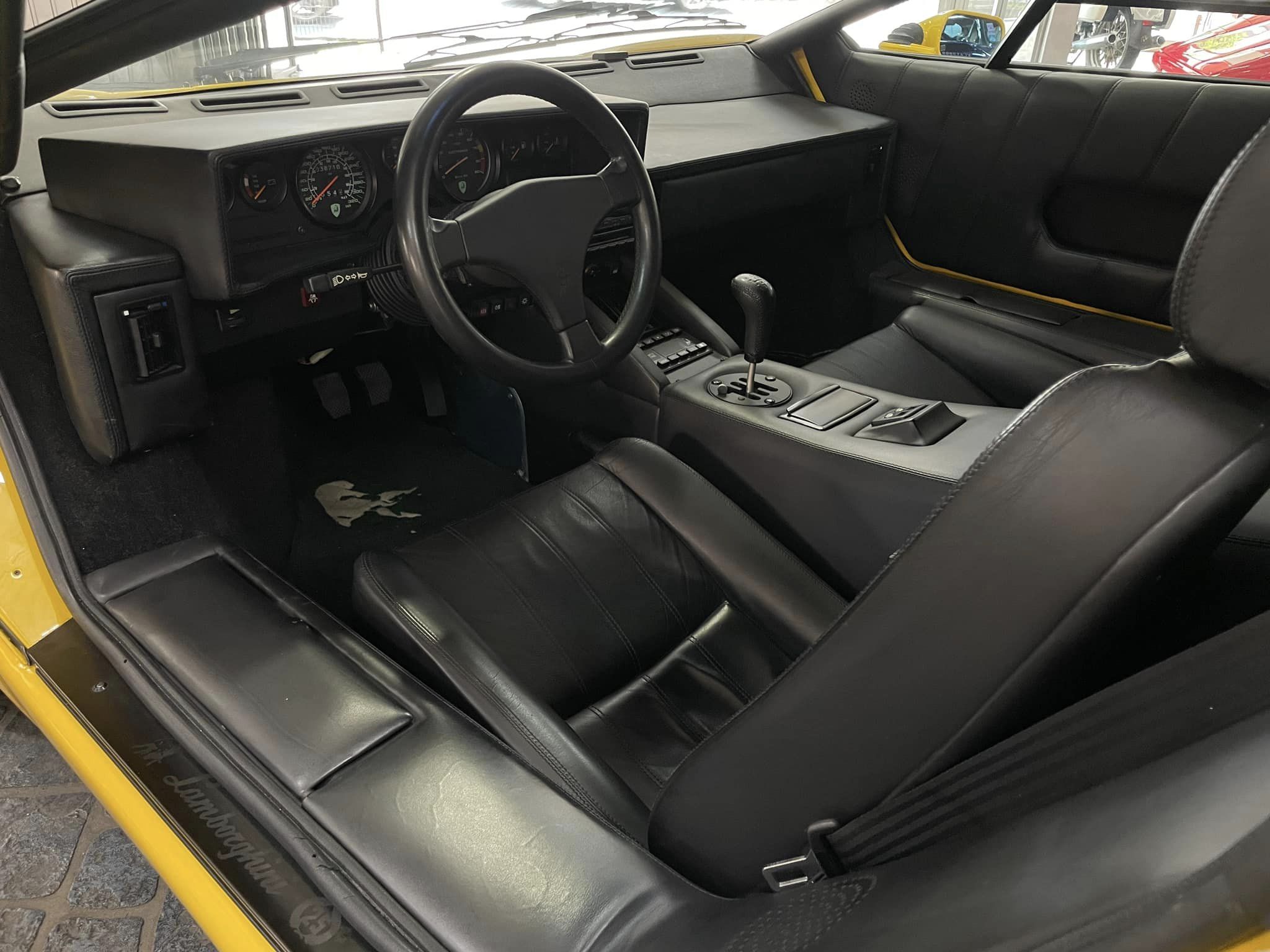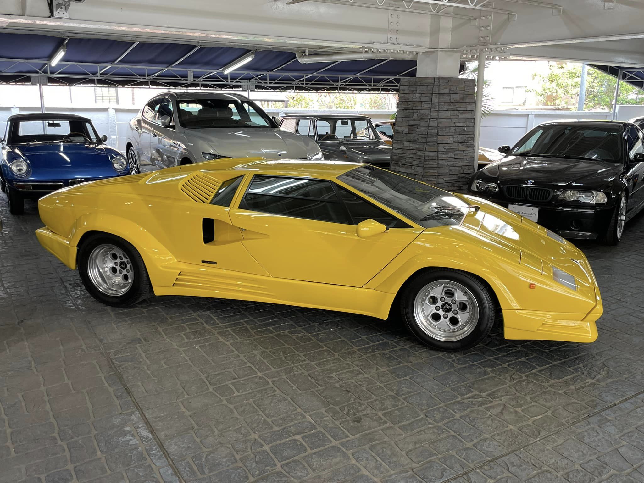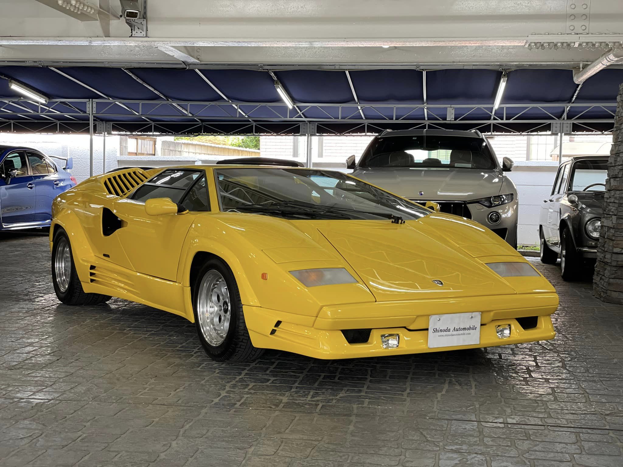 「カウンタック・アニバーサリー」のデビューは1988年9月8日、新たにランボルギーニ社の経営権を手に入れたクライスラー社社長リー・アイアコッカ、並びにランボルギーニ創業者フェルッチオ・ランボルギーニ参列のもと挙行された「ランボルギーニ社創立25周年記念式典」のイタリアはパルマに近い会場であった。ショー・デビューは同じ月のパリ・サロンとなる。パワートレインは、それまで製造されていた「5000クワトロバルボーレ」を踏襲しながら、リニューアルされたエクステリア、及びインテリアを持つ。フロントエアダム、サイドスカート、前後バンパー、アグレッシブなボディショルダー部のエアスクープなどが専用デザインをもつ「カウンタック」の最終進化モデルとなる。「カウンタック」のデザインはカロッツェリア・ベルトーネに在籍したマルチェロ・ガンディーニによるものとなるが「カウンタック・アニバーサリー」の専用エクステリアのデザインは、オラチオ・パガーニによるもの。1955年アルゼンチンに生まれたパガーニは、カーデザイナーを目指し大学でデザインとエンジニアリングを学んだ。その後、5回のF1チャンピオンの経歴をもつ、同郷のファン・マヌエル・ファンジオをたより1982年ランボルギーニ社に入る。「LM002」「カウンタック・アニバーサリー」開発に携り、複合素材の知識に明るくカーボンファイバー素材の市販車への導入を図り、チューブラーフレームでは無くカーボンフレームをもつ「カウンタック・エボルツィオーネ」を製作するまでになった。その技術は「カウンタック・アニバーサリー」にも活かされ、ボディシェルの一部に複合素材が使用される初の市販車とされた。1992年オラチオ・パガーニは独立し1999年には「パガーニ・ゾンタ」を発表する。「カウンタック」登場時の「LP400」の設計はパオロ・スタンツァーニによるもので、1968年「ミウラ」のグレードが「S」から「SV」に進化するタイミングで始まっていた。シャーシ開発のジャンパオロ・ダラーラの「試作車を販売してしまった」という発言どおり「ミウラ」での熟成度と信頼性を確立出来なかったという反省から「カウンタック」の開発に時間をかけたかったのだろう。プロトタイプとなる「LP500」は鋼板モノコック構造となっていたが、強度と重さの関係から、市販車となる「LP400」では作り慣れたチューブラーフレーム構造に変更された。そのフレームはマルケジーニ社に、外皮となるアルミパネルはトリノのITCA社に発注された。出来上がったチューブラーフレームは、直径40mmの円断面鋼管によるトラス構造を基本に、ため息が出る程複雑精緻に組み上げたもので、工芸品ともよべる贅沢でオーバークオリティなものとなっている。それにも増して鮮やかなのは、パワートレインレイアウト。「ミウラ」のV12エンジン横置きレイアウトは、リアヘビーとスペースの関係からサスペンションアーム設計の自由度に欠けた事により「カウンタック」では縦置きとされた。しかも、通常の縦置きとは前後逆に配置し、ボディ前方に向かってクラッチ、トランスミッションと並べてある。前方にアウトプットされた出力は、エンジン直下のウェットサンプのオイルパンの中をドライブシャフトが貫通し、リアデフに伝達されるという斬新なレイアウトとなる。スタンツァーニはこの設計でV12エンジン縦置きと、短いホイールベース内にパワートレインを納めるという事を両立してみせた。「カウンタック・アニバーサリー」にもこのチューブラーフレームとパワートレインレイアウトが継承されている。エンジンは「フェラーリ250GTO」の開発で名を馳せたジオット・ビッザリーニ設計によるものを基本としたもの。V12エンジンとしては極めてコンパクトな外寸をもち、ひたすらパワー志向で仕立てられ、原初設計3.5ℓで「ミウラ」搭載時に、ビッザリーニの後を引き継いだジャンパオロ・ダラーラにより4ℓ化され「カウンタックLP400」にも搭載された。4ℓ化された時点で基本設計からの伸びしろを使い果たしたこのエンジンを、マセラティからランボルギーニの技術チーフに就任したジュリオ・アルフィエーリが救う事になる。ジュリオ・アルフィエーリは1961年にフェラーリからジャンパオロ・ダラーラを引き抜きマセラティで育てた人物。ダラーラは、その後ランボルギーニに移籍し「ミウラ」で脚光を浴びるが、アルフィエーリはその裏で「マセラティ・ボーラ」を地道に開発していた。そのアルフィエーリが、ランボルギーニの伸び代を使い果たしたエンジンのブロックとシリンダーヘッドの間にアルミスペーサーを挿入し、ストローク延長の余裕を与えた。これにより「カウンタック・アニバーサリー」に搭載される5.2ℓまで拡大されるのに留まらず、次期モデル「ディアブロ」にも5.7ℓ化されて搭載されることとなった。「カウンタック・アニバーサリー」に搭載されるエンジンは60°V12気筒DOHC48バルブとなり