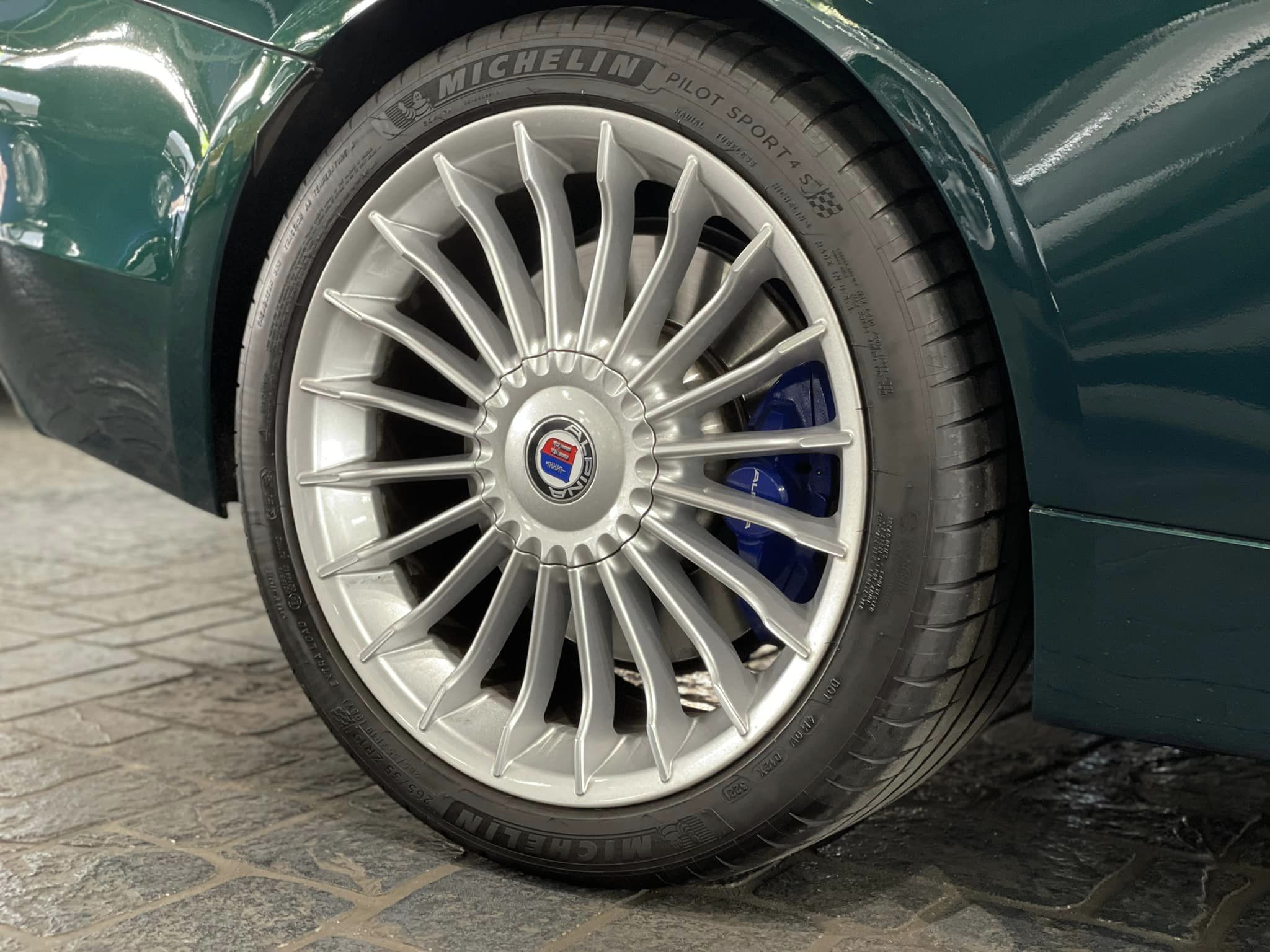 メルセデスに対する「AMG」、BMWには「M」、そしてアウディには「アウディスポーツ」と、「アルピナ」が同格に見られるのはモータースポーツ活動との繋がりを軸とし、お互いスポーツイメージを強く感じさせるという共通点があるからなもしれない。しかし異なるのは前3社が、量産完成車メーカー直系のサブブランドであるのに対し「アルピナ」は昨年まで独立したメーカーという立ち位置にいたという事。BMWが「アルピナ」の商標権を取得し、これまでの生産体制は2025年末までとされた事で、近年「アルピナ」の需要は世界的に高まりつつあり、年間生産台数1700台といわれるアルピナの生産量は、2021年には2000台を記録していた。ミュンヘン郊外に位置する工場規模や従業員数を長年にわたり維持し、少量生産といわれるフェラーリで13221台(2022年)、ランボルギーニで9000台(2022年)とされる中、2000台の生産台数は、明らかに希少といえるだろう。その中からおよそ2割にあたる台数が日本で販売されているといわれている。創業者のブルカルト・ボーフェンジーペンが、BMW1500用にウェーバー・キャブレター・ユニットを開発したのを礎に、ツーリングカーレース参戦などを経て、BMWの信頼を勝ち取り1983年にドイツ自動車登録局に、正式登録された事でドイツで最小の自動車メーカーとなってからも、かつて無いビスポークなメーカーであり続けたのが「アルピナ」だった。その「アルピナ」はディーゼルエンジンに関しても先駆者として存在し、1999年、初のディーゼルエンジン搭載車として「アルピナD10ビターボ」を発表する。E39型5シリーズの「530d」をベースに、その名称の通り「ビターボ=ツインターボ」化し、ベースモデルの183馬力/39.8kgmから245馬力/51kgmにチューニングされ、強力なトルクを発揮して「F40並みの加速」と表現される程、当時としてはインパクトを残し239台が生産された。日本においては2009年「D3ビターボ」が販売されると、たちまち完売という逸話が残る程、注目を集めたモデルとなった。2013年、ドイツ本国で「3シリーズクーペ」が「4シリーズ(F32型)」へと名称変更された翌年、この「4シリーズ」をベースに「D4クーペ ビターボ」がデビューし、2015年から日本に導入される事となる。搭載されるエンジンは、N57D30型とよばれる直列6気筒DOHC24バルブの直噴ディーゼルエンジンに大小2つのギャレット製ターボチャージャーを備えるシーケンシャルツインターボのクリーンディーゼルエンジンとなる。ボア・ストロークは84mm×90mmで2992ccの排気量をもち、16.5の圧縮比とボッシュDDE7.31によるエンジンマネージメントにより、最高出力350馬力/4000rpmと最大トルク71.4kgm/1500〜3000rpmを発揮する。ディーゼルエンジンの有利なトルク特性に加え、可変ジオメトリー付シーケンシャルツインターボによる強力なトルク感は「M3」「M5」を優に凌ぎV12ツインターボに迫る印象的なものとなる。エンジンの回転フィールも、ありふれたディーゼルエンジンとは一線を画すシャープさを備え、アイドリングからレッドゾーン手前の5000rpmまで、ほぼ全域で上質なガソリンエンジンに匹敵するレスポンスをしめす。またアクラポヴィッチ製ステンレスエキゾーストシステムを装備する事で、スポーティなサウンドも特筆すべきものとなっている。組み合わされるトランスミッションはZF社と共同開発による8速トルコンATを使用した「アルピナ・スウィッチトロニック」とよばれるもの。シフトレバーをDレンジから左レーンに倒し前後させるか、ステアリングスポーク裏にあるプラスとマイナスのスイッチにより、任意にギアポジションをチェンジする事が可能となる。足回りはフロント・ダブルジョイントストラット式、リア・マルチリンク式となり電子制御式ショックアブソーバーとスタビライザーを備える「アルピナ・アダプティブ・スポーツサスペンション」とよばれるものとなっている。これはドライビングパフォーマンスコントロールにより「エコプロ」「コンフォート」「スポーツ」「スポーツ+」の4モードを選択出来、それぞれでシャーシ設定やエンジンレスポンスが組み合わされ、セッティングされたものとなる。たとえ「スポーツ」を選択したとしてもアルピナらしい秀逸な乗り味が失われる事は無い。ブレーキはフロントに4ポッド、リアに2ポッドのブレンボ製キャリパーを備え、ベンチレーテッドディスクと組み合わされる。鍛造製20スポークの「アルピナ・クラッシックホイール」はエアバルブをセンターカバー内に持ち、空気は中空構造のスポークを通してタイヤに充填される。組み合わされるタイヤサイズはフロント245/35ZR19、リア265/35ZR19となる。インテリアはアルピナのトレードマークともいえる、磨き込まれた明るいエルム(楡材)のウッドトリムがダッシュボードからサイド、センターコンソールに配置され、アルピナのシートにいる事でテンションが高まりを感じられる。シフトレバー前方にはアルピナのプロ
