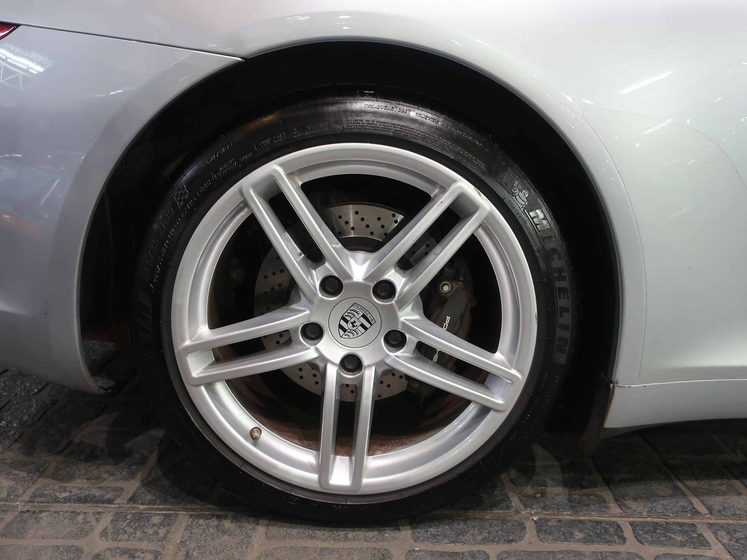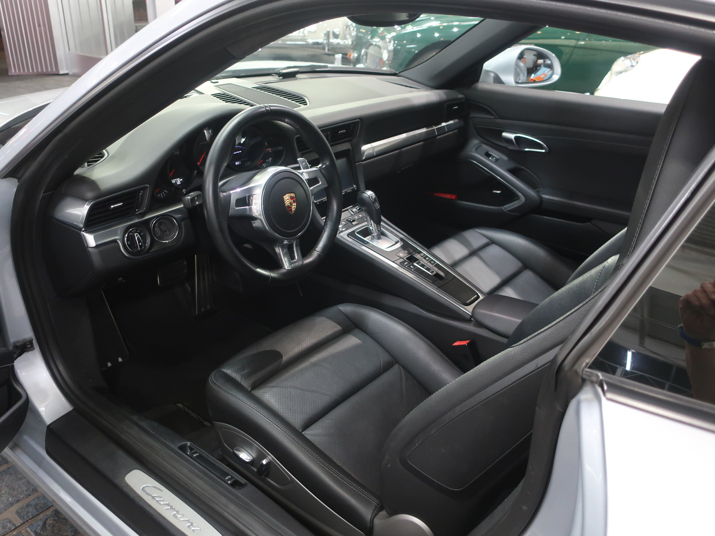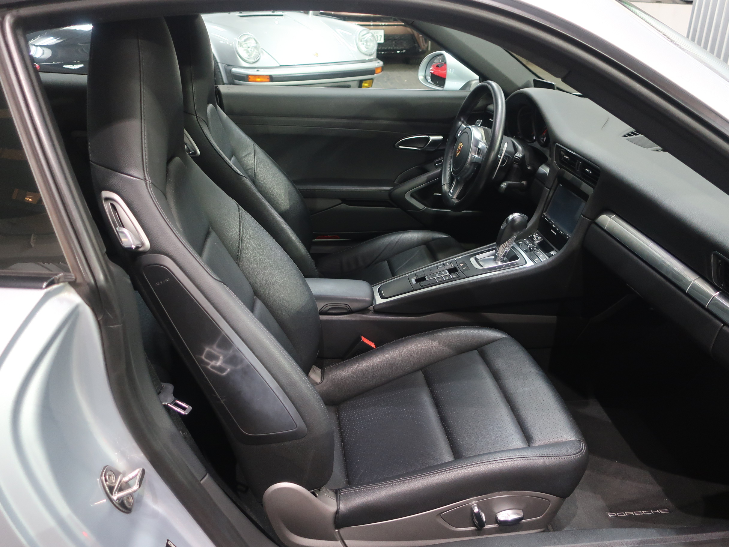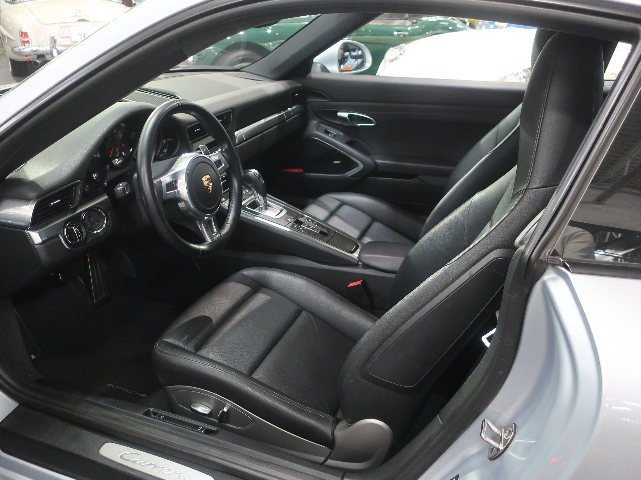 ︎2011年8月29日、ドイツ南部の街、シュツットガルト近郊の本社に隣接するポルシェ博物館で「911カレラ・スニークプレビュー」が開催され「991型カレラ」はそこではじめて公開された。先代となる「997型カレラ」から「998型」と型式を継承しなかったのは、続き番号にすることで開発中の部品が次期「911」のものと漏洩してしまうのを防ぐためと「997型」のエボリューションモデルでは無く、それ以上に大きな変化・進化が込められた事による。先代の「997型カレラ」に比べ一挙に大型化されるという事前情報が広まる中で、車幅はほぼ同寸の1808mm、全長も56mmという僅かな増加に留まり、ボディサイズの大きな変更は行われなかった。大きくなったように見えるとすれば、100mm延ばされたホイールベースと、拡大されたフロントトレッド、それに伴いより幅広い間隔で、外側にレイアウトされた「911」の特徴となる丸型のヘッドライトによるもの。LEDテクノロジーを用いたテールランプは、シャープな薄型形状とされリア回りはランプ上方レベルで、リアエンドを取り巻く水平ラインが強調され、先代との変化がわかりやすい。ルーフラインが数ミリ下げられ、ウィンドウグラフィックがスリークな形状にリファインされることで、伸びやかで「モダンな911」というイメージのボディデザインは、より「911」らしいデザインを追求した結果だといわれている。そのボディデザインは、メルセデスベンツで初代「SLK」を手がけ「スマート」や「サーブ」を経て2004年にポルシェ・デザイン部門に移籍し、「993型カレラ」をデザインしたハーム・ラガーイの後任としてチーフとなったミハエル・マウアーによるもの。マウアーはナロー時代の「911」がもつ美しいシルエットを意識しつながら、リアフェンダーの織りなす曲面や、丸型ヘッドライトカバーにバブル形状の膨らみを持たせるなど、細部にわたりこだわったデザイン表現を用いている。「991型カレラ」の正式なショーデビューは2011年9月のフランクフルトショーとなる。前世紀末にフラット6エンジンが水冷化され「996型カレラ」として登場した「911」は、キープコンセプトともいえる「997型カレラ」に進化した後、この「991型」では久しぶりの「フルモデルチェンジ」に近い、使用部品の95%が刷新された「911」となっている。先代までの頑強な鋼板製のモノコックボディは、様々な種類のスチールに加え、アルミやマグネシウムなどを用いたハイブリッド構造となり、モノコック単体で45kg軽く仕上げられている。フロントフェンダー、トランク・フード、ドア、リア・エンジンリッドはアルミ製とされ、インテリアトリムの樹脂素材の最適化により、さらなる軽量化もほどこされている。「991型」では先代に比べ、静的捩れ剛性で25%、動的捩れ剛性で20%、固有振動数で13%の向上が図られ、軽量化されながらも剛性アップも達成されている。ダイエットされたボディに対しパワーアップしたエンジンを搭載、組み合わされるギアボックスは、新型7段PDKと、これをベースに乗用車史上初となる7段MTが設定されている。新たに採用された電動パワーステアリングは、良好なタッチとナチュラルな感触により洗練されたフィーリングをもちながらも、路面からのキックバックが少なくおさえられ、古くからの「911」ファンには少し物足りなく感じられるかもしれない。120km/hで上昇し、80km/hで格納される電動式リア・スポイラーは、空力的に有効な範囲が898mmから1137mmに拡大され、サイドウィンドウ前端からドアパネルに移設したサイド・ミラーやフラット化されたフロアパネル、冷却システムの刷新により、ワイドタイヤ装着にもかかわらずCd値は0.29へと向上している。「964型」以降全ての「911」開発に携わり「991型」の開発も担当した、チーフ・プロジェクト・エンジニアのアウグスト・アハライトナーは「あらゆる重要な分野で991型は一歩前進している」とコメントを残している。また、2006年以降ポルシェの開発プロジェクト・チームに加わった伝説のラリー・ドライバー、ヴァルター・レアルは「991型は、バランスが良くドライバーに従順で、これ以上手の入れようの無いクルマ」と高い完成度を力説している。︎今回入荷した2015年式「911カレラPDK」に搭載されるエンジンは、MA104型とよばれるオールアルミ製の水冷式・水平対向直噴6気筒DOHC24バルブエンジンとなり、ボア×ストローク97mm×77.5mmで、3436ccの排気量を得る。MA104型エンジンは先代の「997型カレラ」が搭載するMA102型エンジンに比べ178cc少ない排気量となっている。これは、ボアは共通ながらストロークを「997型カレラS」用の3.8ℓ・MA101型のコンロッドを用いる事で4mmショート・ストローク化した事によるもの。排気量を下げながらも12.5の圧縮比をもち、最高出力は350馬力/7400rpm、最大トルク39.8kgm/5600rpmを発揮、「997型カレラ」に比べ、5馬力アップと同等のトルク値を実現している。排気量を縮小しながらもパフォーマンス・アッ