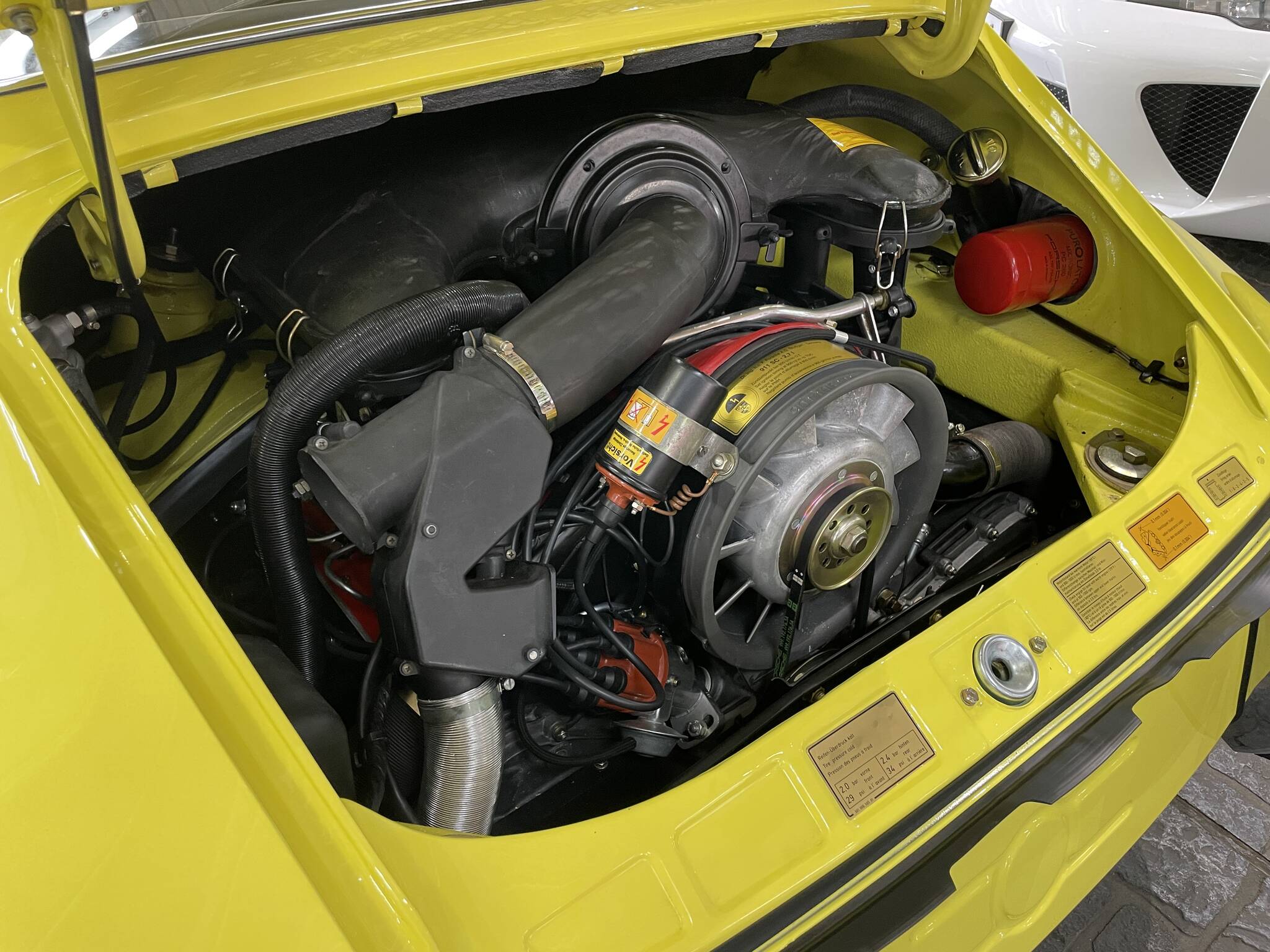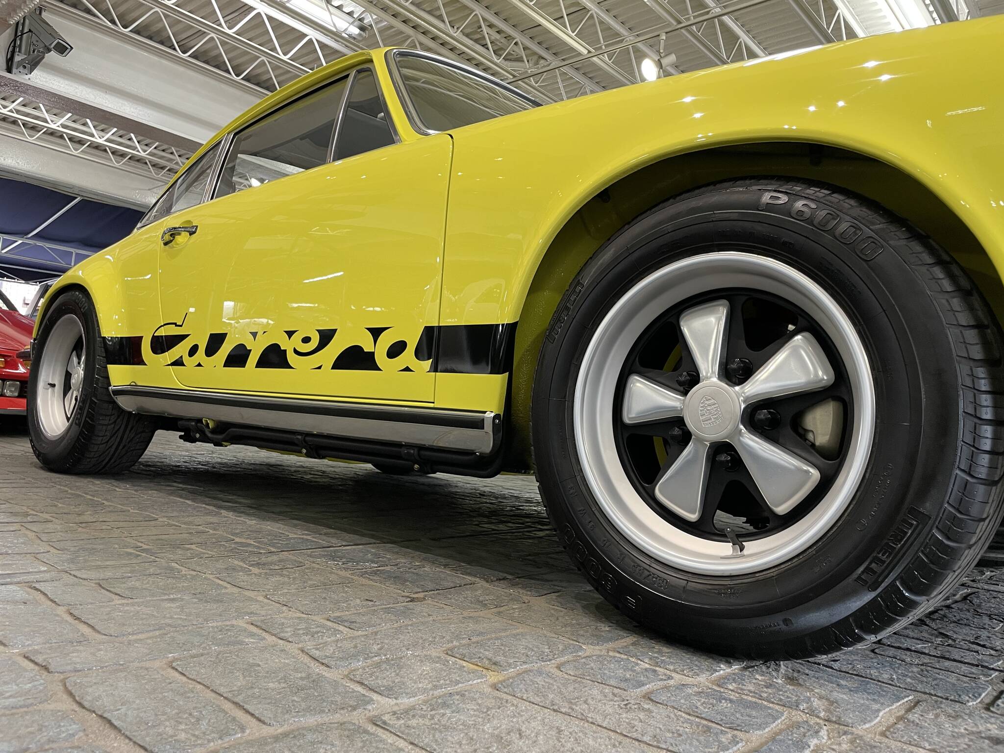 50年代、メキシコの公道を舞台に行われていたスポーツカーレース、カレラ・パナメリカーナ。衝突事故の多発により、最後の開催となった1954年にポルシェ・ワークスによる「ポルシェ550スパイダー」がクラス優勝したのが由来となって「カレラ」の名称が車名として使われる様になる。1955年に登場した「356A 1500GSカレラ」をはじめ「カレラ・アバルト」や「カレラGTS=904」を経て「カレラ6=906」へと続く。一方「RS」はドイツ語の「Renn Sport=レーシング・スポーツ」を意味する頭文字となり50年代に活躍した「550A 1500RS」や、その発展型「718RSK」に用いられた。その2つの貴重なワードを356シリーズから911シリーズにモデルチェンジした後、与えられたのモデルが1973年型「911カレラRS2.7」である。1972年10月のパリサロンでホワイトのボディにブルーのストライプ、ブルーのホイールのモデルが「914 2.0」や「911タルガ」と並べられショーデビューを果たす。︎60年代後半から70年代初頭にかけてポルシェは一連のミッドシップ2シーターのレーシングカーによりスポーツカーレースを席巻し、その技術力を世界にアピールしてきた。しかし70年代中盤になると、創立以前から一心同体であったフォルクスワーゲンとの関係が、新社長ルドルフ・ライディングにより変化を見せ始める。それは、フェルディナント・ポルシェの友人であり崇拝者であった前社長ハインツ・ノルトホフの時代には「ビートル」1台売れるごとに、設計者たるポルシェにロイヤリティが支払われ「ポルシェ914」プロジェクトも誕生した。それがノルトホフの急死により、「914」プロジェクトからの撤退と、ポルシェ開発による「ビートル」の後継車となる「フォルクスワーゲンEA266」もキャンセルとなり膨大な損失を被ることとなった。1972年をもってポルシェ一族が会社経営から身を引いた事で、新社長に就任した911開発者のエルンスト・フールマンはレースカー開発資金の縮小と911販売拡大を考え、レース活動の中心を911主体によるGTカーレースに絞る方向とした。幸いにもFIA(国際自動車スポーツ連盟)は、1975年からスポーツカー選手権タイトルを公認GTカーベースのレーシングカーに与える内定を下した事で、無敵だった「917」で勝利を重ねる事は叶わない状況の中での事だった。ポルシェは既に1972年から施行される北米でのマスキー法(大気浄化法改正案)への対応として2.4ℓエンジンによる低圧縮比エンジンの研究開発を進めていた。ここにフールマン新社長のGTカーレースプロジェクトが加わり、ストロークは2.4ℓエンジンの70.4mmとし、ボアを鋳鉄ライナーでは実現で出来なかった6mm拡大を「917」で開発したアルミシリンダーを用いる事で可能とした2687ccエンジンで、12ヶ月間に500台生産し、FIAグループ4の公認を受ける事とした。この2687ccエンジンは、カナディアン・アメリカチャレンジカップ用として開発された1100馬力を発揮するレーシングカー「917/30K」の空冷水平対向12気筒5374ccエンジンと同じボア・ストロークを持ち、ちょうど半分の水平対向6気筒エンジンとなっている。スタンダードで2.5ℓを越える排気量としたこのエンジンにより、FIA規則のクラス区分で3ℓまで拡大することが可能となる。「カレラRS2.7」に搭載されるエンジンは空冷水平対向SOHC6気筒となりボア・ストローク90.0mm×70.4mmで、2687ccの排気量をもつ。ボッシュ製機械式インジェクションシステムを備え8.5の圧縮比から最高出力210馬力/6300rpmと26.0kgm/5100rpmの最大トルクを発揮する。同年式の「911S」と同じピストンを用い、同じバルブサイズやバルブタイミングとしながらも、レーシングカーである「917」で実証されたニッケルとシリコン合金をアルミシリンダー内側に蒸着させたマーレ社による「ニカシルシリンダー」を採用。これはクロームメッキと同等の厚さながら、炭化ケイ素を含む事で遙かに強く、ニカシル層は特別な処理を施さなくてもオイル膜を保持出来る特性を持っている。組み合わされる5段ギアボックスは、短めのレバーをもちシフトパターンも通常の1〜4速でH型となる。4速と5速のレシオが少し速められたうえで、ファイナルは「911S」と共通となるものが用いられた。サスペンションは前マクファーソンストラット式、後セミトレーリングアーム式とし、トーションバー・スプリングが装備されている。またショックアブソーバーはビルシュタイン製となり、ポルシェ初となる軽量なガス圧式となっている。スタビライザーはフロント18mm、リア19mmに変更・強化された。4輪ベンチレーテッド・ディスクは「911S」と共通。FUCHS製アルミホイールサイズとタイヤサイズは前輪は、6J・185/70VR-15ながら、後輪は広げられたリア・フェンダーに7J・215/60VR-15のピレリ製CN36が装着された。この足回りによりノルベルト・ジンガーによるテストでコーナリング速度は0.912Gを記録し、当時の市販ポルシェの中で最も高いコーナリングGを記録した事となる。︎エクステリアで目を引くのは、FRP製のエ