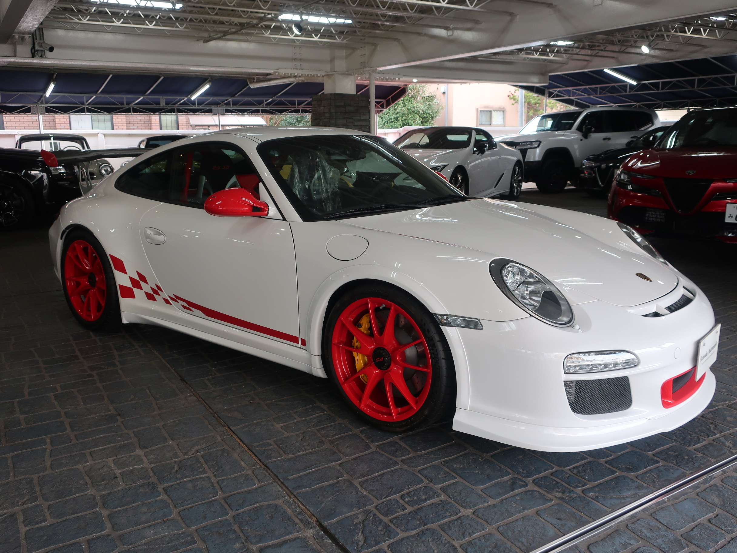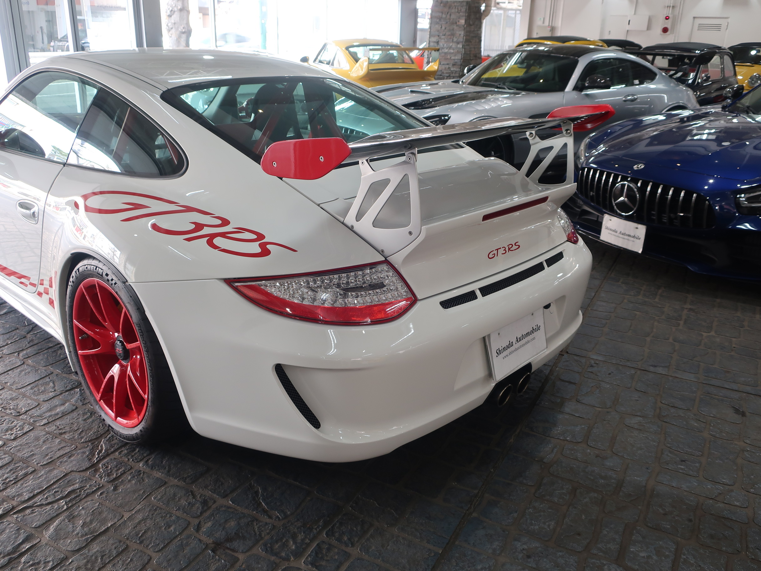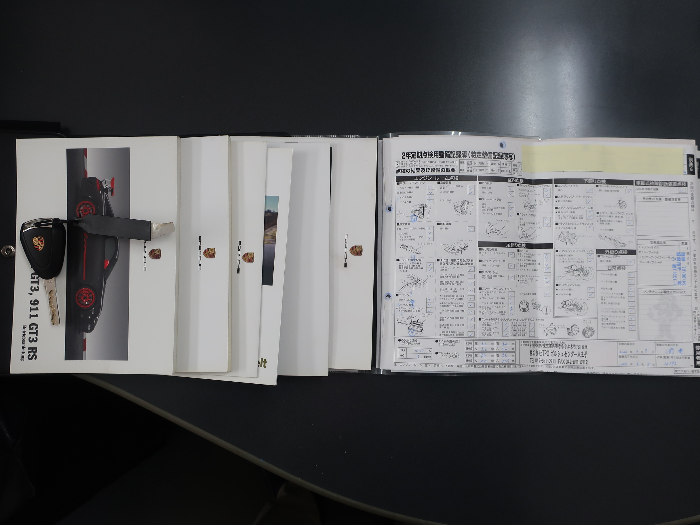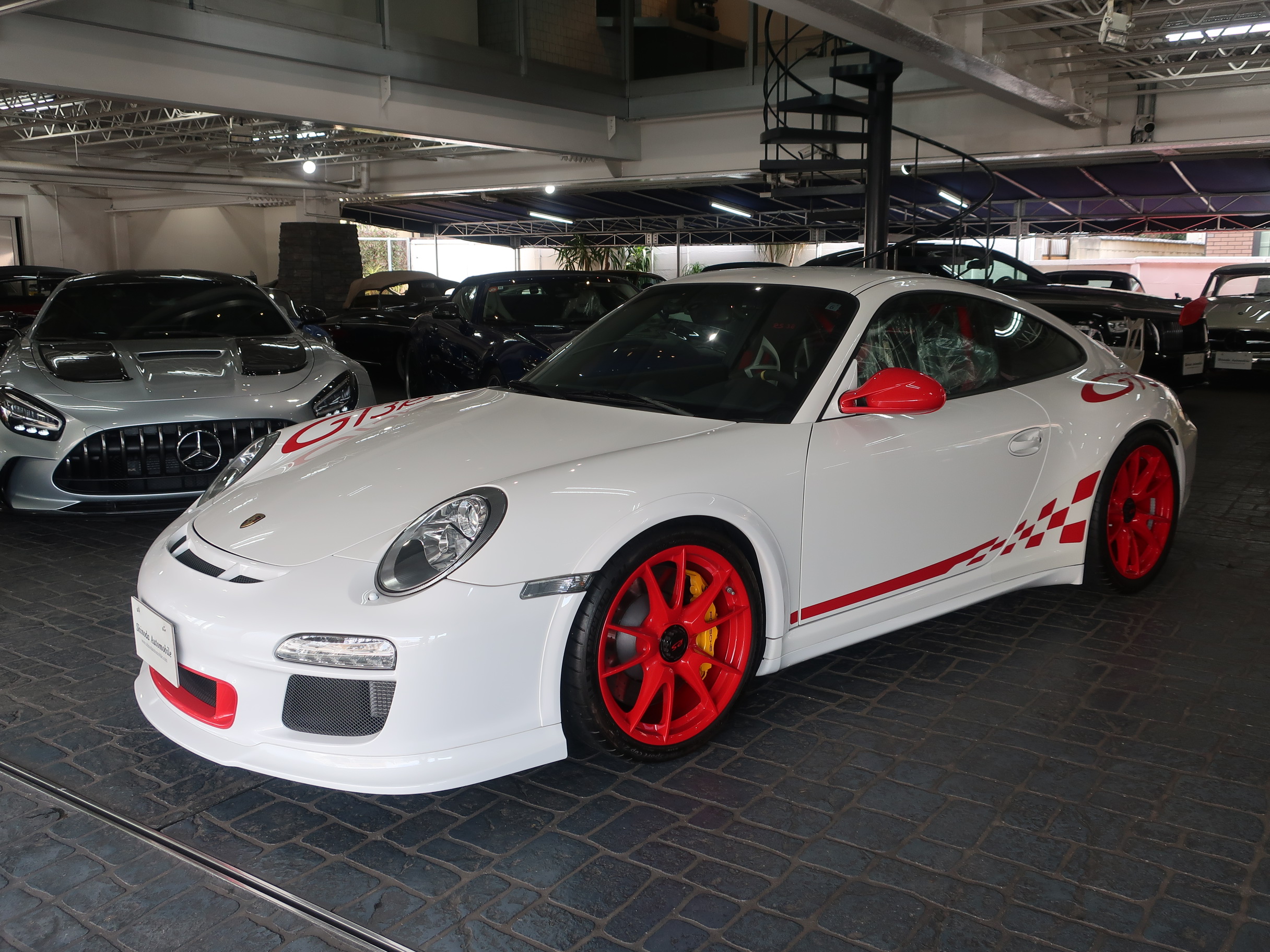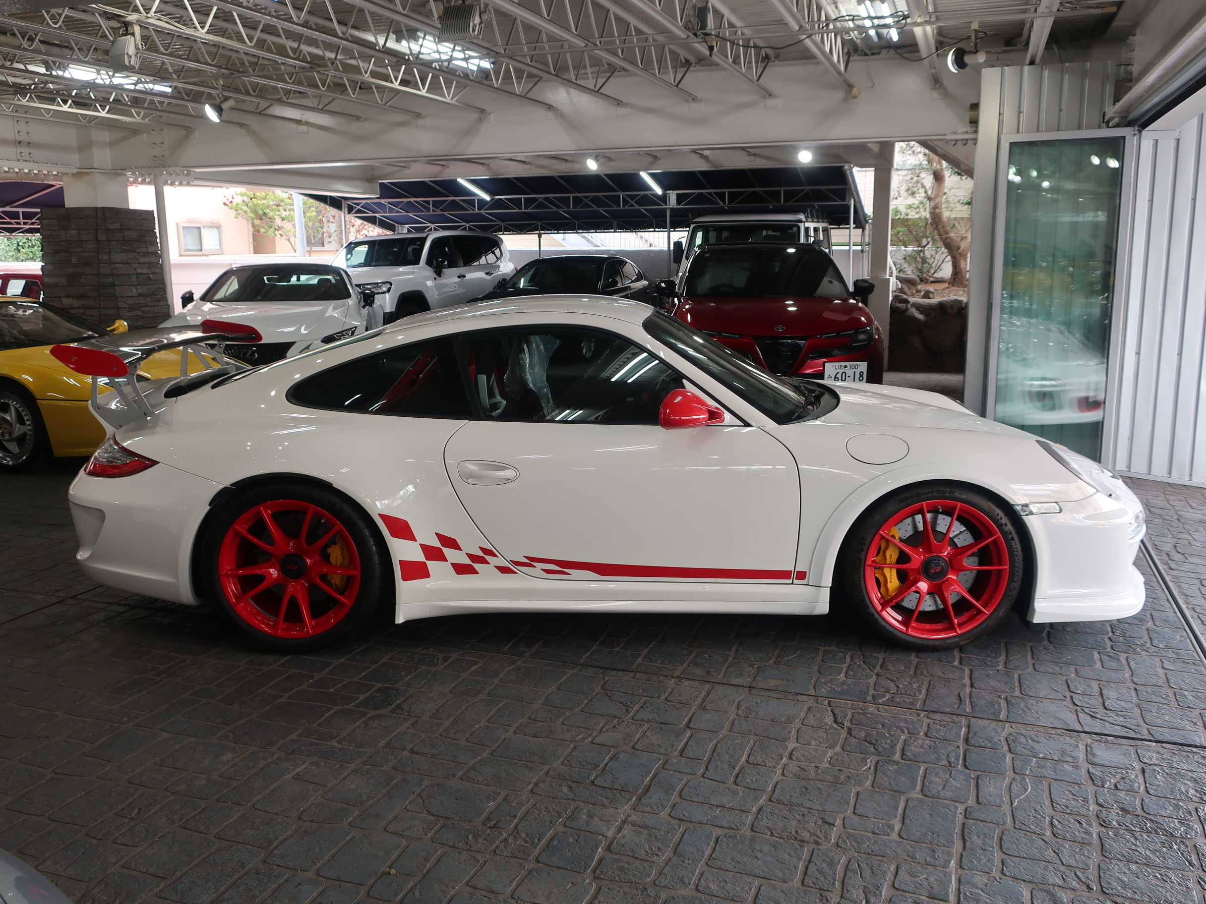 クラブスポーツパッケージ、19インチGT3ホワイトホイール(センターロック)ダイナミックエンジンマウント(PADM)、ポルシェアクティブサスペンションマネージメント(PASM)、ポルシェスタビリティマネージメントシステム(PSM)、スタビリティコントロール(SC)、スポーツエグゾースト(センター2本テールパイプ)、トラクションコントロール(TC)、バイキセノンヘッドライト、LEDポジションランプ/テールランプ、3本スポークGT3ステアリング、アルカンターラシフトレバー/サイドブレーキレバー、カーボンダッシュボードトリム、タイヤプレッシャーモニタリング(TPM)、ガーズレッドシートベルト、フルオートエアコン、オンボードコンピューター、アルミ調フューエルタンクキャップ、室内アラームシステム、[オプション装備]フロントアクスルリフト機能、スポーツクロノパッケージプラス、軽量バケットシート、イエローペイントキャリパー、ボディーカラー同色ミラーベース、ヘッドライトクリーニング用ノズル、リアセンターコンソール、メーターパネルサラウンド、クロノメーターパネル、クリアガラスルックテールランプ、[社外装備]HDDナビゲーション、バックカメラ、ETC、GPSレーダー他が装備されております。