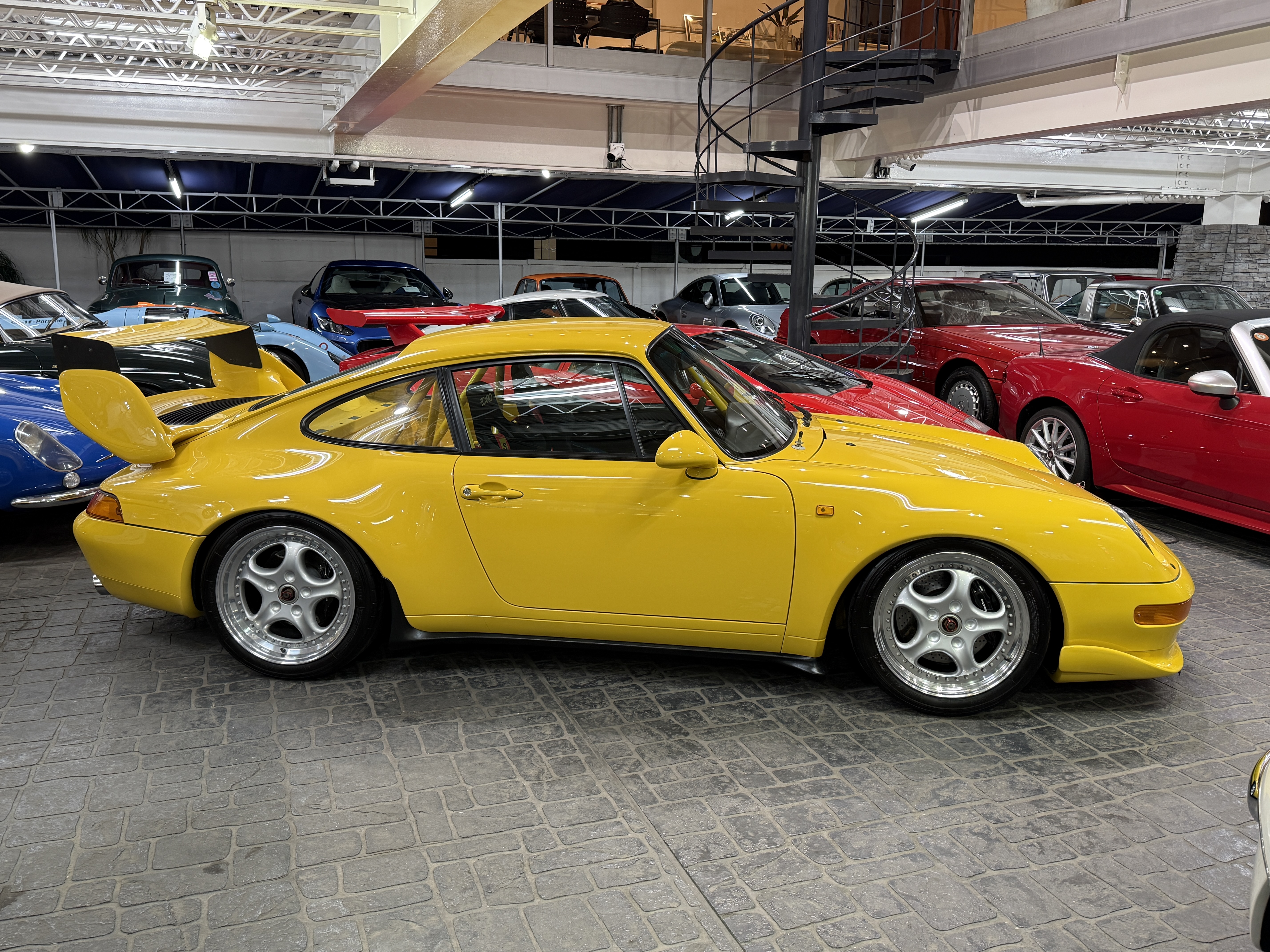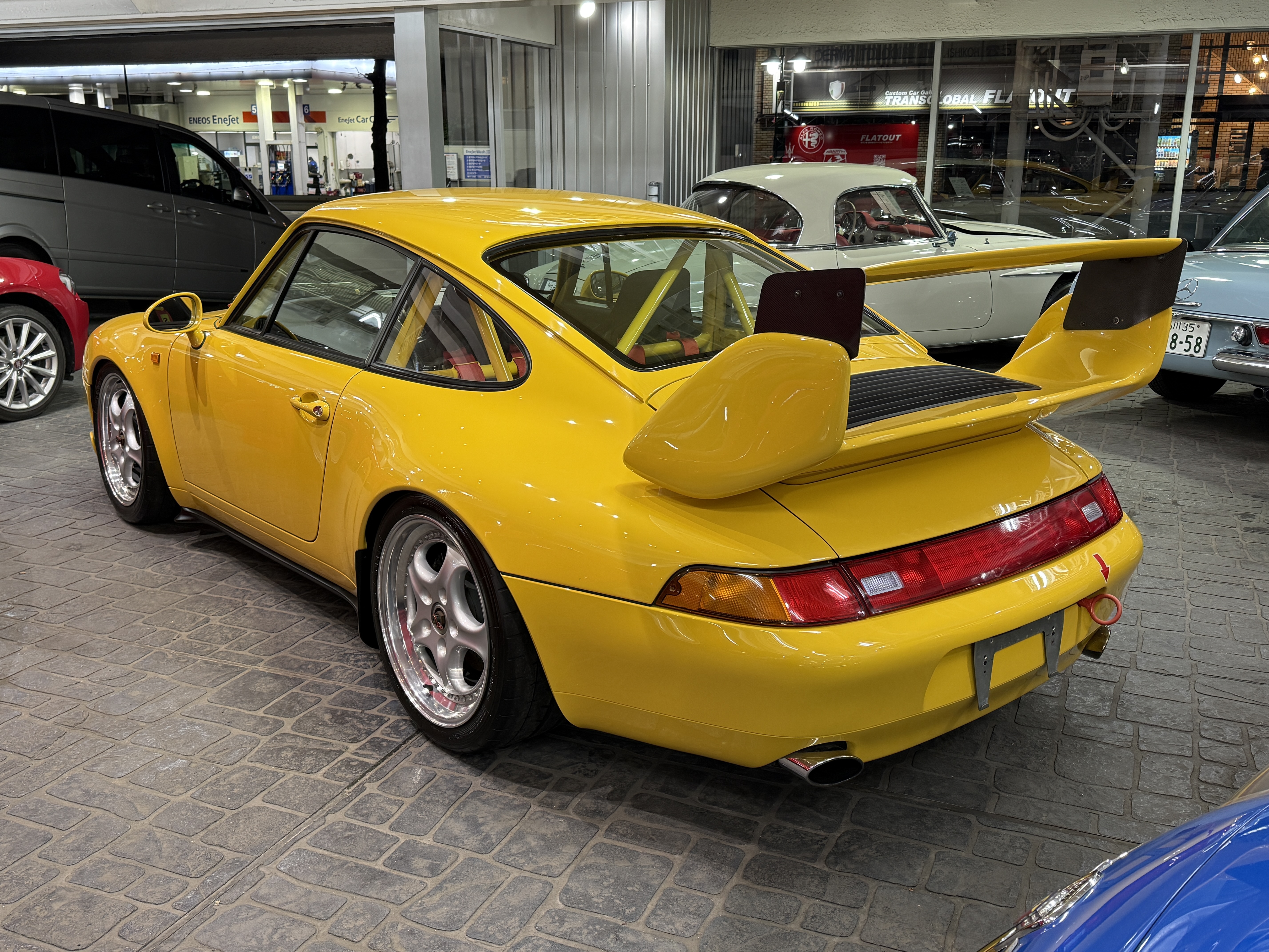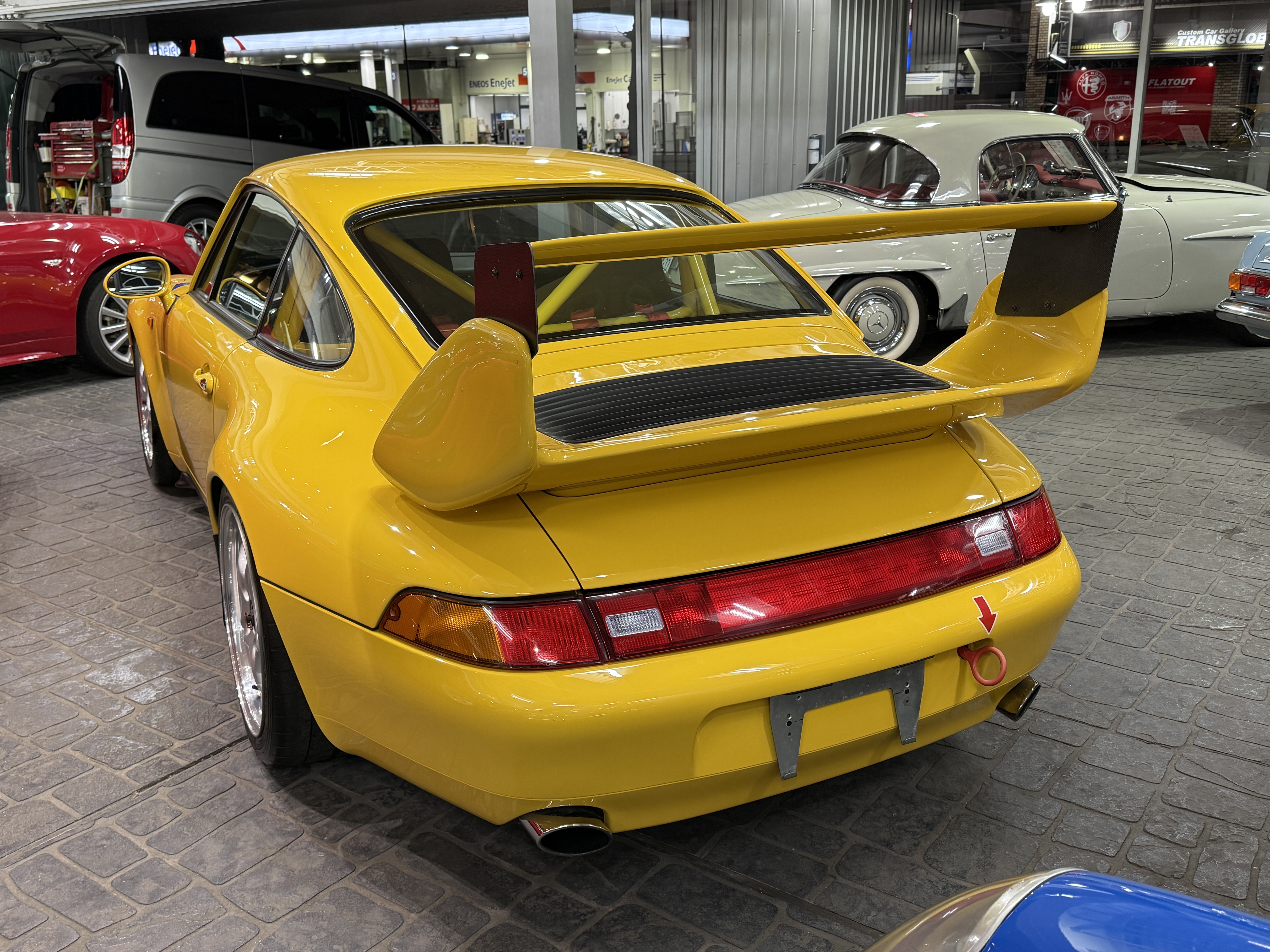 遠く遥かなるスポーツカー人気が高まりをみせた時代、スポーツカーとはレースを戦うのが常識と思われていた。オースティン・ヒーレー・スプライトやロータス、アバルト等の小型なものから、アストンマーティン、ジャガー、フェラーリなど大型のスポーツカーまで、その性能を研ぎ澄ましサーキットでのレースやラリーに参加し性能を競いあっていた。ここでの勝利こそスポーツカーの証と考えると、その名前に最も相応しいスポーツカーはポルシェだと言えるかもしれない。生産型をベースとするGTレースの分野に於いてポルシェほど多くの勝利を重ねたスポーツカーは存在しない。ポルシェをレースに駆り立てた動機があるとすれば、自らが開発したクルマの実力を試したかったからではないだろうか。この考え方は基本的に、その後のポルシェのレース活動に共通する理念となっている。その代表的なレースは「ル・マン24時間レース」で、ポルシェは1951年に極めて初期型の「グミュントクーペ」とよばれる「356」で初挑戦する。フォルクスワーゲン製をベースとする1.1ℓの空冷フラット4エンジンをリアに搭載し総合20位、1100ccクラスで優勝を獲得する。これをかわきりに2年後にはミッドシップの純レーシングモデル「550」で参戦すると小排気量クラスを連続制覇。年をおうごとに排気量を上げ1960年代末にはフェラーリ、フォードと総合優勝を争うポジションまで上りつめる。ポルシェは1969年の「ル・マン」に当時最強のレーシングモデル4.5ℓ・フラット12エンジン搭載の「917」を3台送り込む。安定性と信頼性の不足により全車リタイアとなるが、3ℓ・フラット8エンジンを載せた「908」が、最終ラップ迄トップを走る。ミュルザンヌのストレートでジャッキー・イクスのドライブする「フォードGT40」に抜かれて惜しくも優勝を逃した。24時間もレースを続けてその差は、僅か100mという接戦で惜しくも2位に終わる。その翌年の「ル・マン」にポルシェは、7台の「917」をエントリーして、1-2フィニッシュと3位に「908」が入り表彰台を独占してみせた。一方で「911」をベースに挑戦するGTカテゴリーのレース活動は「ル・マン」はじめ、デイトナ、モンツァ、タルガ・フローリオ、スパ、ニュルブルクリンク等、舞台を選ばず長いストレートもトリッキーなコーナーも、如何なるライバルよりその速さを印象に残した。そして1972年のパリサロンで「550スパイダー」からそのレース用エンジンを譲り受け搭載した特別なモデル「356A1500GS」に最初に付けられた「カレラ」の名称が「356カレラ2」以来、時を経て復活し「911カレラRS」がデビューする。2.7ℓ・フラット6エンジンを搭載する軽量ボディ、ワイドなタイヤを収めるためのオーバーフェンダーと空力効果を得る為のスポイラーを装備し、グループ4カテゴリーの為のホモロゲーションモデルであり、ロードゴーイング・レーサーでもあった。そのデビュー戦は1973年2月の「デイトナ24時間レース」で、2.8ℓに排気量アップして2台の「RSR」がエントリーし総合優勝を得る。まだグループ4のホモロゲーションが下りていない為、プロトタイプとして参戦しながら、2位の「フェラーリ・デイトナ」3位の「シボレー・コルベット」を押さえての鮮烈なデビュー・ウィンを飾る。その後もターボチャージャーを備える「934」「935」による圧倒的な強さは、皮肉にもスポーツカーレースから面白さを奪う程となってゆく。その最大の勝因となるのは「911」がもつパワフルなエンジンのパワーを速さに換える素性の良さと、多くの闘いの中でのフィードバックにより、常に磨かれ続けてそれを強さに結び付けてきた事による。それは現代でも全く変わる事なくポルシェは常に「911」を進化させながらその時代に於いての高い性能を常に維持し、レースへの挑戦を忘れる事は無い。それこそが創業時からポルシェが自身のアイデンティティを維持する為の最も重要なミッションとなっている。ポルシェは、登場から30年を迎えた「911」の高い性能を刷新するべく、それまでの空冷フラット6エンジンを搭載したモデルの集大成として、新たに「993型」を1993年9月のフランクフルトショーで発表する。それまでの「911」のイメージを色濃く残していた「964型」のエクステリアデザインに対し「993型」では「911」の特徴となる丸目のヘッドライトをスラントさせ、そこからつながるフェンダーの峰をなだらかに変更し、前後のバンパーは完全にボディと一体化されたデザインを採用する。グリーンハウスのシルエットはそれまでの「911」のイメージで継承されるが、フロントウィンドウが3mm、サイドウィンドウが7mm、外側に出される事でフラッシュサーフェス化が施され、拡幅されたリアフェンダーは「911」らしい丸みを表現しながらもボディ全体のイメージは、よりモダナイズされた印象に生まれ変わった。このボディデザインはBMWで「Z1」のデザインを担当し「968」や「ボクスター」をデザインした事