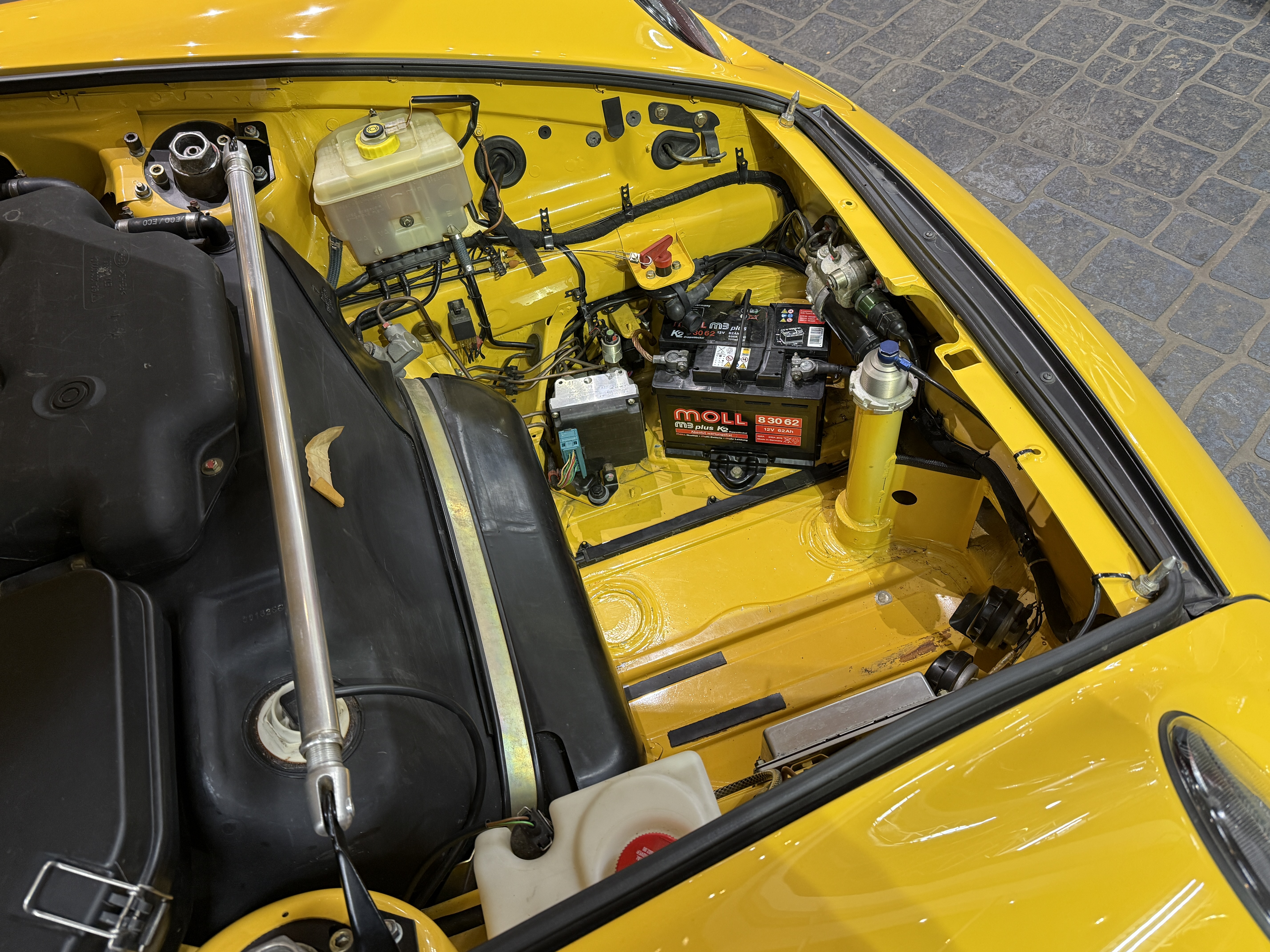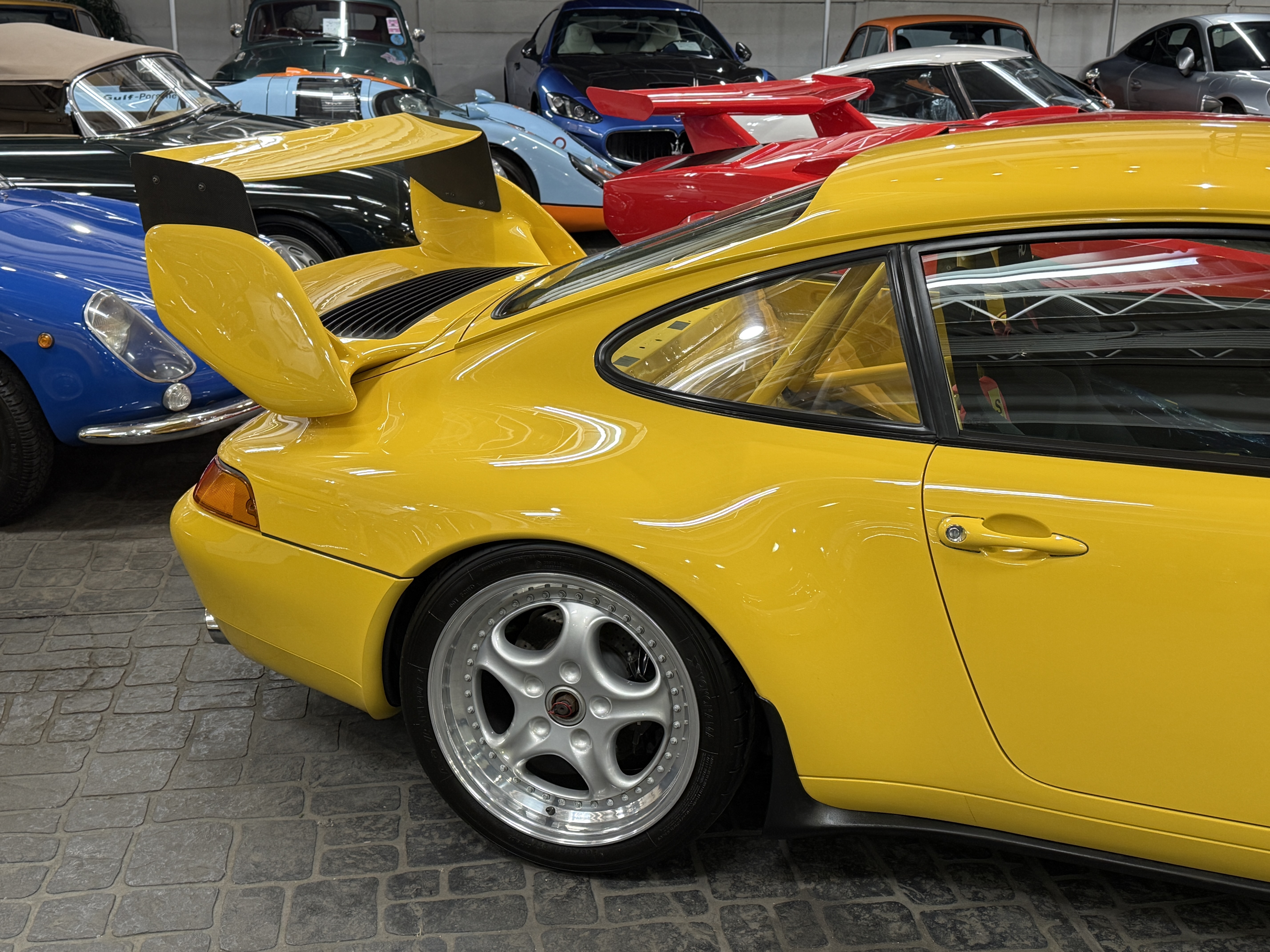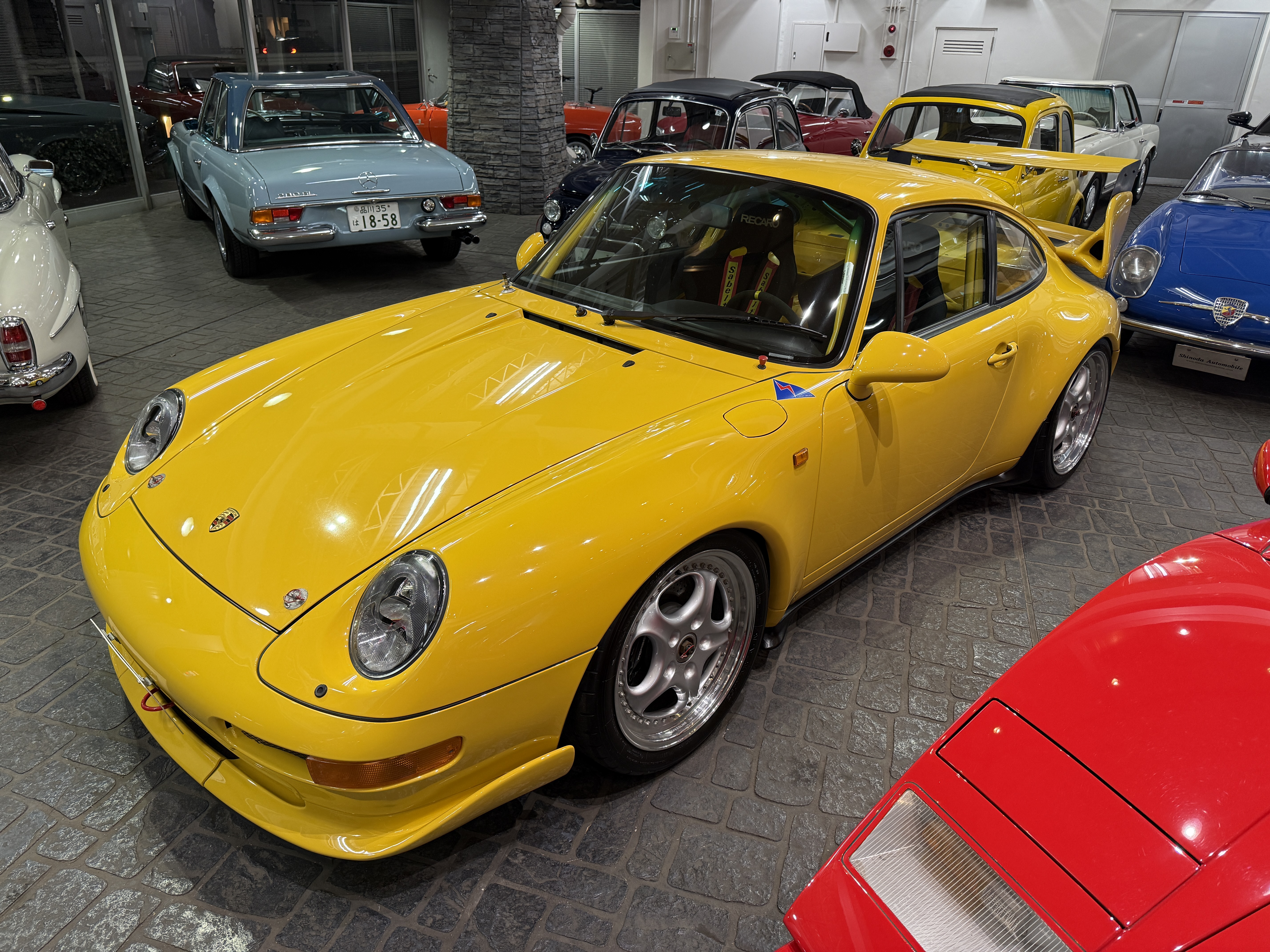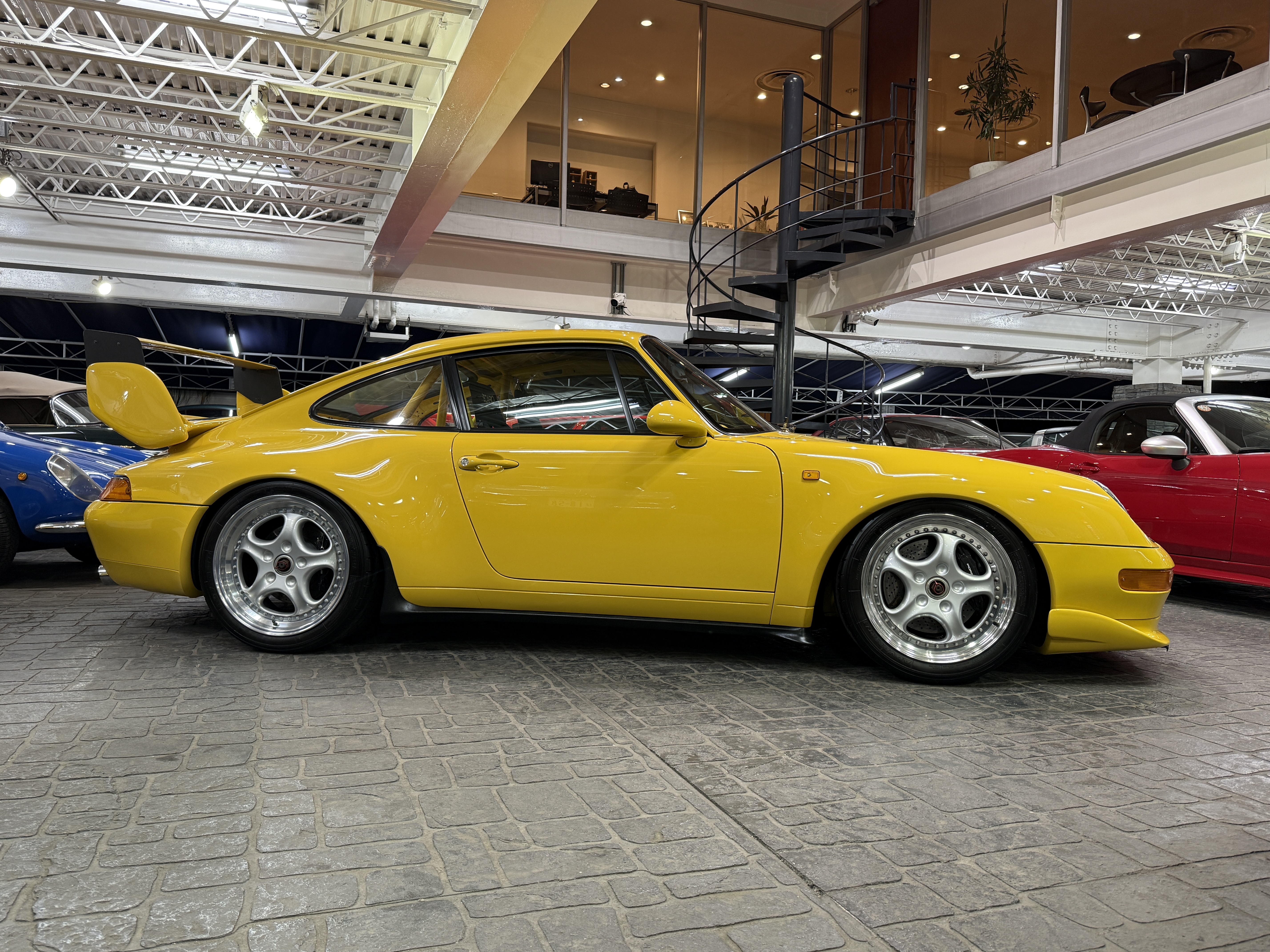 遠く遥かなるスポーツカー人気が高まりをみせた時代、スポーツカーとはレースを戦うのが常識と思われていた。オースティン・ヒーレー・スプライトやロータス、アバルト等の小型なものから、アストンマーティン、ジャガー、フェラーリなど大型のスポーツカーまで、その性能を研ぎ澄ましサーキットでのレースやラリーに参加し性能を競いあっていた。ここでの勝利こそスポーツカーの証と考えると、その名前に最も相応しいスポーツカーはポルシェだと言えるかもしれない。生産型をベースとするGTレースの分野に於いてポルシェほど多くの勝利を重ねたスポーツカーは存在しない。ポルシェをレースに駆り立てた動機があるとすれば、自らが開発したクルマの実力を試したかったからではないだろうか。この考え方は基本的に、その後のポルシェのレース活動に共通する理念となっている。その代表的なレースは「ル・マン24時間レース」で、ポルシェは1951年に極めて初期型の「グミュントクーペ」とよばれる「356」で初挑戦する。フォルクスワーゲン製をベースとする1.1ℓの空冷フラット4エンジンをリアに搭載し総合20位、1100ccクラスで優勝を獲得する。これをかわきりに2年後にはミッドシップの純レーシングモデル「550」で参戦すると小排気量クラスを連続制覇。年をおうごとに排気量を上げ1960年代末にはフェラーリ、フォードと総合優勝を争うポジションまで上りつめる。ポルシェは1969年の「ル・マン」に当時最強のレーシングモデル4.5ℓ・フラット12エンジン搭載の「917」を3台送り込む。安定性と信頼性の不足により全車リタイアとなるが、3ℓ・フラット8エンジンを載せた「908」が、最終ラップ迄トップを走る。ミュルザンヌのストレートでジャッキー・イクスのドライブする「フォードGT40」に抜かれて惜しくも優勝を逃した。24時間もレースを続けてその差は、僅か100mという接戦で惜しくも2位に終わる。その翌年の「ル・マン」にポルシェは、7台の「917」をエントリーして、1-2フィニッシュと3位に「908」が入り表彰台を独占してみせた。一方で「911」をベースに挑戦するGTカテゴリーのレース活動は「ル・マン」はじめ、デイトナ、モンツァ、タルガ・フローリオ、スパ、ニュルブルクリンク等、舞台を選ばず長いストレートもトリッキーなコーナーも、如何なるライバルよりその速さを印象に残した。そして1972年のパリサロンで「550スパイダー」からそのレース用エンジンを譲り受け搭載した特別なモデル「356A1500GS」に最初に付けられた「カレラ」の名称が「356カレラ2」以来、時を経て復活し「911カレラRS」がデビューする。2.7ℓ・フラット6エンジンを搭載する軽量ボディ、ワイドなタイヤを収めるためのオーバーフェンダーと空力効果を得る為のスポイラーを装備し、グループ4カテゴリーの為のホモロゲーションモデルであり、ロードゴーイング・レーサーでもあった。そのデビュー戦は1973年2月の「デイトナ24時間レース」で、2.8ℓに排気量アップして2台の「RSR」がエントリーし総合優勝を得る。まだグループ4のホモロゲーションが下りていない為、プロトタイプとして参戦しながら、2位の「フェラーリ・デイトナ」3位の「シボレー・コルベット」を押さえての鮮烈なデビュー・ウィンを飾る。その後もターボチャージャーを備える「934」「935」による圧倒的な強さは、皮肉にもスポーツカーレースから面白さを奪う程となってゆく。その最大の勝因となるのは「911」がもつパワフルなエンジンのパワーを速さに換える素性の良さと、多くの闘いの中でのフィードバックにより、常に磨かれ続けてそれを強さに結び付けてきた事による。それは現代でも全く変わる事なくポルシェは常に「911」を進化させながらその時代に於いての高い性能を常に維持し、レースへの挑戦を忘れる事は無い。それこそが創業時からポルシェが自身のアイデンティティを維持する為の最も重要なミッションとなっている。ポルシェは、登場から30年を迎えた「911」の高い性能を刷新するべく、それまでの空冷フラット6エンジンを搭載したモデルの集大成として、新たに「993型」を1993年9月のフランクフルトショーで発表する。それまでの「911」のイメージを色濃く残していた「964型」のエクステリアデザインに対し「993型」では「911」の特徴となる丸目のヘッドライトをスラントさせ、そこからつながるフェンダーの峰をなだらかに変更し、前後のバンパーは完全にボディと一体化されたデザインを採用する。グリーンハウスのシルエットはそれまでの「911」のイメージで継承されるが、フロントウィンドウが3mm、サイドウィンドウが7mm、外側に出される事でフラッシュサーフェス化が施され、拡幅されたリアフェンダーは「911」らしい丸みを表現しながらもボディ全体のイメージは、よりモダナイズされた印象に生まれ変わった。このボディデザインはBMWで「Z1」のデザインを担当し「968」や「ボクスター」をデザインした事