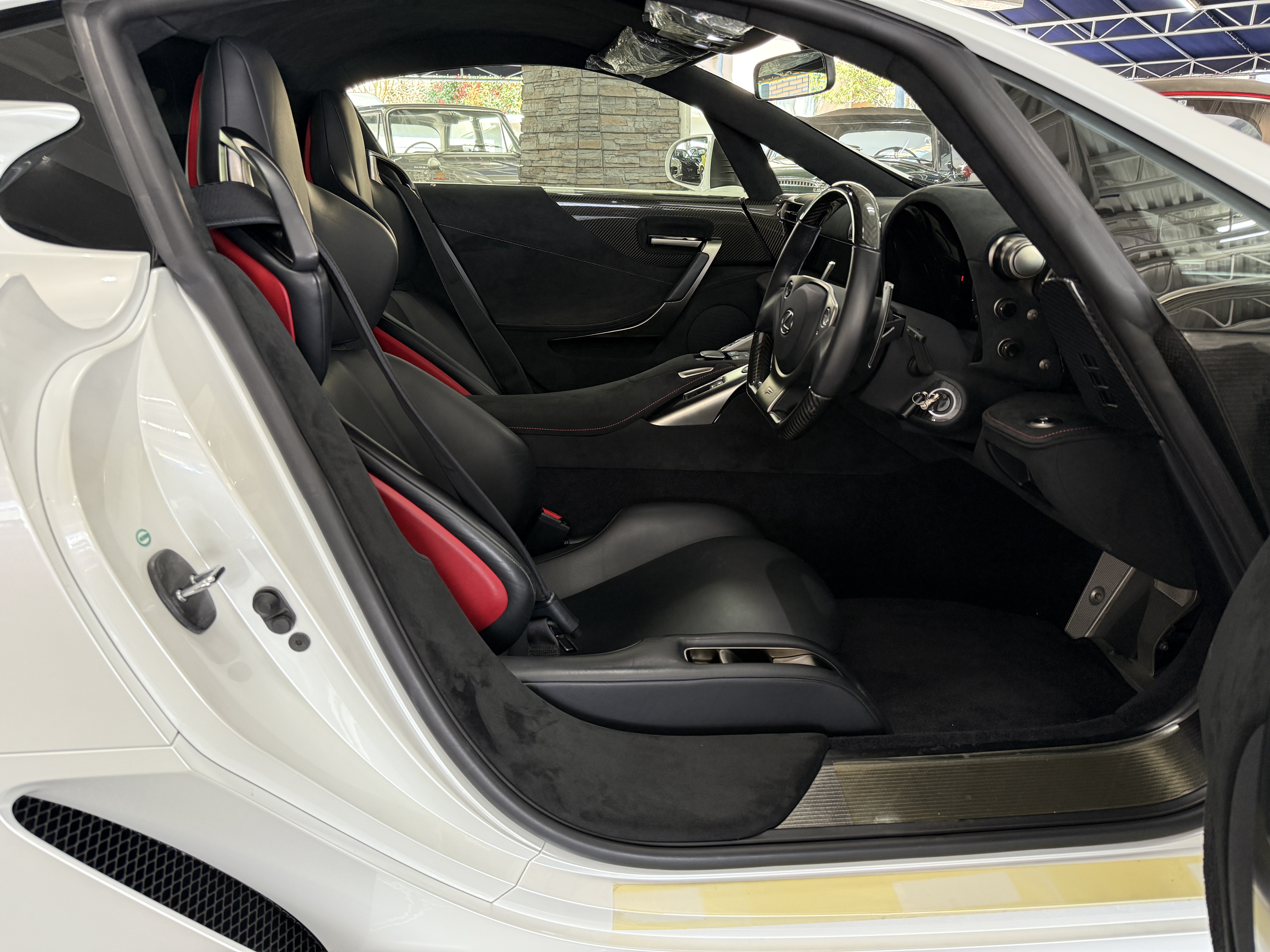 レクサスLFAは、2005年と2007年の東京モーターショーでプロトタイプが公開され、当初「LF-A(Lexus Future Advance)」と命名されていた。2005年のプロトタイプは平面造形で構成され、量産には程遠く感じられたが2007年の2世代目のプロトタイプは、まとまりのある美しさを持ったデザインとなった。凹面を巧みに生かした造形をもち、5ℓ近いV10エンジンを搭載するとは思えないコンパクトなボディに見えた。これは、70〜80年代のフェラーリをピニンファリーナ社在籍中にデザインをしていた、レオナルド・フィオラバンディの関与を窺わせるもので「LF-A」とフィオラバンディのイニシアル「LF」が重なるのは、偶然なのだろうか…2007年にレクサスは「IS」というモデルに「IS-F」というグレードを加えた。この「F(富士スピードウェイの意味)」シリーズの頂点に「LF-A」を位置付けるとともに、世界超一級レベルの動力性能と官能性をあわせもつスーパースポーツカーとしての開発を、統括エンジニアの棚橋晴彦とテストドライバーの成瀬弘を中心としてすすめていた。そして迎えた2009年、東京モーターショーで発表された市販型「LFA(Lexus FSports Apex」は、トヨタ自動車元町工場の「LFA工房」にて、全てを職人によるハンドメイドにより生産される事となった。「LFA」最大の見どころとなるのは、100%自社でつくられるカーボンコンポジット製のそのボディ。F1参戦により、そこから生まれた技術が活かされ、車体の中心となるキャビン部分は、カーボン成形法としては従来からあるプリプレグ法とSMC法に加え、RTM法と呼ばれる(E46型BMW・M3CSLのルーフに使われた手法)成形法を組み合わせ、強度と軽量化のバランスを取りつつ生産性を向上させていた。またルーフサイドレールはABS製のチューブが「三次元編み機」によりカーボンの糸で包まれる構造となる、織機の技術を持つトヨタ独自の画期的な製法が用いられている。このカーボンコンポジットボディの前後にアルミ製フレームがボルト締めされ、開発初期(2003年)のアルミプレス構造によるボディに比べ、約100kg軽量化されて重量236kgに仕上がっている。このボディを骨格としながら、被せられる外皮は、面積が広く剛性が必要なエンジンフード、ルーフにカーボンコンポジット(CFRP)、フロント及びリアフェンダー、サイドスカート、ドアなど剛性を必要としないエリアには、ガラスコンポジットが用いられ、軽量で高剛性のボディが形作られている。搭載されるエンジンは1LR-GUE型と呼ばれる、水冷72度V型10気筒DOHC40Vの「LFA」専用エンジンとなり、コンパクトで軽量に仕上げられている。このエンジンは、ハードウェア開発はトヨタ2000GT開発以来、永きにわたり技術提携をしてきたヤマハ発動機が担い、電子デバイスや制御システムの開発をトヨタ自動車が主に担当した。17ℓ入るエンジンオイルの潤滑はドライサンプ式とし、なるべく低く搭載し重心を下げられる様に考えられている。ピストンはアルミ鍛造製、コンロッドはチタン鍛造製、クランクシャフトはニッケルクロモリ鋼の鍛造製となる。吸排気それぞれのバルブに連続可変式(VVT-i)を採用し、気筒ごとに独立した10連独立電子制御スロットルを備え、アイドリングから9000rpmまで0.6秒という圧倒的なレスポンスが可能となる設計がなされている。ボア・ストロークは88mm×79mmで4805ccの排気量と12.0の圧縮比から560馬力/8700rpm、48.9kgm/7000rpmのトルクを発揮する。パフォーマンスはもちろん、NAエンジンならではのレスポンスとコンフォート性、そして何よりもそのサウンドにこだわって開発されたエンジンは等間隔爆発となる様に、72度のバンク角を採用している。それまで、NVHは極力減らしてエンジン音はなるべく消すと言い続けてきたトヨタが180度の方向転換をして、音を消すのではなく美しく奏でるものとし「天使の咆哮」と呼ばれる程のサウンドに仕上げた。このエンジンの組み立てはヤマハ本社工場内に特設されたクリーンルームが用意され、4人の専従作業者のみで行われる。ボルト1本からダイナモテストまで、その組み立て工程を全て1人で担当し、エンジン左バンク前方にそのいずれか1人のネームプレートが付けられている。組み合わされるトランスミッションは、6速ASG(オートメーディット・シーケンシャル・ギアボックス)と呼ばれるアイシン製シングルクラッチ電子制御式MTとなっている。エンジンレスポンスやパワーの変化を余すところなく味わう為に、この時代に選択出来たトルコン式やツインクラッチ式を見送り、あえてシングルクラッチ式にこだわった。「LFA」はフロントミッドシップによるFR駆動となる為、クラッチとギアボックスはリアに搭載するトランスアクスル方式を採用し、ここでもこだわりの設計を見る事が出来る。それはエンジンとミッションを結ぶトルクチューブが、低く搭載されたエンジンから85mm上方へカウンターギアにより移され、その下に排気管を通す方式が取られている。これによりセンターコンソ
