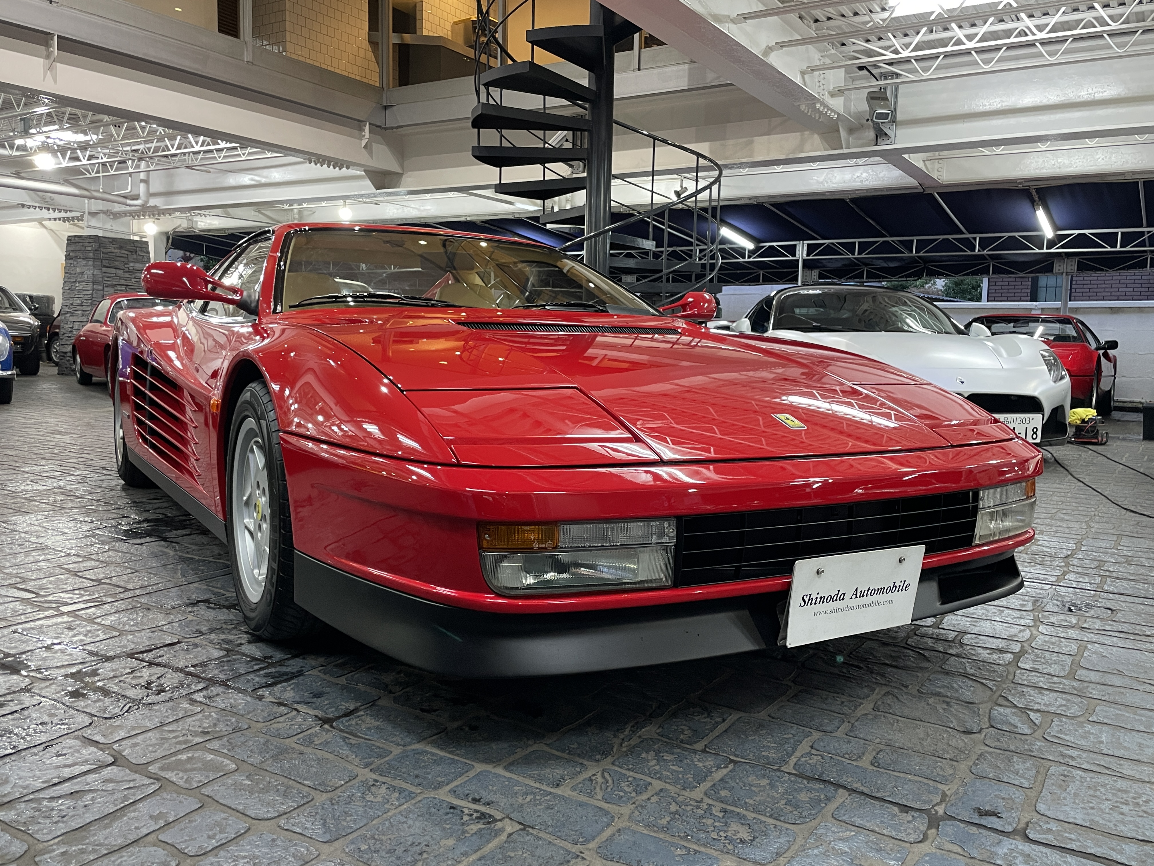 ︎エンジンをコックピット背後に置くフェラーリ初のロードモデル「ベルリネッタ・ボクサー」は、それまでのどのフェラーリ・ロードモデルよりも長い期間生産されたモデルとなる。創業以来フェラーリの市販車はレーシング・スポーツモデルをモチーフとしながら生産されていたが、この「ベルリネッタ・ボクサー」は1970年代から投入されたマウロ・フォルギエーリ技師による180度V型12気筒を搭載するF1マシン「312B」のイメージを投影したモデルとなる。フェラーリ・ロードモデルはスポーツカーからF1マシンへとそのモチーフの転換を図った事になる。それは「ロードモデルには全く関心を持たない」といわれた創業者エンツォ・フェラーリの指示のもと実現されたもので「365GTB/4デイトナ」の後継車はF1と同じ12気筒搭載によるミッドシップモデルとするよう、エンツォが開発陣に指令を出した事が話の始まりといわれている。それを受けた開発陣はフェラーリ・ロードモデルとしての運動性能確保の為、ショートホイールベースは欠かせない条件のもと、居住性にもエンツォは妥協を許さなかった。エンジン単体で全長70cm、クラッチハウジングまで含めれば1mを超す12気筒を、普通に縦置きすればホイールベースは自ずと長くなってしまう。これらの条件を同時にクリアするのは、困難を極めた。この難題に取り組んだのは1970年代から80年代までフェラーリ・ロードモデル開発を担当したエンジンスペシャリスト、トリノ工科大卒のジュリアーノ・デ・アンジェリスと、フェラーリ社創業開始前からエンツォのもとで働くチーフ・エンジニア、アンジェロ・ベレイを中心としたチームだった。様々なネガ要素をやり繰りする中、やっとの思いで誕生したのが特徴的な2階建てパワートレインレイアウトだった。長距離、長時間のテスト走行が繰り返されながら、何とか手懐けられた「312シリーズ」と同様の180°V型12気筒パワートレインは「365GT/4BB」に搭載され、のちに排気量アップが図られながら「512BB」「512BBi」とシリーズを通して約10年間で2323台が生産された。その後継車として1984年パリサロンでデビューしたのが「テスタロッサ」となっている。数あるフェラーリ・レーシングモデルの中でも最も成功した往年の「テスタロッサ」の車名が与えられたモデルとなる。イタリア語で「テスタ=頭」「ロッサ=赤」をそれぞれ意味するワードを車名にもち、1957年〜1962年の間、カムカバーが赤く塗られた3ℓ・V12気筒エンジンを搭載した「250テスタロッサ」は、1958年にスポーツカーレースにおいてマニュファクチャラーズ・チャンピオンに輝いたのをはじめ1959年にはセブリング12時間レースに勝利を挙げるなど、フェラーリに輝かしい戦績を残したモデルとなっている。その名前を引き継ぐのに相応しい実力を持った、当時の12気筒搭載のフラッグシップとなり、そのエンジンのカムカバーもまた赤く結晶塗装が施されている。主要なメカニカル・コンポーネンツのレイアウトはBBからの流用とされたが、BB設計時に弱かった空力性能を新設されたピニンファリーナ社の風洞設備を活用し、時代に先駆けた高い空力特性を確立しCd値0.36に加え、リフトに関してもフロント0.01、リア0.1という優れた数値を実現している。特徴的な5本の水平フィンに覆われた、大型のサイド・エアスクープはF1マシン「312B」や「312T」と同じくリア・サイドにマウントされたラジエーターに空気を送る為のもの。フロント・ラジエーターだった「BB」では、その熱によりコックピット環境に影響を与え、ラゲッジスペースの確保もままならなかった。「テスタロッサ」ではラジエーターを移設することで、フロントに180ℓのラゲッジスペースを確保するとともに、熱に影響されないコックピット環境に改めコンフォート性能を充実することに成功している。フロントエアダムに残されたエアダクトは、オートマチックエアコンのコンデンサーとフロントブレーキ冷却用として活用されている。1984年パリサロンでデビューした「テスタロッサ」のボディデザインは古くからフェラーリ・ロードモデルを手掛けてきたカロッツェリア・ピニンファリーナ社によるもの。「ディーノ」「デイトナ」「BB」と、そのデザインに手腕を振るったレオナルド・フィオラバンティが推すサイドラジエーター案を元に、安全性と個性を極めるボディデザインを施したのはディエゴ・オッティナだった。ピニンファリーナ50周年を記念し発表された4ドア・フェラーリのコンセプトモデル「フェラーリ・ピニン」やポップなデザインの「プジョー104プジェット」「ランチア・ヒット」などをデザインした人物となる。「テスタロッサ」の幅広のリアセクションが波打つようにフロントへ流れ、ボディ前後のマスが特徴的なボディサイドのルーバーを備えた大型のエアインテーク付近で交差するデザインは、パリサロンで発表されると混乱と困惑を持って迎えられるが、次第に評価され始め