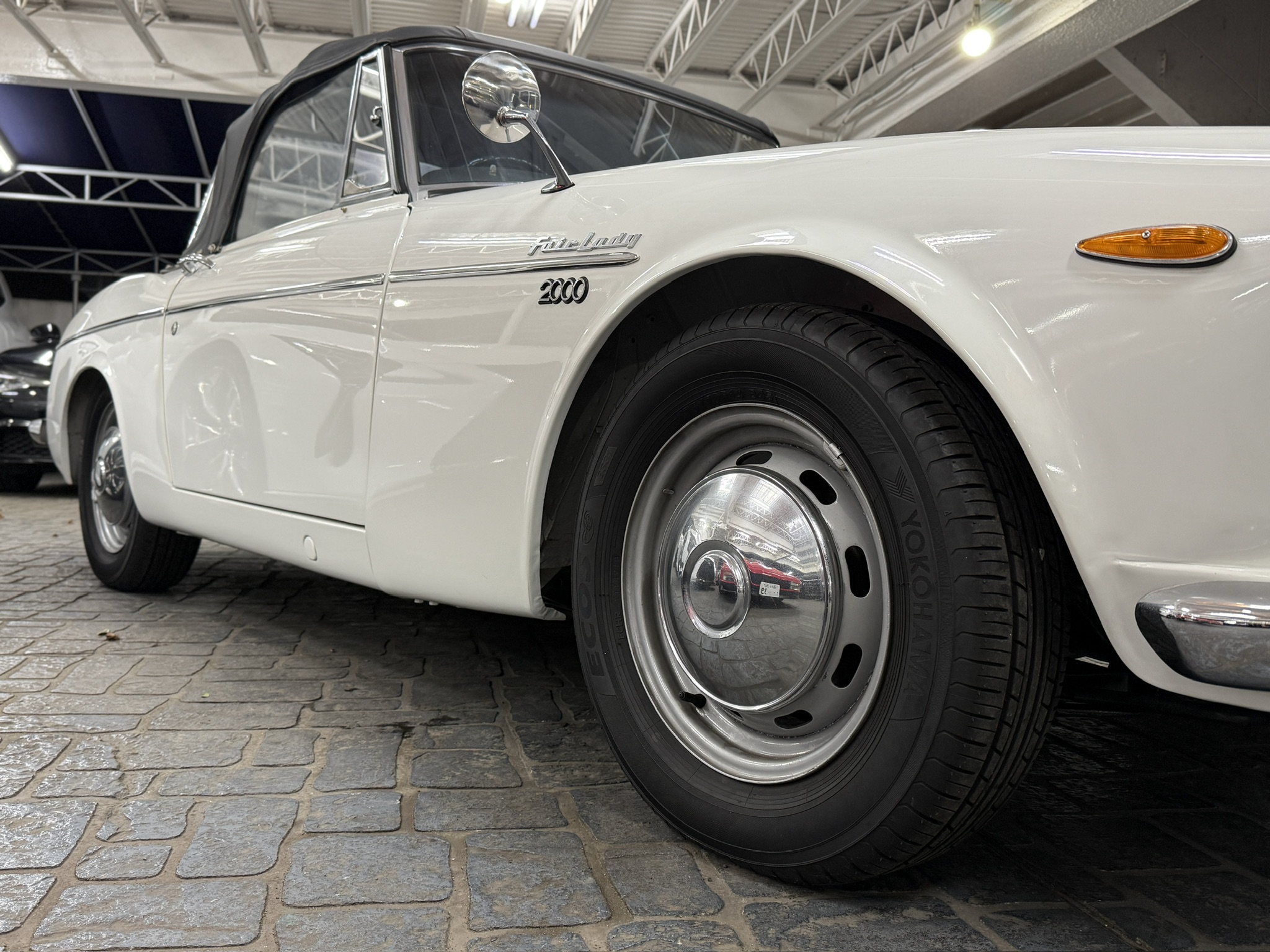 ︎ 1961年秋の東京モーターショーでデビューした「ダットサン・フェアレディ1500(SP310型)」は、60年代の典型的なスポーツカーのスタイルで表現された国産オープンスポーツモデルで、ショーデビューから1年後の1962年10月に販売が開始された。この「フェアレディ1500」以前のスポーツモデルは、国産車で初めて「スポーツ」を車名に採用して1952年に登場した「ダットサン・スポーツDC-3」が挙げられる。このモデルを起点として、FRPボディをもつ「ダットサン・スポーツ(S211型)」が続く。そして「フェアレディ」以前に「フェアレデー」と名付けられた「SPL212型」と、その発展型の「SPL213型」が存在するが、左ハンドルの輸出専用モデルとなり、実質的な国産スポーツモデルの始まりは「SP310型フェアレディ」からと言えるだろう。国産初の本格的スポーツカーとしてデビューした「ダットサンフェアレディ1500」は「ブルーバード(P312型)」のシャーシ・フレームにクロスメンバーを追加して剛性を高め、フロントにダブルウィッシュボーン式+コイル、リア・リーフリジットという足回りも「ブルーバード」のものを改良して採用していた。シンプルな形状のフロントグリルを持ち、丸目2灯のヘッドライトから始まるフェンダーラインはそのままウェストラインへと緩やかなアールが付けられ、ドア後方からキックアップしキャビン後方をグルリと囲む。ドア後方からキックアップするラインは直線的に伸びホイールアーチ後方で斜めにスッキリと断ち落とされ、平面状のリアパネルへと続く。フロントタイヤに沿った形状のホイールアーチに対して、リアはホイールに被るような形状をもつのは同時期のオープンスポーツモデル「MGB」にも通じるデザインと言えるのかもしれない。このボディデザインは「ダットサンフェアレディ」シリーズを通して基本的には継承されるものとなる。エンジンは「セドリック(50型)」用の1.5ℓ・水冷直列4気筒OHVの71馬力/11.5kgmを発揮するエンジンを搭載し、ドライバーズシートの後ろに横向きにシートを装備していたのが特徴となる。1964年モデルからは2シーター化され、東京オリンピックの翌年の1965年5月には先にデビューしていた「シルビア(CSP310型)」から、90馬力/13.5kgmを発揮する新型1.6ℓ・4気筒SOHCエンジンとポルシェタイプのシンクロを装備した4速マニュアルミッション、フロント・ディスクブレーキを流用した「ダットサンフェアレディ1600(SP311型)」がデビューする。ボディデザインが継承された「フェアレディ1600」は、この時点でカタログデータとして最高速度160km/hを超え、当時のスポーツカーとしてのひとつの指標でもある“100マイル・カー”への仲間入りを果たしている。あくなき高性能への更なる発展を目指し1967年3月「ダットサンフェアレディ」シリーズのトップモデルとして発表されたのが「フェアレディ2000(SR311型)」となり、車名の通り2ℓ・4気筒SOHCエンジンを搭載し、あらゆる面で当時の日本のスポーツカー史上、最強・最速の硬派な一台として登場したモデルとなっている。︎生産された台数のその多くが、北米に輸出された「SP/SR型フェアレディ」は、オースチンヒーレーや、MG、トライアンフなど第二次世界大戦以降ブリティッシュスポーツを中心にヨーロッパのメーカーによる独占状態だった北米市場を少しずつ塗り替えていく事となる。北米に於ける「ダットサン/日産」の正式な活動は、1960年に現地法人の「NMC(ニッサン・モーター・コーポレーションUSA)」をロサンゼルスに設立した時から本格的に始まる。1958年には僅か52台だった輸出販売台数は「NMC」が開設された年には、初代「フェアレデー(SPL212型)」が123台輸出され、翌年にはパワーアップされた「SPL213型」が106台販売された。これを足掛かりに1962年からは「フェアレディ1500(SPL310型・型式に含まれるLは左ハンドルを意味する)」を北米デビューさせ、少しずつマーケットを拡大しながら1966年迄に3148台が販売された。1.6ℓ化された後継モデル「フェアレディ1600(SPL311型)」は2万3609台を販売し、最高性能版の「フェアレディ2000(SRL311)」は、1万5718台を売り上げ「SP/SR型フェアレディ」として4万2704台もの台数のほとんどはカリフォルニアを中心として販売台数を伸ばし、ブリティッシュ・オープン・スポーツモデルのマーケットに食い込んでいった。北米のスポーツカーファンは物珍しさだけではなく、そのポテンシャルの高さをしっかりと認めSCCA(スポーツカー・クラブ・オブ・アメリカ)のレースには「SP/SR型フェアレディ」が大挙してエントリーするほどの人気を得ていた。レースを戦った代表的な人物としては、キャロル・シェルビーのファクトリーで「デイトナ・コブラ」を製作し、自ら「ブロック・レーシング・エンタープライズ(BRE)」を率いて主に西海岸を中心にレース活動をしていたピート・ブロックが知られている。東側では、本人がレーシングドライバーとして活躍していたボブ・シャープの活躍が広く