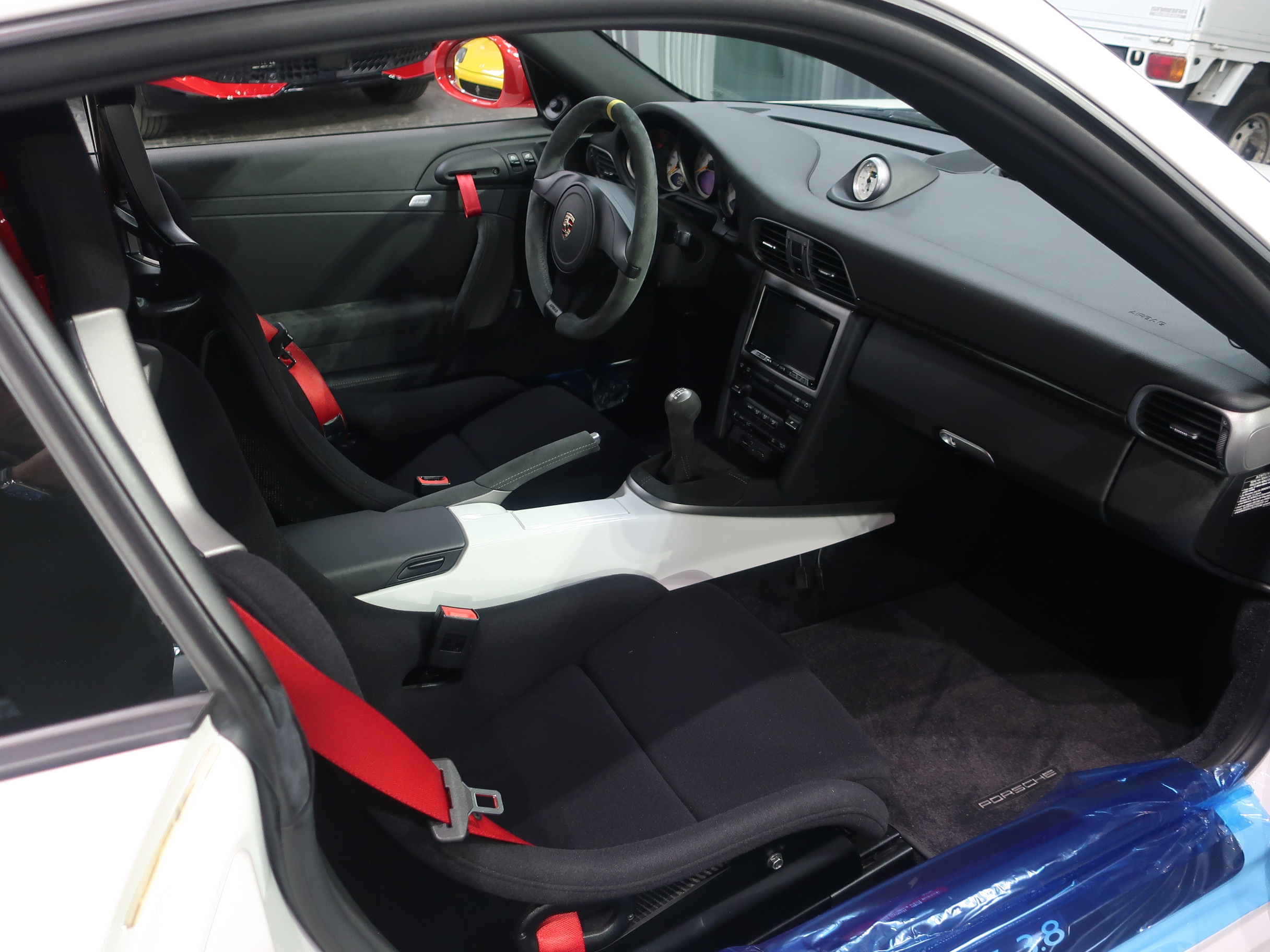 クラブスポーツパッケージ、19インチGT3ホワイトホイール(センターロック)ダイナミックエンジンマウント(PADM)、ポルシェアクティブサスペンションマネージメント(PASM)、ポルシェスタビリティマネージメントシステム(PSM)、スタビリティコントロール(SC)、スポーツエグゾースト(センター2本テールパイプ)、トラクションコントロール(TC)、バイキセノンヘッドライト、LEDポジションランプ/テールランプ、3本スポークGT3ステアリング、アルカンターラシフトレバー/サイドブレーキレバー、カーボンダッシュボードトリム、タイヤプレッシャーモニタリング(TPM)、ガーズレッドシートベルト、フルオートエアコン、オンボードコンピューター、アルミ調フューエルタンクキャップ、室内アラームシステム、[オプション装備]フロントアクスルリフト機能、スポーツクロノパッケージプラス、軽量バケットシート、イエローペイントキャリパー、ボディーカラー同色ミラーベース、ヘッドライトクリーニング用ノズル、リアセンターコンソール、メーターパネルサラウンド、クロノメーターパネル、クリアガラスルックテールランプ、[社外装備]HDDナビゲーション、バックカメラ、ETC、GPSレーダー他が装備されております。