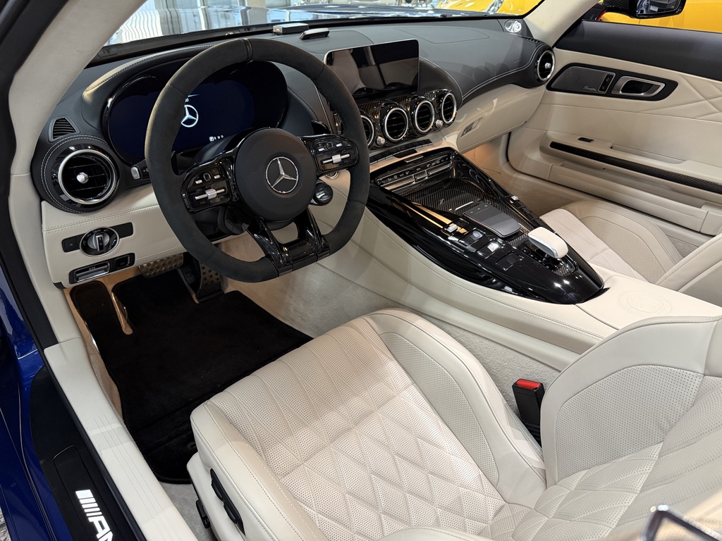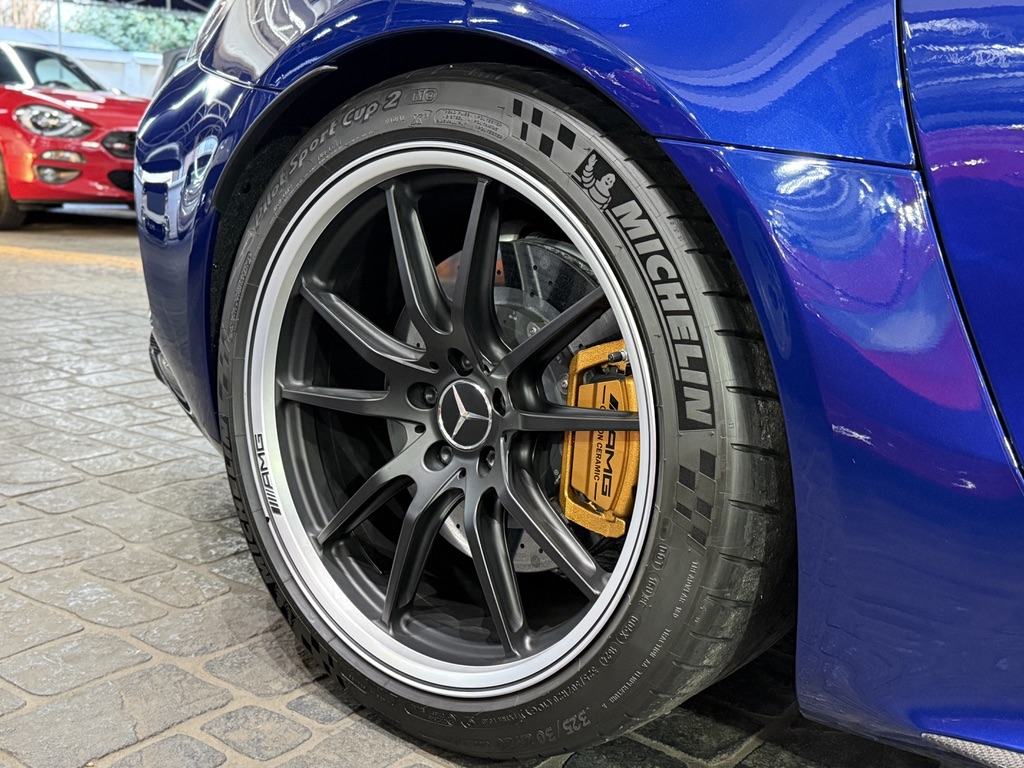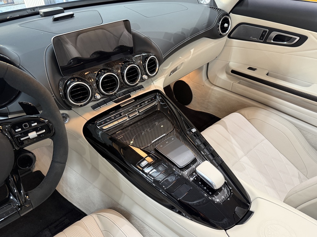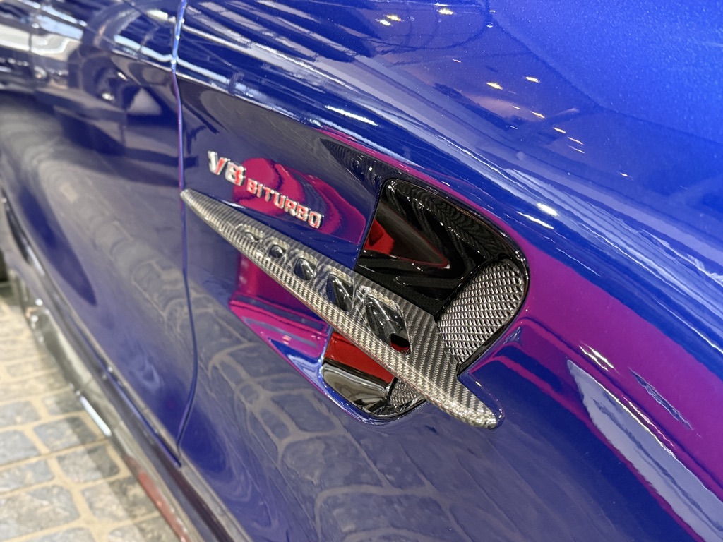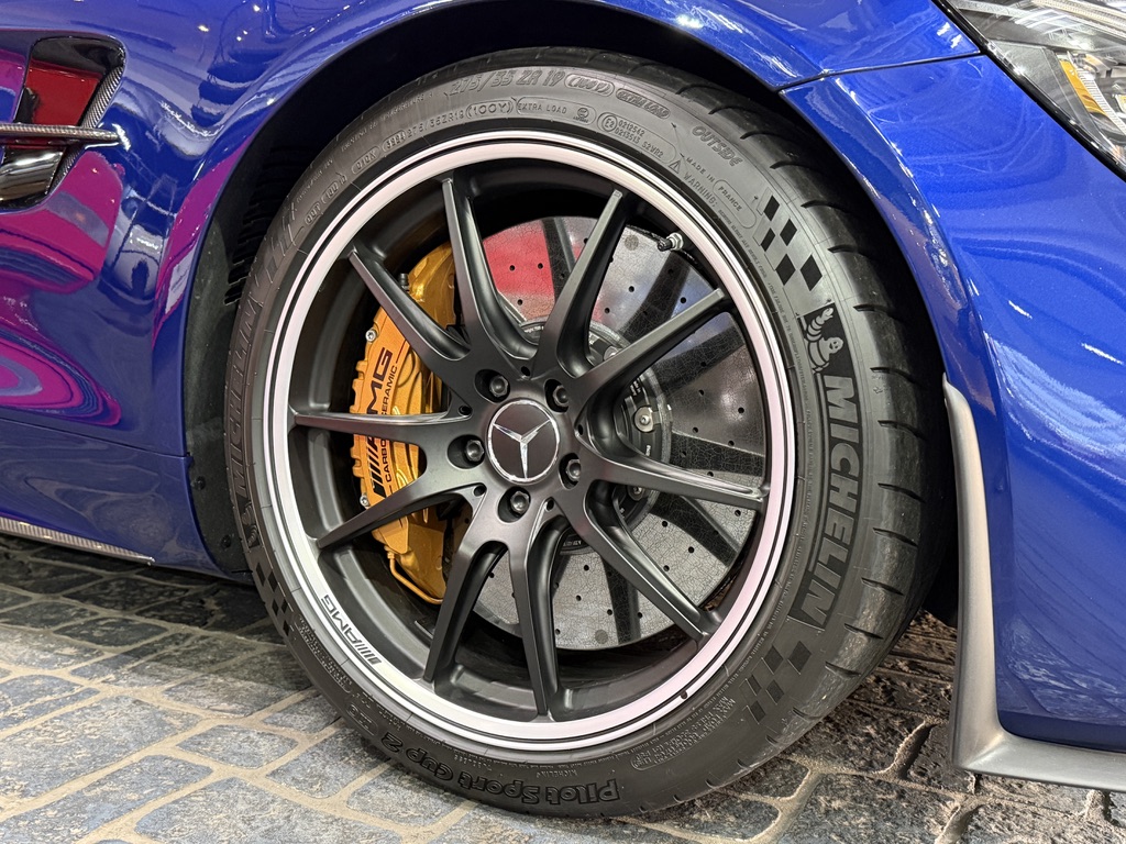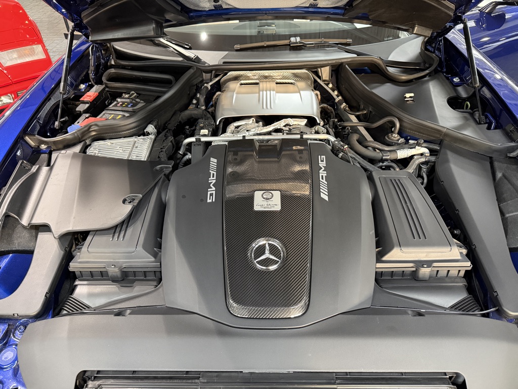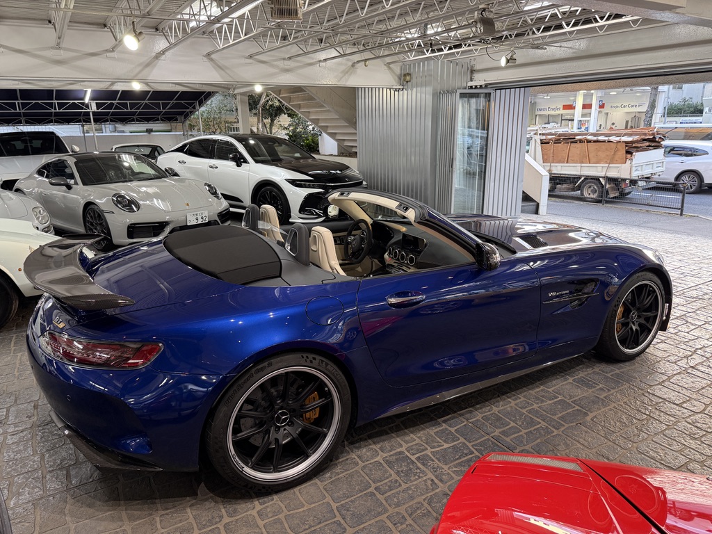 ︎「AMG」とはレース用エンジン設計会社として1967年に創業し、創業主のハンス・ヴェルナー・アウフレヒト、エンジニアのエアハルト・メルヒャー、そして創業主の故郷であるグローザスバッハの頭文字を順に合わせて社名としている。アウフレヒトとメルヒャーの2人は1960年代にダイムラーベンツの開発部門に籍を置き「300SE」に搭載されるレース用エンジン開発に携わっていた。しかしダイムラーベンツは全てのモータースポーツ活動の中止を決定、それでも諦めきれない2人は、仕事が終わってからもエンジン開発技術を磨き続ける日々を過ごしていた。それを知る同僚のマンフレッド・シークは、不要になった「300SE」を購入しこの2人に預けると、搭載されるエンジンに新しいカムシャフトと軽量バルブを組み込み、燃料供給装置に手直しを施して1965年の「ドイツ・ツーリングカー選手権」に参戦。マンフレッド・シークのドライブにより、1965年にエントリーした10回のレースで10回のポールポジションと、10回の優勝を成し遂げる圧倒的な勝利を収める。2人の評判は高まりをみせるが、アウフレヒトはこの結果に満足せずダイムラーベンツを退社すると、メルヒャーを説得して「AMG」を立ち上げた。1967年に製粉工場の跡地を使って創業した「AMG」は、少ない従業員ながら強いチームワークにより最大の成功を手にすることになる。この「AMG」の名前を世界に知らしめたのは、1971年の「スパ・フランコルシャン24時間レース」で、その赤く大きなボディから“レッド・ピッグ(紅の豚)”の異名をもつ「メルセデスベンツ300SEL6.8AMG」が、大方の予想を覆してクラス優勝を果たし総合2位に入った時となる。当時の「Sクラス」の最上位のモデルとして存在した「600」用の6.3ℓ・V型8気筒の「M100型」エンジンをベースに「AMG」が持てる技術を全て注ぎ込んで作製した6.8ℓエンジンを搭載し、多くのレースカーが脱落していく中で24時間を走り続けた。この時に現代も継承される「One Man,One Engin」という“エンジン1基の組み上げに対して1人のマイスターが全責任をもつ”という「AMG」の哲学が誕生する。現在でも「AMG」製エンジンは、ひとつのエンジンを1人のエンジニアが責任をもって組み上げ、その証として担当したエンジニアの署名が刻まれたプレートが付けられている。1635kgの車両重量をもつ巨大なレーシングモデルをレーシングスピードで走らせ続けるということは、激しいタイヤの摩耗や頻繁な給油というハンディを負うことにもなる。それに打ち勝って歴戦のフォード、BMW、アルファロメオ等と闘うのは並大抵の事では無い。この偉業とも呼べる戦果により「AMG」はその後の躍進の端緒を開く事になる。創業の地はブルグスタルだったが、僅か12人の従業員で1976年に現在のアファルターバッハに移転し、エンジンチューナーとしてビジネスを軌道に乗せる事に成功する。「AMG」のエンブレムには左側にリンゴの木と川が、右側にはカムとバルブが描かれている。「リンゴの木と川」は本社を構える地、アファルターバッハを表し「カムとバルブ」は、2人のエンジニアリングに対する熱い情熱を表すとされている。アファルターバッハの地名はドイツの古い言葉で「リンゴの木」を表す「アファルター」と、ネッカー川流域のシュツットガルト郊外に位置する事からドイツ語で「流れ」を意味する「バッハ」に由来する。周囲を囲む「月桂樹」は勝者の象徴となり、上部に「アファルターバッハ」下部に「AMG」がレイアウトされ「AMG」の「A」の左側に描かれた5本の斜線はタイヤ痕とされている。1980年代に入るとメルセデスベンツのバックアップを得てDTM(ドイツ・ツーリングカー選手権)での成功を経て、1999年にダイムラー・クライスラー(現メルセデスベンツ)がその株式の過半数を取得、2005年には完全に子会社化される。新たに設立された「メルセデスベンツAMG」は、それまでのモータースポーツ活動を通して培ってきた「AMG」のレーシングカーテクノロジーと、メルセデスベンツの最先端技術を結集して、これまで以上の強い関係と更なる結果を生み出すべく歩み始める。そこで産み出された「メルセデスベンツAMG」モデルとしては初の専用ボディをもつスーパースポーツ・モデル「メルセデスベンツSLS AMG」は、2009年9月のフランクフルトショーで発表される。車名とガルウィング式ドアが採用される事から、明らかに初代「メルセデスベンツ300SL」をリスペクトしたモデルでもある。搭載されるエンジンは「AMG」が独自開発したハイパフォーマンスエンジンとして定評のある自然吸気6.3ℓ・V型8気筒となり、このモデルをベースとした「SLS GT3」は、2011年のFIA GT3ヨーロッパ選手権を獲得している。また「メルセデスベンツAMG」として2010年からレースの最高峰となるF1にも54年ぶりに復帰を果たす。そして2014年にF1のパワーユニットが、1.6ℓ・V6ターボエンジンにハイブリッドシステムを加えた新レギュレーションに変更されると、こ