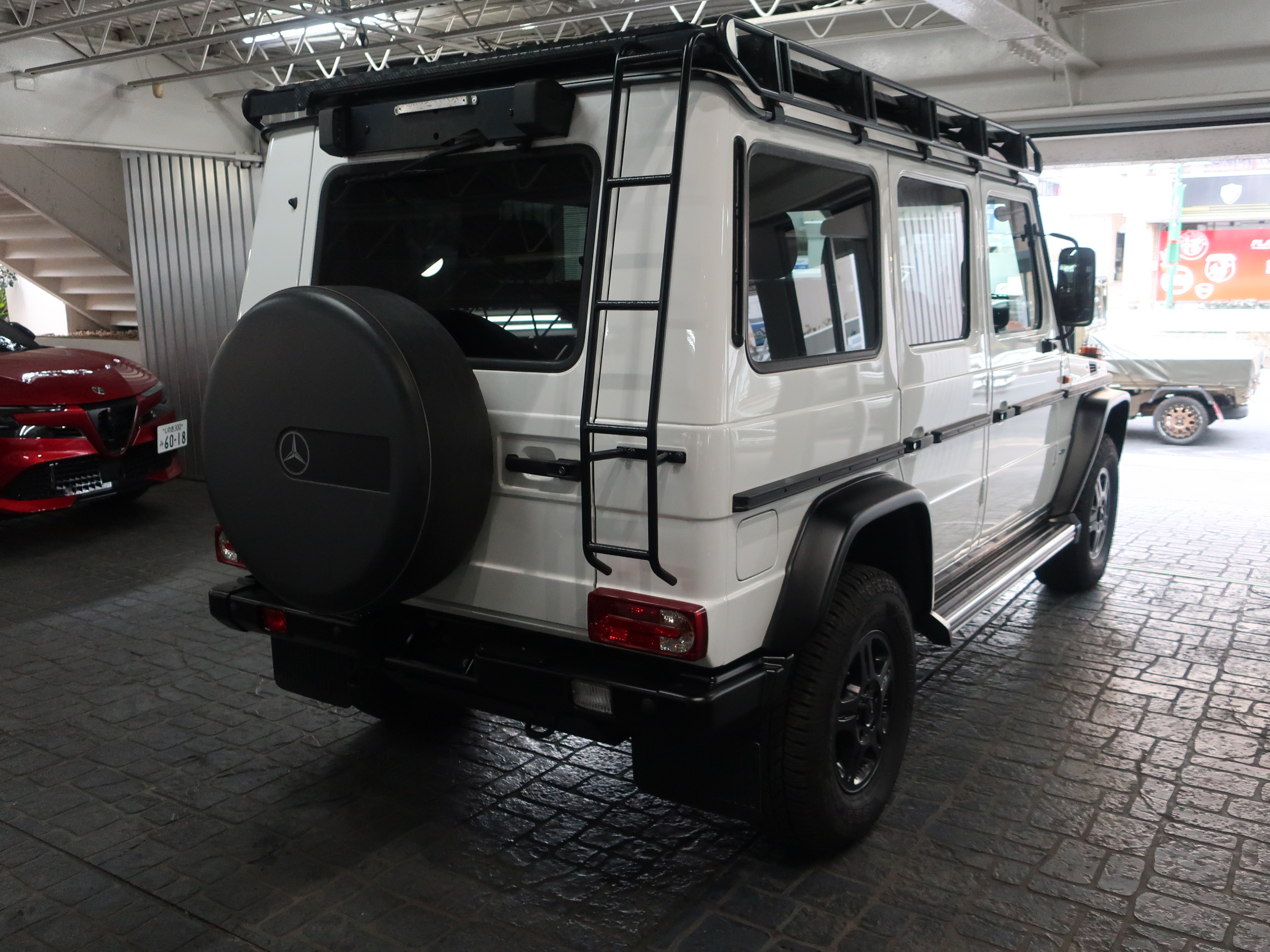 ︎前世紀の終わり頃から始まりをみせるスポーツ・ユーティリティ・ビークル=SUVの隆盛は、2022年には世界全体の新車販売台数の41.3%を占める3280万台を記録。この数字は前年比2.3%増となり過去最高を更新し、新車販売台数の半分を占める日が訪れるのもそれほど遠くはないのかもしれないと感じさせる。1980年代の中頃、この手の車両を「RV」とよんでいた時代から、既に高級SUVとしての地位を確立していた「メルセデスベンツ・ゲレンデヴァーゲン」は、数多くの高級SUVで溢れる現代に於いても、オフロードでの高い走破性と、変わらない信頼性で数多くファンをもつ。1979年3月のジュネーブショーでデビューした「メルセデスベンツ・ゲレンデヴァーゲン」は、小型軽量4駆の「ハフリンガー」や、大型全輪駆動車「ピンツガウアー」などで知られる、オーストリアのグラーツにあるシュタイア・ダイムラー・プフ(現マグナ・シュタイア)と7年間にわたる共同開発期間を経て発売されたメルセデスベンツのクロスカントリー・ヴィークルとなる。シュタイア・ダイムラー・プフの開発担当エンジニアは、エーリッヒ・レドヴィンカという人物。その父親のハンス・レドヴィンカはハンガリー帝国出身で、1930年代に最も進んだ自動車会社のひとつであったチェコのタトラで、SOHCエンジンの動弁機構や半球型燃焼室を開発した経歴をもっている。「ゲレンデヴァーゲン」の車体構造は「レンジローバー」に似て、強固な梯子型シャーシフレームを持ち、前後固定車軸はストロークの長いコイルバネと、深い断面による頑強な鍛造ラジアスアームで構成される足回りで吊られている。駆動系は「レンジローバー」がフルタイム4WDなのに対し「ゲレンデヴァーゲン」はオン/オフの効くパートタイム式を採用、センターデフの装備は無く、標準で4MT、オプションで4ATが選択可能となっていた。高い堅牢性をもつボディストラクチャーは、8個の大容量ラバーマウントでシャーシフレームと繋がり、2種のホイールベースに、2ドア幌型2座、2ドア2座バン、2ドア5/7座ワゴン、4ドア7座ワゴンなど、6種のボディバリエーションをラインナップする。搭載されるエンジンも「レンジローバー」が乗用車用をベースとするV8・ガソリンエンジンのみだったのに対し、ディーゼルエンジンが「230GD」と「300GD」の2種、ガソリンエンジンが「230G」と「280GE」の2種が用意され幅広いラインナップにより、多くのニーズに対応が出来る車種構成とされていた。「ゲレンデヴァーゲン」は、軍用車の民生用やNATOからのリクエストで開発されたといわれているが、70年代にダイムラー・ベンツ社の大株主であり、自動車コレクターとして知られるイランのパーレビ国王(モハンマド・レザー・パフラヴィー)の要望により開発されたモデルとなる。自国の国境警備や狩猟など民生用途も視野に入れた、万能の4輪駆動車の開発を希望していたといわれている。1900年初頭に4輪駆動車の技術を完成させていたダイムラーは、1926年ベンツと合弁し、3軸6輪駆動車の開発まで行っていたが、第二次世界大戦後、全輪駆動車の開発からは遠ざかっていた。そのためメルセデスベンツは、オーストリアのシュタイア・ダイムラー・プフと協業体制で開発にあたり、1973年にモックアップモデルを、翌年1974年には最初の試作車を完成させた。どんなに厳しい状況の中でも、高い走破性と安全性、快適な乗り心地を求めて、サハラ砂漠や北極圏など過酷な環境下でのテストを繰り返した。1977年には「ゲレンデヴァーゲン」の量産に向け合弁会社となるGfGが設立され、シュタイア・ダイムラー・プフの敷地内に専用の組み立て工場が建設される。そして1979年に完成を迎えるが、この年、イラン革命が起きパーレビ国王から依頼された2万台のバックオーダーがキャンセルとなってしまう。それでも高い踏破性能をもった「ゲレンデヴァーゲン」は、ドイツ国境巡視隊での採用を皮切りに、ノルウェー、ベルギー、ギリシャとヨーロッパを中心とした各国からの受注によりこれを乗り越え、フランスのトゥーロンにあるオフロードコースでワールドプレミアを行い、民間用オフローダーとしての販売が開始される。メルセデスベンツは「ゲレンデヴァーゲン」の軍用としての採用を目論んでいたが、旧西ドイツの軍用制式車両のコンペでは「フォルクスワーゲン・タイプ183イルティス」に敗れ、このモデルが生産終了を迎える1982年になって、ようやくNATO軍はじめ世界各地で採用されベストセラーの軍用車両として知名度を上げた。ちなみに「フォルクスワーゲン・タイプ183イルティス」は、インゴルシュタットのアウディにより1970年代末に開発されたモデルで、氷雪路に於いても高い走破性をもっていた。このモデルに注目したアウディのエンジニア、ヨルグ・ベンジンガーにより「イルティス」のパワートレインを乗用車に搭載し、当時の開発責任者であったフェルディナント・ピエヒに提案したのが