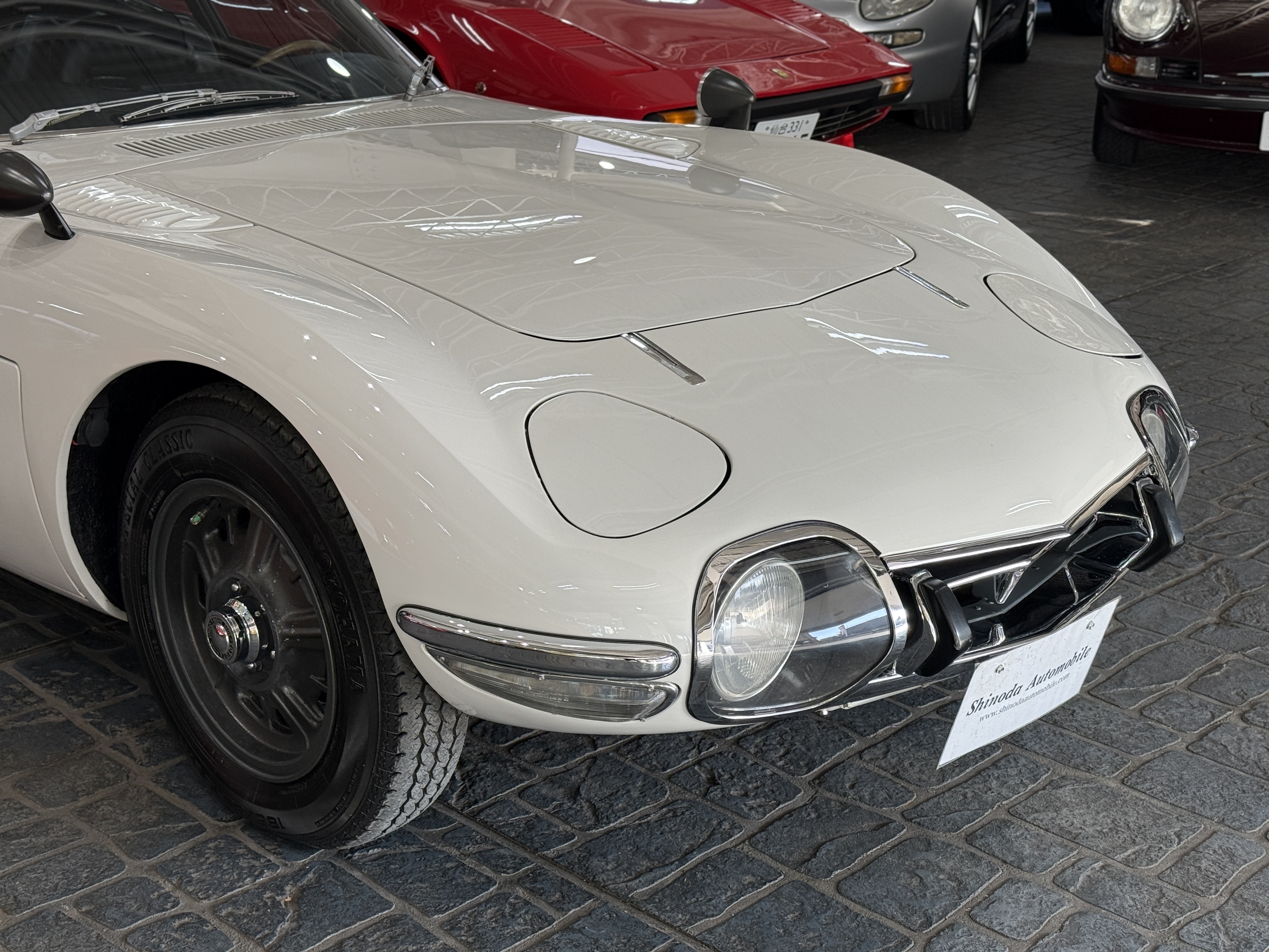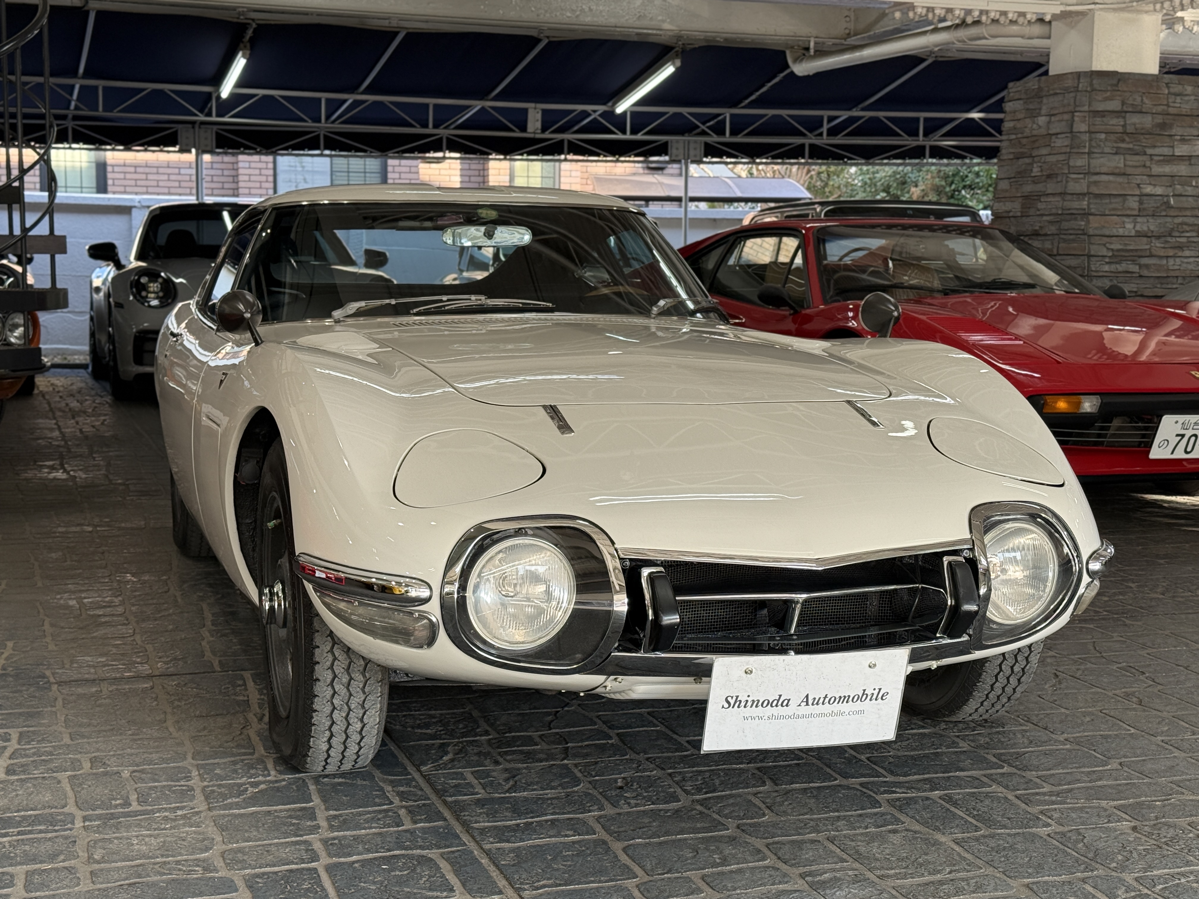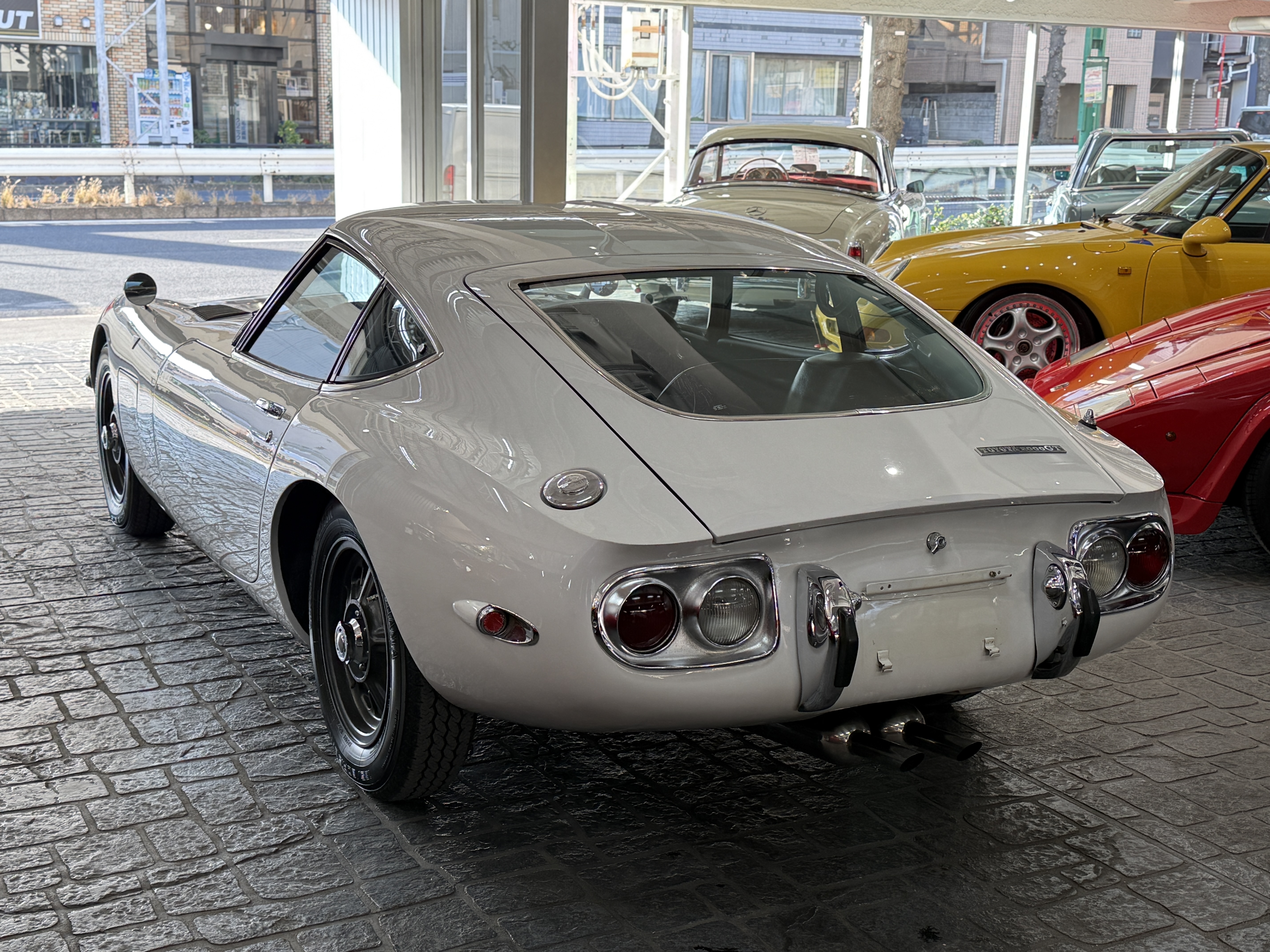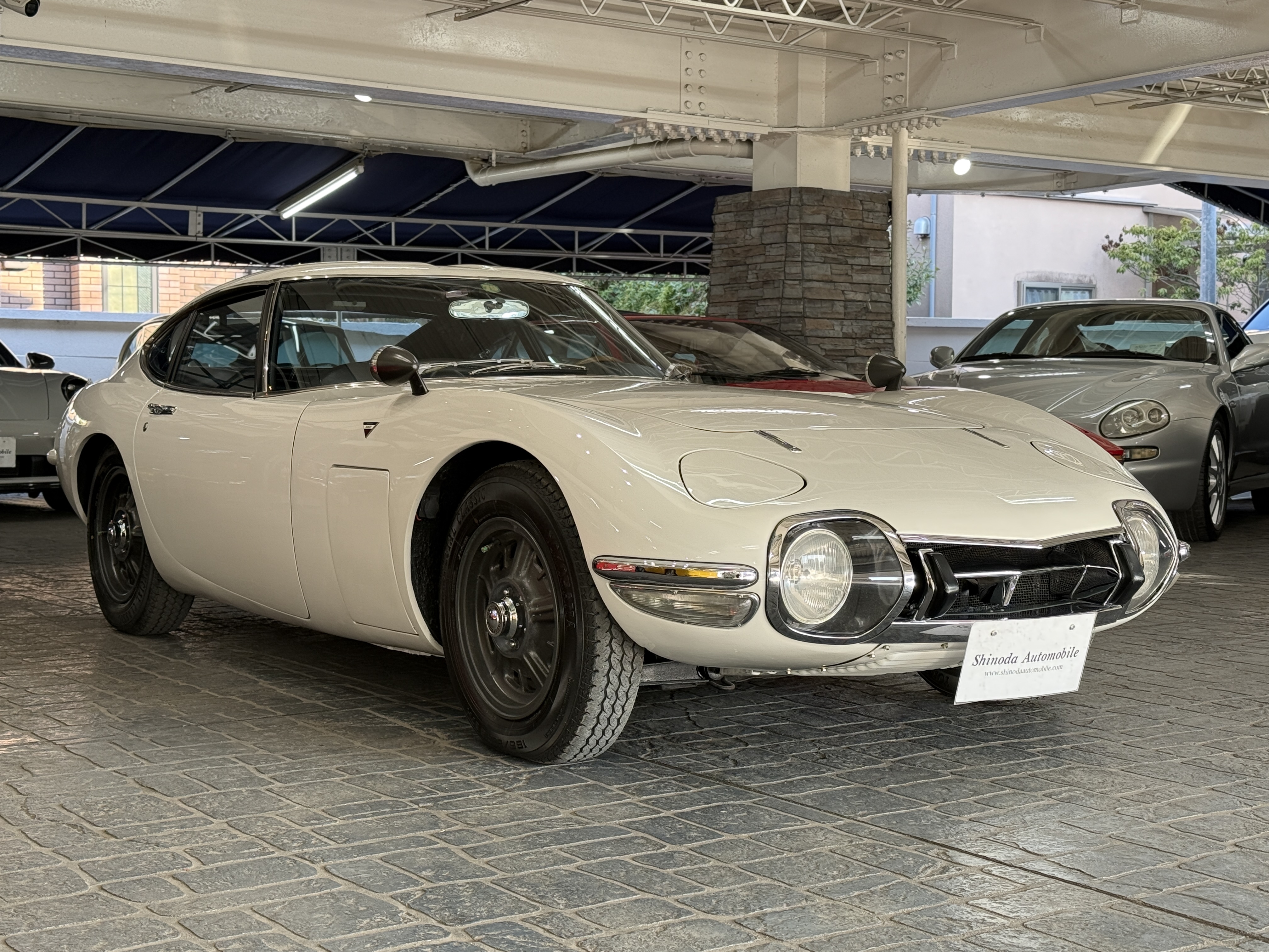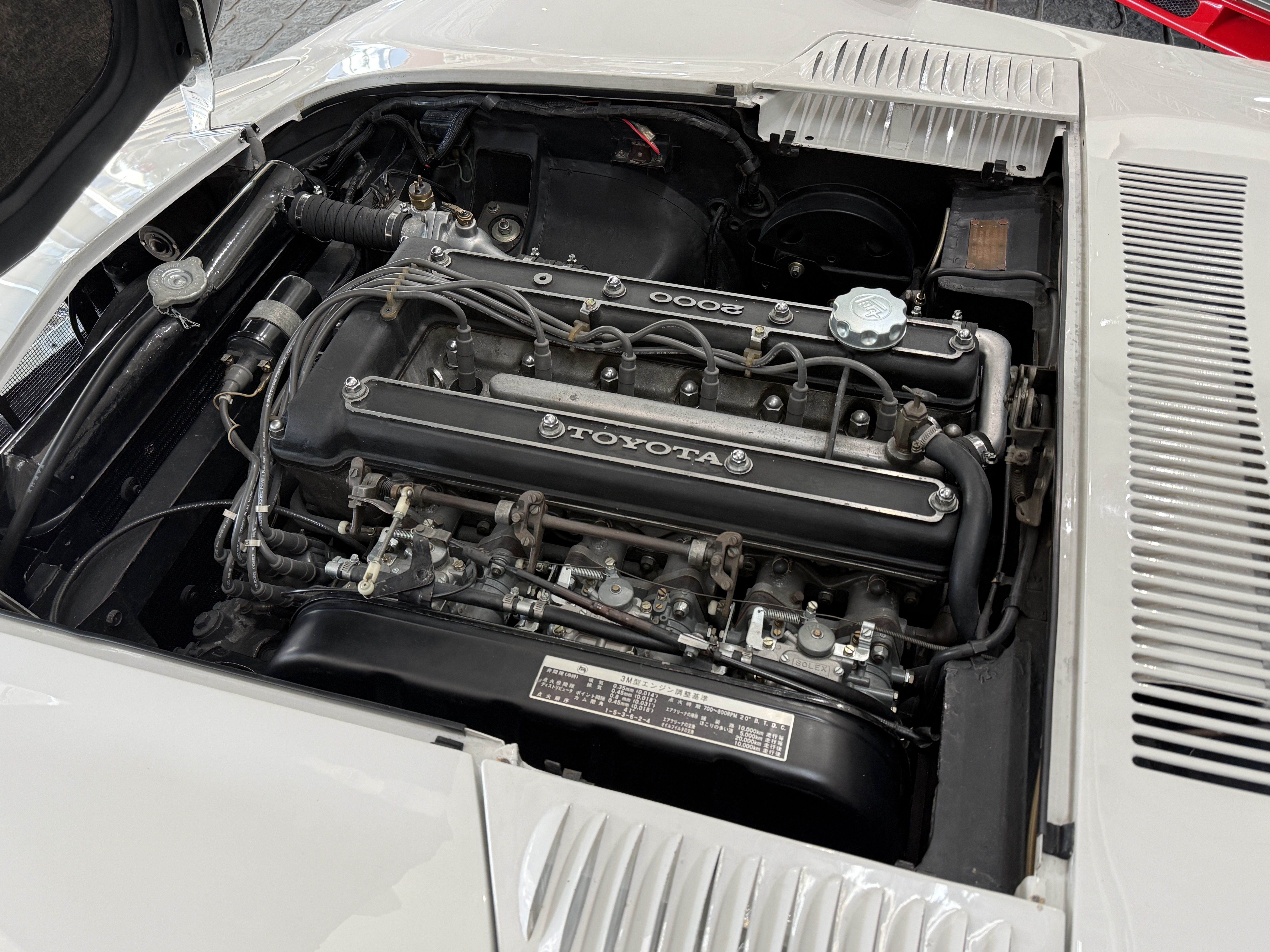 ︎1962年9月に建設された鈴鹿サーキットでは、翌年の1963年5月に、わが国のモータースポーツのあけぼのともいえる「第一回日本グランプリ」が開催された。国際スポーツカークラスではロータスやフェラーリ、ポルシェが参戦する中で、C-Ⅱ、C-Ⅴ、C-Ⅵクラスの3クラスでそれぞれパブリカ、コロナ、クラウンが優勝し、トヨタはその技術力の高さと、優れたクルマの性能をアピールした。参加自動車メーカー各社が本腰を入れ迎えた翌年の「第二回日本グランプリ」では、スカイラインやグロリアを有するプリンス自動車に先を越され、ヨーロッパ車の高性能ぶりを目の当たりにしたトヨタは、持てる技術を結集させ「ル・マン24時間」レース参戦も視野に入れた、国際的なスペックをもつ新型スポーツカー(コードネーム280A)を開発するプロジェクトをスタートさせる。直列6気筒2000ccのDOHCエンジン、5段・フルシンクロのマニュアル・トランスミッション、リミテッド・スリップ・ディファレンシャル、ダブル・ウィッシュボーン式+コイルスプリングによる四輪独立懸架、四輪ディスクブレーキ等、当時考え得る限りの技術を盛り込み、その開発に臨んだ。更に当時、最先端のスポーツカーであった「ロータス・エラン」に影響を受けたと思われる、ボックス断面をもつ鋼板製のX型バックボーンフレームの採用も考慮され、驚異的ともいえるスピードで開発が進められるとともに高い性能を追求していた。そこで追い風となったのは、日産との協業でスポーツカーを開発するというプランを白紙にされた、日本を代表するオートバイメーカー、ヤマハからの協力の申し出だった。ヤマハ発動機が、楽器製造から分離独立したのが1955年、デビュー作ともいえる2輪車「YA-1」のヒットをきっかけにホンダやスズキの様に自動車生産にも意欲をみせ、DOHCエンジンやイタリアのカロッツェリアの様な、ハンドクラフトによるボディ生産技術の研究を進めていた。ヤマハは、本来なら独自でクルマ開発を行うところを日産と協力するカタチで技術を磨き、1964年の第11回東京モーターショーでは「ダットサン・クーペ1500(後の初代シルビア・CSP311型)」を製作し発表するに至る。そこから更にオールアルミ製DOHCエンジンを搭載したプロトタイプGT「A550X」を製作するが、日産との関係は解消。その手腕を買われトヨタの新型スポーツカー開発プロジェクトに協力する事となる。レースでは監督を務めていたトヨタの河野二郎主査率いる少数精鋭の新型スポーツカー開発チームが描くアウトラインを基に、ヤマハが細部の部品設計を担い発案から僅か1年後の1965年秋、150万人もの入場者を集めた第12回東京モーターショーのトヨタブースに、早くもそのプロトタイプが姿を見せた。既に販売が開始されていた小型スポーツモデル「トヨタスポーツ800(UP15型)」にも通じるフロントマスクをもつそのモデルは「トヨタ2000GT(MF10型)」と名付けられ、後にデビューすることになる市販型とほぼ同様のスタイルをもち、低く流れる様なボディ・デザインと豪華な装備により、大きな驚きをもって人々の注目を集めた。トヨタ社内デザイナーの野崎喩(さとる)は、このモデルをデザインするにあたり「空気抵抗を低く抑える為に全面投影面積をなるべく小さくし、ボディ表面を流れる空気の流れを乱す事無くリフトが発生しない様に慎重にデザインした」と語る。フロントに直6エンジンを搭載するファストバックの2座GTクーペなので、そのフォルムは1961年にデビューした「ジャガーEタイプ」と比較されがちだけれど、大きな曲率をもつラインで表面処理された「Eタイプ」のボディデザインに対して、一回り小さなボディの「2000GT」はフロントやリアのフェンダー部分やノーズ先端付近に存在するエッジがアクセントとなり端正にまとめられたスタイルをもつ。このエッジをもつボディのイメージは野崎が1963年、米国カリフォルニアの「アートセンター・スクール」に短期留学し、その時に自身で描いた無名のGTカーのスケッチにサイドまで回り込んだフロントウィンドウとともに既に存在していた。プロジェクトが進行するにつれラウンドしたボディに美しくエッジが融合して見せる絶妙なプロポーションは日本らしさを含みながら、時の経過とともに存在感を高める秀逸なデザインとして輝きを増す事となる。また国産モデルとして初採用となった特徴的なリトラクタブル・ヘッドライトは、対米輸出を考慮してカリフォルニアの規格をクリアする為に、地上高24インチを確保したものとなっている。ショーデビューを果たした後に実走行によるテストが開始されると、はじめに空力の影響が確認された。風洞実験もままならず、デザイナーの想像と経験をもとにデザインされたボディなので心配されたのは空力によるリアのリフトだった。幸いテストドライバーからの指摘はなく、テストの要点は高い速度における耐久性に移っていった。それを確認する一環として1966