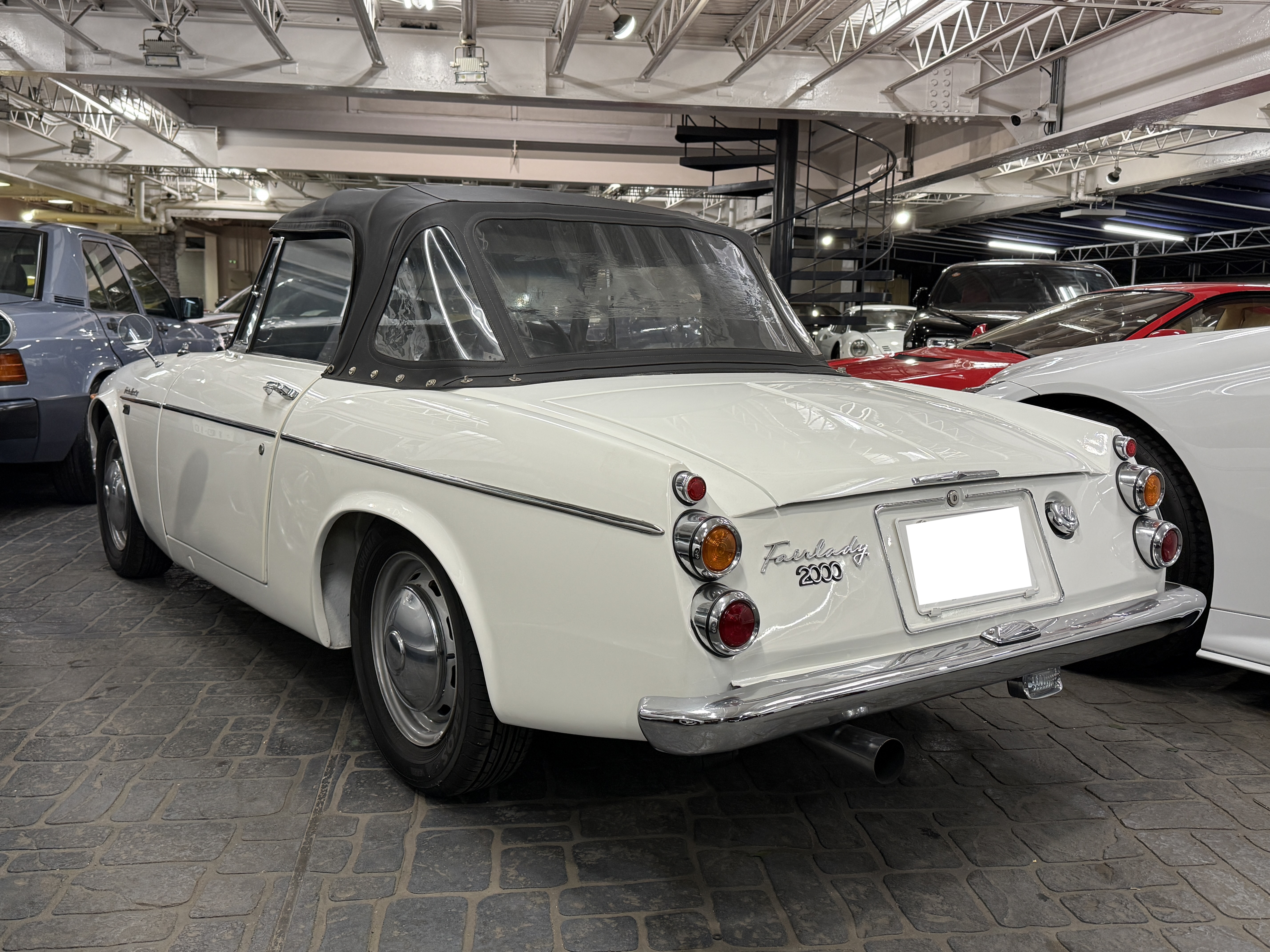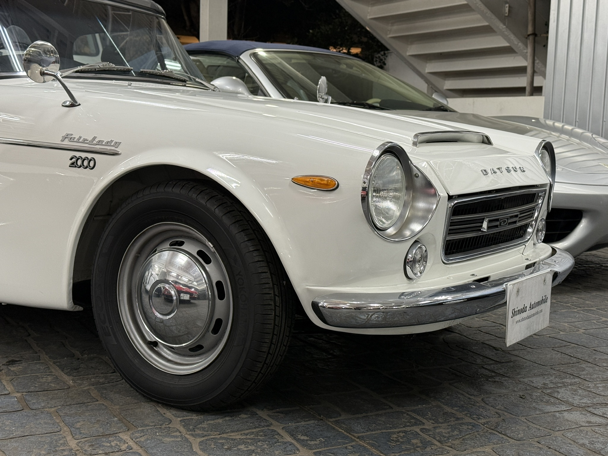 ︎ 1961年秋の東京モーターショーでデビューした「ダットサン・フェアレディ1500(SP310型)」は、60年代の典型的なスポーツカーのスタイルで表現された国産オープンスポーツモデルで、ショーデビューから1年後の1962年10月に販売が開始された。この「フェアレディ1500」以前のスポーツモデルは、国産車で初めて「スポーツ」を車名に採用して1952年に登場した「ダットサン・スポーツDC-3」が挙げられる。このモデルを起点として、FRPボディをもつ「ダットサン・スポーツ(S211型)」が続く。そして「フェアレディ」以前に「フェアレデー」と名付けられた「SPL212型」と、その発展型の「SPL213型」が存在するが、左ハンドルの輸出専用モデルとなり、実質的な国産スポーツモデルの始まりは「SP310型フェアレディ」からと言えるだろう。国産初の本格的スポーツカーとしてデビューした「ダットサンフェアレディ1500」は「ブルーバード(P312型)」のシャーシ・フレームにクロスメンバーを追加して剛性を高め、フロントにダブルウィッシュボーン式+コイル、リア・リーフリジットという足回りも「ブルーバード」のものを改良して採用していた。シンプルな形状のフロントグリルを持ち、丸目2灯のヘッドライトから始まるフェンダーラインはそのままウェストラインへと緩やかなアールが付けられ、ドア後方からキックアップしキャビン後方をグルリと囲む。ドア後方からキックアップするラインは直線的に伸びホイールアーチ後方で斜めにスッキリと断ち落とされ、平面状のリアパネルへと続く。フロントタイヤに沿った形状のホイールアーチに対して、リアはホイールに被るような形状をもつのは同時期のオープンスポーツモデル「MGB」にも通じるデザインと言えるのかもしれない。このボディデザインは「ダットサンフェアレディ」シリーズを通して基本的には継承されるものとなる。エンジンは「セドリック(50型)」用の1.5ℓ・水冷直列4気筒OHVの71馬力/11.5kgmを発揮するエンジンを搭載し、ドライバーズシートの後ろに横向きにシートを装備していたのが特徴となる。1964年モデルからは2シーター化され、東京オリンピックの翌年の1965年5月には先にデビューしていた「シルビア(CSP310型)」から、90馬力/13.5kgmを発揮する新型1.6ℓ・4気筒SOHCエンジンとポルシェタイプのシンクロを装備した4速マニュアルミッション、フロント・ディスクブレーキを流用した「ダットサンフェアレディ1600(SP311型)」がデビューする。ボディデザインが継承された「フェアレディ1600」は、この時点でカタログデータとして最高速度160km/hを超え、当時のスポーツカーとしてのひとつの指標でもある“100マイル・カー”への仲間入りを果たしている。あくなき高性能への更なる発展を目指し1967年3月「ダットサンフェアレディ」シリーズのトップモデルとして発表されたのが「フェアレディ2000(SR311型)」となり、車名の通り2ℓ・4気筒SOHCエンジンを搭載し、あらゆる面で当時の日本のスポーツカー史上、最強・最速の硬派な一台として登場したモデルとなっている。︎生産された台数のその多くが、北米に輸出された「SP/SR型フェアレディ」は、オースチンヒーレーや、MG、トライアンフなど第二次世界大戦以降ブリティッシュスポーツを中心にヨーロッパのメーカーによる独占状態だった北米市場を少しずつ塗り替えていく事となる。北米に於ける「ダットサン/日産」の正式な活動は、1960年に現地法人の「NMC(ニッサン・モーター・コーポレーションUSA)」をロサンゼルスに設立した時から本格的に始まる。1958年には僅か52台だった輸出販売台数は「NMC」が開設された年には、初代「フェアレデー(SPL212型)」が123台輸出され、翌年にはパワーアップされた「SPL213型」が106台販売された。これを足掛かりに1962年からは「フェアレディ1500(SPL310型・型式に含まれるLは左ハンドルを意味する)」を北米デビューさせ、少しずつマーケットを拡大しながら1966年迄に3148台が販売された。1.6ℓ化された後継モデル「フェアレディ1600(SPL311型)」は2万3609台を販売し、最高性能版の「フェアレディ2000(SRL311)」は、1万5718台を売り上げ「SP/SR型フェアレディ」として4万2704台もの台数のほとんどはカリフォルニアを中心として販売台数を伸ばし、ブリティッシュ・オープン・スポーツモデルのマーケットに食い込んでいった。北米のスポーツカーファンは物珍しさだけではなく、そのポテンシャルの高さをしっかりと認めSCCA(スポーツカー・クラブ・オブ・アメリカ)のレースには「SP/SR型フェアレディ」が大挙してエントリーするほどの人気を得ていた。レースを戦った代表的な人物としては、キャロル・シェルビーのファクトリーで「デイトナ・コブラ」を製作し、自ら「ブロック・レーシング・エンタープライズ(BRE)」を率いて主に西海岸を中心にレース活動をしていたピート・ブロックが知られている。東側では、本人がレーシングドライバーとして活躍していたボブ・シャープの活躍が広く