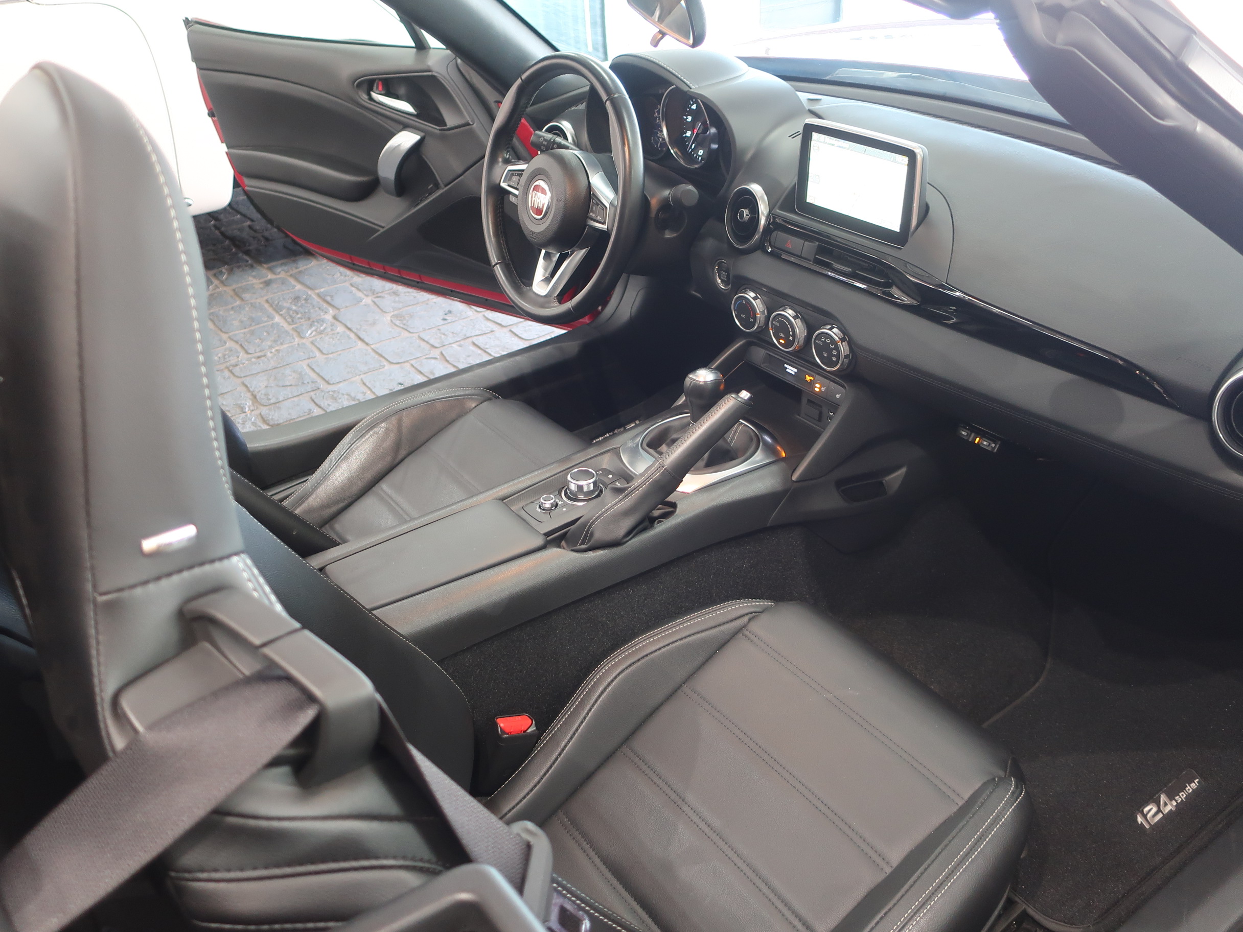 ︎2015年11月のLAショーで発表された、新しい「フィアット124スパイダー」、翌年の2016年3月のジュネーブショーでは、そのチューンナップ・モデルとなる「アバルト124スパイダー」がデビューする。フィアットはこれまで多くのオープントップモデルを世に送り出してきた自動車メーカーで、初代「124スパイダー」がデビューした1966年は、フィアットを大きく成長させたヴィットリオ・バレッタから創業者の孫にあたるジャンニ・アニエッリに経営が引き継がれた年となる。「フィアット124スパイダー」は、この年のトリノショーで「124スポルト・スパイダー」としてデビューを果たした。その美しいボディデザインはピニンファリーナによるもので、担当したのは当時在籍していたトム・チャーダとなる。27歳でピニンファリーナに移籍したトム・チャーダは「フェラーリ365GTカリフォルニアスパイダー」のデザインなどに関わるが、彼の代表作といえば34歳の時に、デザインディレクターだったジョルジェット・ジュジャーロの後任として再び戻ったカロッツェリア・ギアでの「デ・トマソ・パンテーラ」となるのかもしれない。発表された「124スポルト・スパイダー」は、1967年春のジュネーブショーでデビューする「124スポルト・クーペ」と共にフィアットに初のヨーロッパ・カー・オブ・ザ・イヤーをもたらした「124」シリーズの一翼を担っていた。フィアットがラインナップするモデルは、それまでは排気量の数字をモデル名としてきたが、この「124」以降、「128」「131」「132」は開発ナンバーがモデル名となっている。「124スポルト・スパイダー」は、当初搭載していた1.4ℓDOHC・4気筒エンジンは、メインマーケットとなる北米での排ガス規制に対応しながら1.6ℓ、1.8ℓと排気量を拡大し、最終的には2ℓまで進化を重ねながら1980年代まで生産が続けられた。また1972年にはヨーロッパラリー選手権(ERC)、世界ラリー選手権(WRC)への参戦を目的に、アバルトによりエボリューションモデルとなる「フィアットアバルト124ラリー」をFIAグループ4レギュレーションに沿って開発(フィアットアバルト124ラリーのアバルトでの開発ナンバーはSE026となる)する。ボディ剛性を確保しにくいオープントップモデルとしては、驚異的なパフォーマンスと結果をモータースポーツ界にも残している。その歴史ある車名を引き継いで登場した新たな「124スパイダー」は、驚くべきことに現行型「マツダ・ロードスター(ND型)」をベースに開発され、イタリアはトリノのフィアットに代わって、日本の広島で製造されるモデルとなる。これは、2010年にデビューしたアルファロメオ創立100周年と、ピニンファリーナ創立80周年を記念したショーモデル「アルファロメオ ・デュエットッタンタ」が発端となっている。ピニンファリーナ在籍のローウィ・フェルメールシュによりデザインされた「デュエットッタンタ」はアルファロメオ の「スパイダーデュエット」と「80」を意味するイタリア語の「オッタンタ」を組み合わせた車名からもわかる様に「次期アルファロメオ ・スパイダー」を想定したモデルとなる。2012年5月23日にマツダとフィアット傘下のアルファロメオが、それぞれの「次期オープンスポーツモデル」について開発と生産に向けた協議を開始することに同意したと正式に発表。この声明の中に「両社のこれらのモデルをマツダ本社工場で生産することを想定する」という内容が含まれていた。明らかにFRレイアウトを想定したプロトタイプの「デュエットッタンタ」が次期「アルファロメオ ・スパイダー」として登場するという期待が高まった。しかし、当時のフィアットCEOだったセルジオ・マルキオンネによる「プレミアムメーカーであるアルファロメオは、全てのモデルをイタリア国内で作られなければならない」という結論から、ひと晩でこの新しいイタリアン・オープンスポーツカー計画はフィアットのものとなる。数多くのオープントップモデルをラインナップしてきたフィアットの歴史の中で、1966〜1985年までの長きにわたり総生産台数は20万台、WRCにも名を残すインパクトあるモデル名として「124スパイダー」が選択され「フィアット」版と、より高性能な「アバルト」版として開発はすすめられた。プラットフォームと足回りは、まだ正式発表されていなかった「ロードスター(ND型)」と共有となるが、ボディパネルに共通パーツは無くデザインは初代の面影を引用しながらフィアット・チェントロスティーレのルーベン・ワインバーグによりデザインされた。マツダとフィアット両社のデザイン・チームは、それぞれのスタッフを完全に隔離した状態でデザインを行い、完成まではお互いの作品を目にする事は無かったといわれている。6角形のフロント・グリルやボクシーなリアエンド、ボンネット上の二つのパワーバルジ、ドアハンドル付近からキックアップする特徴的なライン、ライン発光で強調されたヘッドランプの輪郭