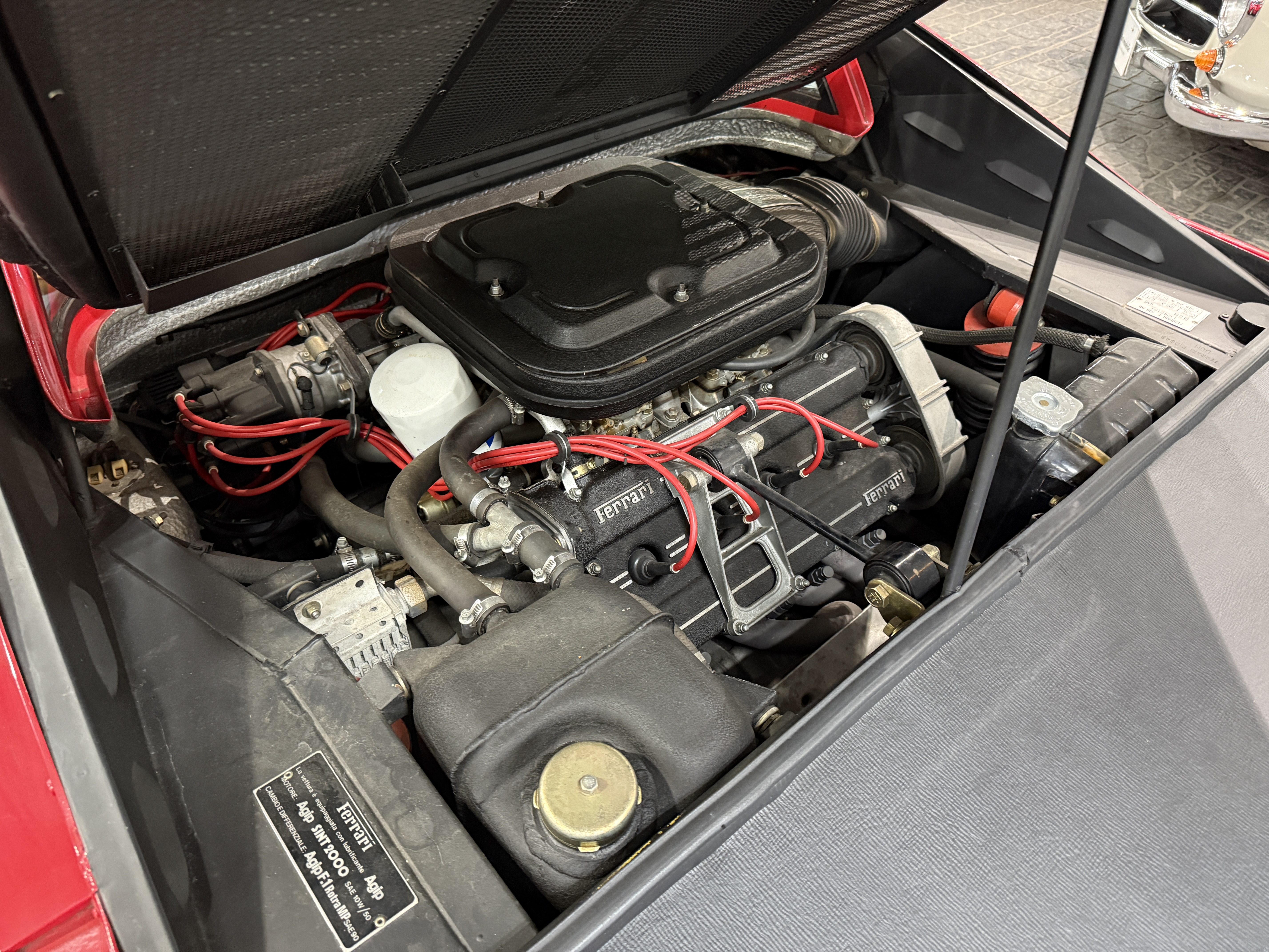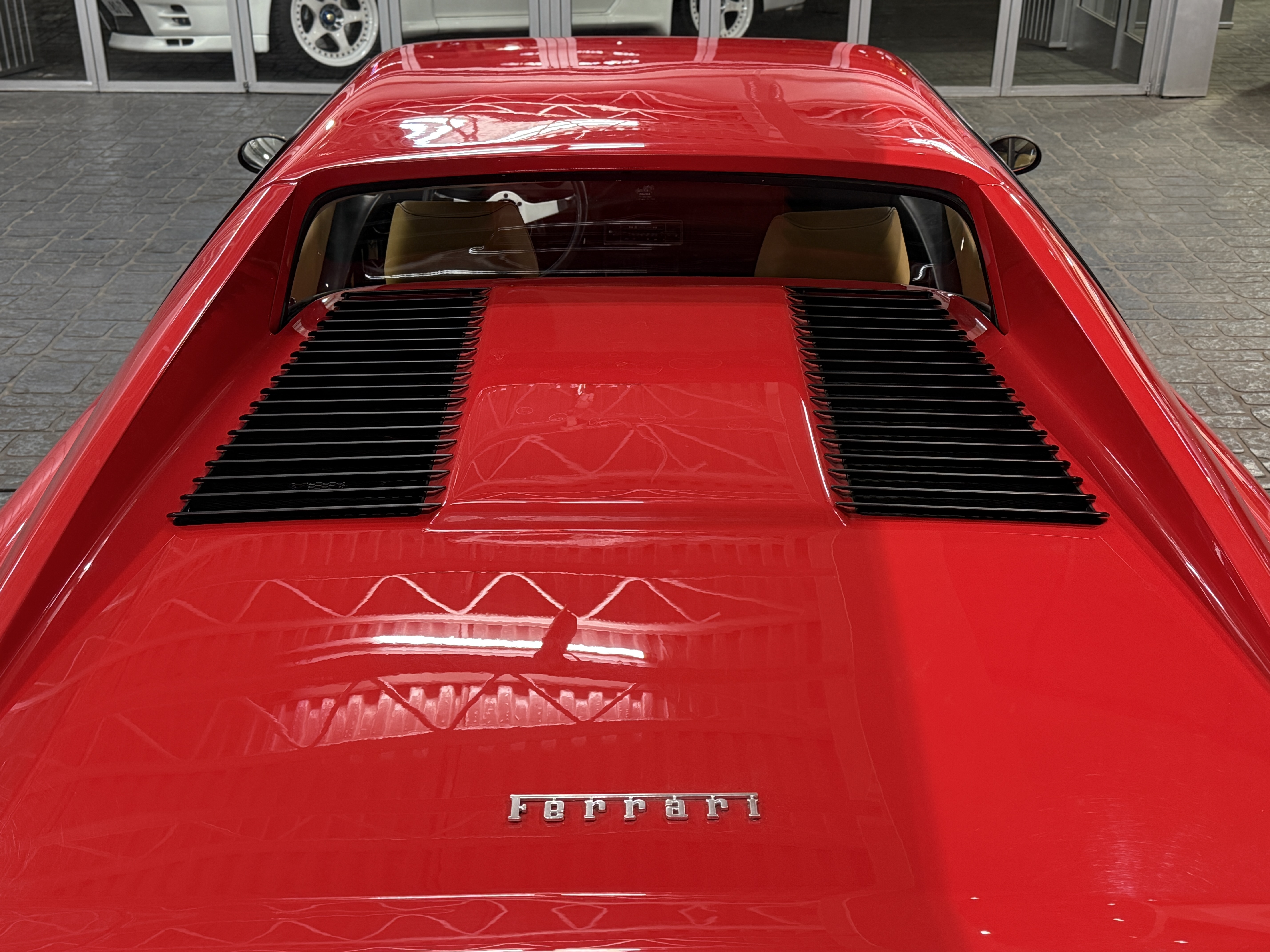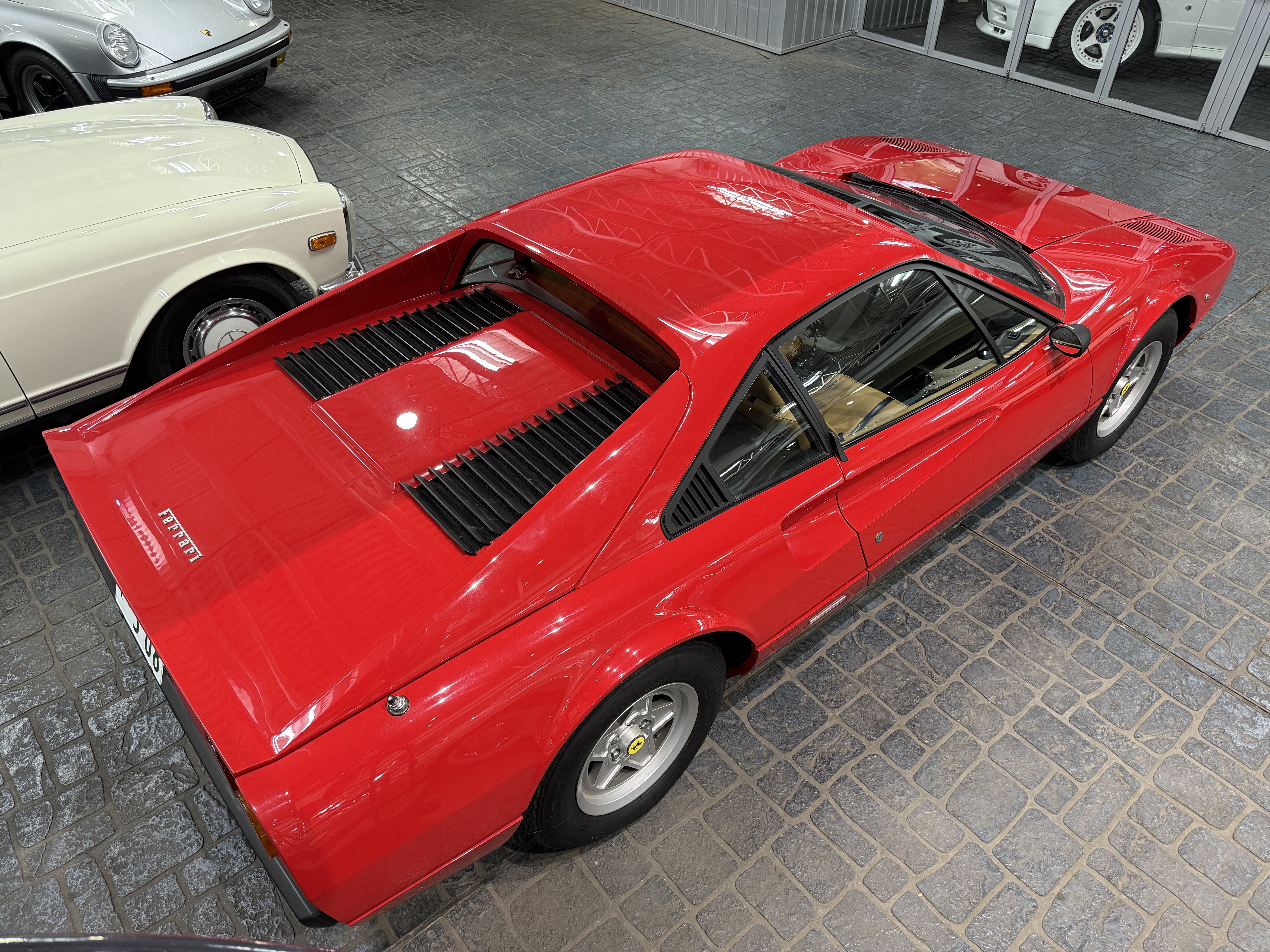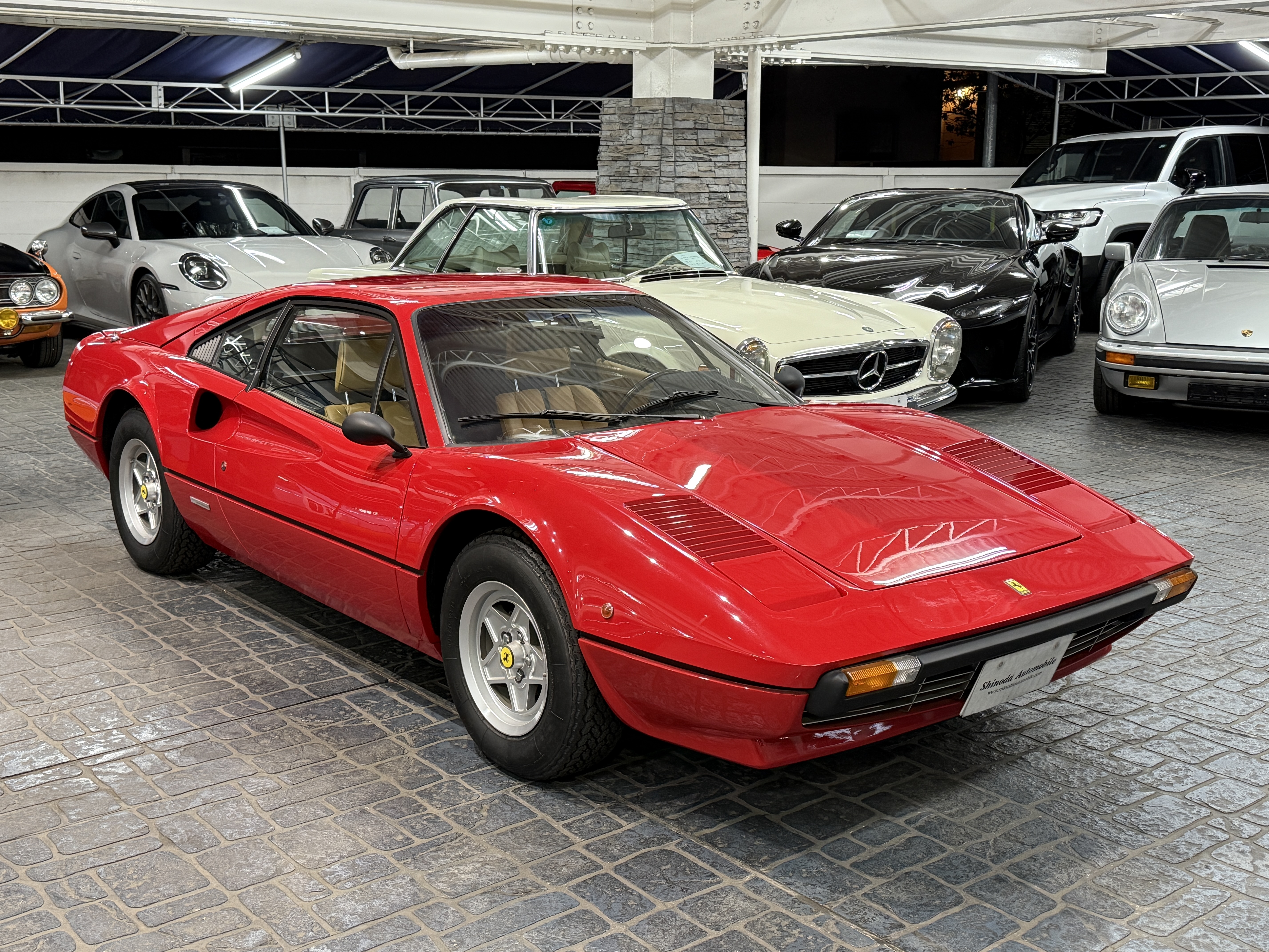 12気筒エンジンを搭載していないにもかかわらず、フェラーリのエンブレムをそのノーズに戴いたロードモデルがショーデビューを果たしたのは、1975年10月2日のパリサロンだった。その淡いブルーメタリックのボディカラーを纏ったスタイルには、あきらかに「ディーノ246GT」の正当な後継車としてのモチーフが使われていた。ドアからリアフェンダーにかけてのエアインテーク、クォーターピラーの造形、70年代的なシャープなエッジが取り込みながらも、本来なら「ディーノ」と呼ばれる1台になっていたのかもしれない。その車の名前は「フェラーリ308GTB」。3ℓでV型8気筒エンジンを搭載するGTで、クーペ(B=ベルリネッタ)という意味を持つ。12気筒エンジン搭載モデルが単一気筒容積を車名に用いるのとは異なり、排気量と気筒数を組み合わせるのも「ディーノ246GT」と同様となる。1992年に刊行された「インサイド・フェラーリ」というマラネロ・ファクトリー内部の写真が多く掲載された本の中に「フードにディーノのバッジの凹み(フェラーリ・エンブレムの縦長では無く、横長タイプ)をもつ」とキャプションに書かれた「308GTB」のプロトタイプと思われる一台の残骸の写真が掲載されている。確かに「ディーノ」の後継車として検討されていた時期があったのだろう。販売拡大を続ける「ポルシェ911」や「ランボルギーニ・ウラッコ」「マセラティ・メラク」に対抗するべく、1973年10月4日のパリサロンで先行デビューを果たした2+2モデルの「ディーノ308GT4」と2車種で「ディーノ・シリーズ」を編成するという考えを、1969年6月以降フェラーリ・ロードモデルを掌握していたフィアットは考えていたのかもしれない。フィアットは「ディーノ」をアルミボディの「206GT」から、製作しやすいスチール・ボディの「246GT」に変更した時の様に、生産規模と販売台数の拡大を目論んでいた。しかしその思惑は外れ、先行デビューした「ディーノ308GT4」への北米での反応が良く無かった。これには誰の目にもエモーショナルなスポーツモデルに映る「ディーノ246GT」とは異なり、プレーンなベルトーネ・デザインの「GT4」のボディデザインはわかりやすさに欠けるだけでなく、北米の顧客は「フェラーリ」のブランドを求めていた。それに加えて1974年9月に北米で施行されたFMVSS(連邦自動車安全基準)により、それまで販売されていた「365GTB/4デイトナ」「365GTC」「ディーノ246GT」が違法車扱いとなり販売出来ない事態を招いていた。この状況を打開すべく登場したのが「フェラーリ308GTB」となる。ボディデザインはピニンファリーナ製となり「デイトナ」「BB」を始めとする11台もの高い人気を誇るフェラーリ・ロードモデルのデザイン担当したレオナルド・フィオラバンティによるものとなる。そのデザインのベースとなったのは、自身がデザインを担当し1968年のトリノショーで発表したプロトタイプ「フェラーリP6」だといわれている。フロントフェンダーからのウェストラインや、サイドのエアインテーク形状、トンネルバックとなるリアのスタイルに共通性が感じられる。70年代的なウェッジを取り込みながらも、丸みと抑揚が感じられるフェンダーラインなどに着目すると、同じ1975年にデビューを飾るフィオラバンティのデザインによる「ランチア・モンテカルロ」に比べ、時代を遡る感じを受ける。1971年にプロトタイプがデビューした「365BB」のバンパーがボディと一体化してデザインされているのに着目すると、独立して別体でデザインされているバンパーが採用されている「308GTB」は、それ以前にデザインされていたのかもしれないとも考えられる。「308GTB」の開発は、フェラーリの市販車開発チームが担い、チーム責任者は以前からその職にあるアンジェロ・ベッレイとなる。地元モデナのフェルモ・コルニ高専卒ながら、創立直後からフェラーリに入社し勤務を続け、忠実な古参としてエンツォ・フェラーリから篤い信頼を得る人物で「275GTB」に始まり「テスタロッサ」までフェラーリ・ロードモデル開発に従事した。「308GTB」の車体構造は「ディーノ246GT」を踏襲した、フェラーリ伝統となるチューブラーフレーム構造となるが、FMVSSに対応したエネルギー吸収バンパーが装備可能となっている。フェラーリ御用達の鋼管フレーム専門工房ヴァッカーリによる鋼管フレームは、3本のクロームモリブデン鋼で出来た太い楕円断面鋼管を中心に、角断面鋼管を組み合わせラダー形状のセンターフレームを構築している。そこに前後サスペンションや、パワートレインの支持フレームが締結されている。この古くから用いられるチューブラーフレーム構造のシャーシに対して、その外皮となるボディパネルは、70年代に向けてフェラーリが新たに取り組む軽量化技術が用いられている。同様に運動性能を確保するという考えから、FRP製パーツやアルミ製カウルを導入し先にデビューを飾った「365BB」であったが「ディーノ」後継車とな