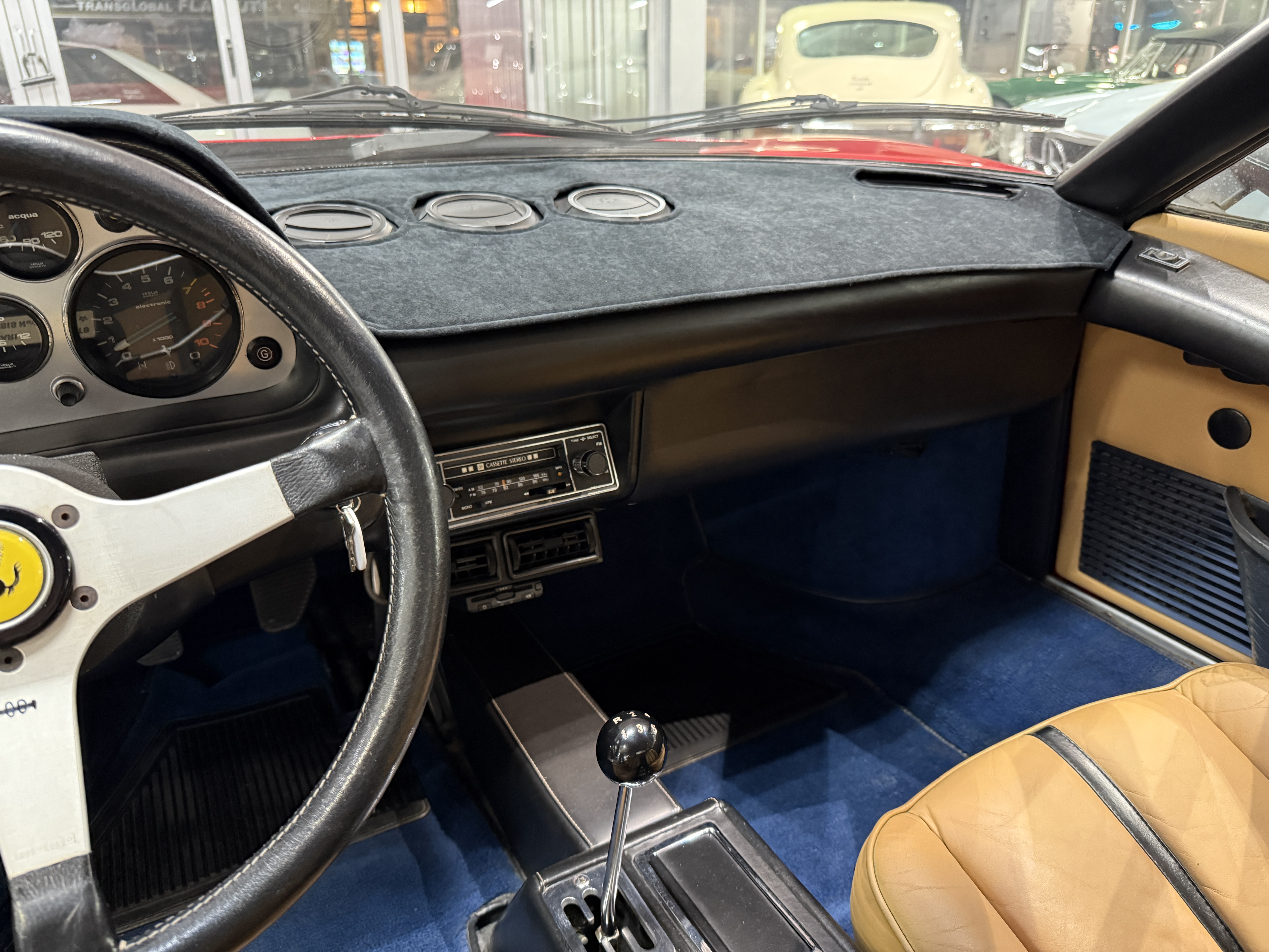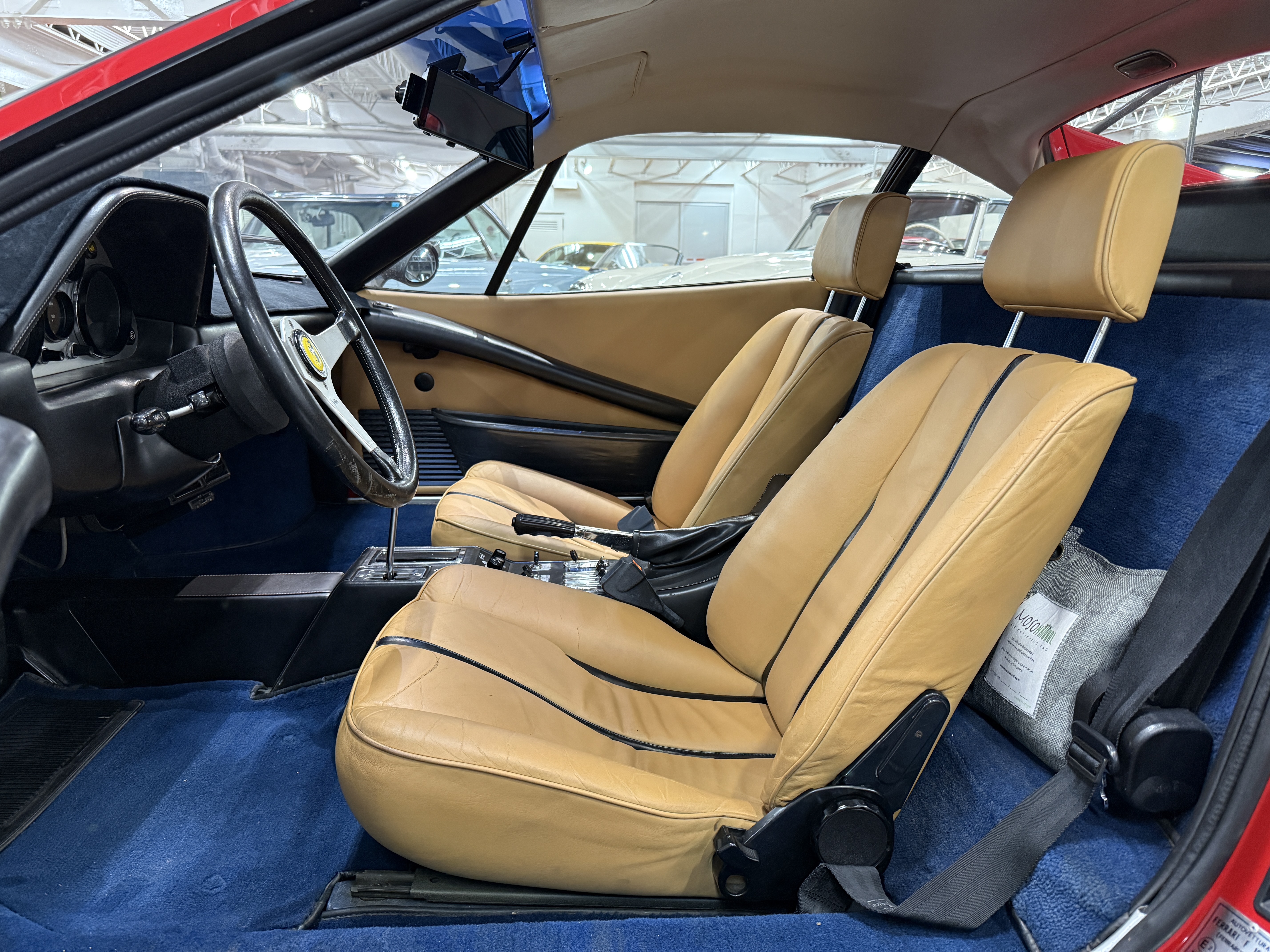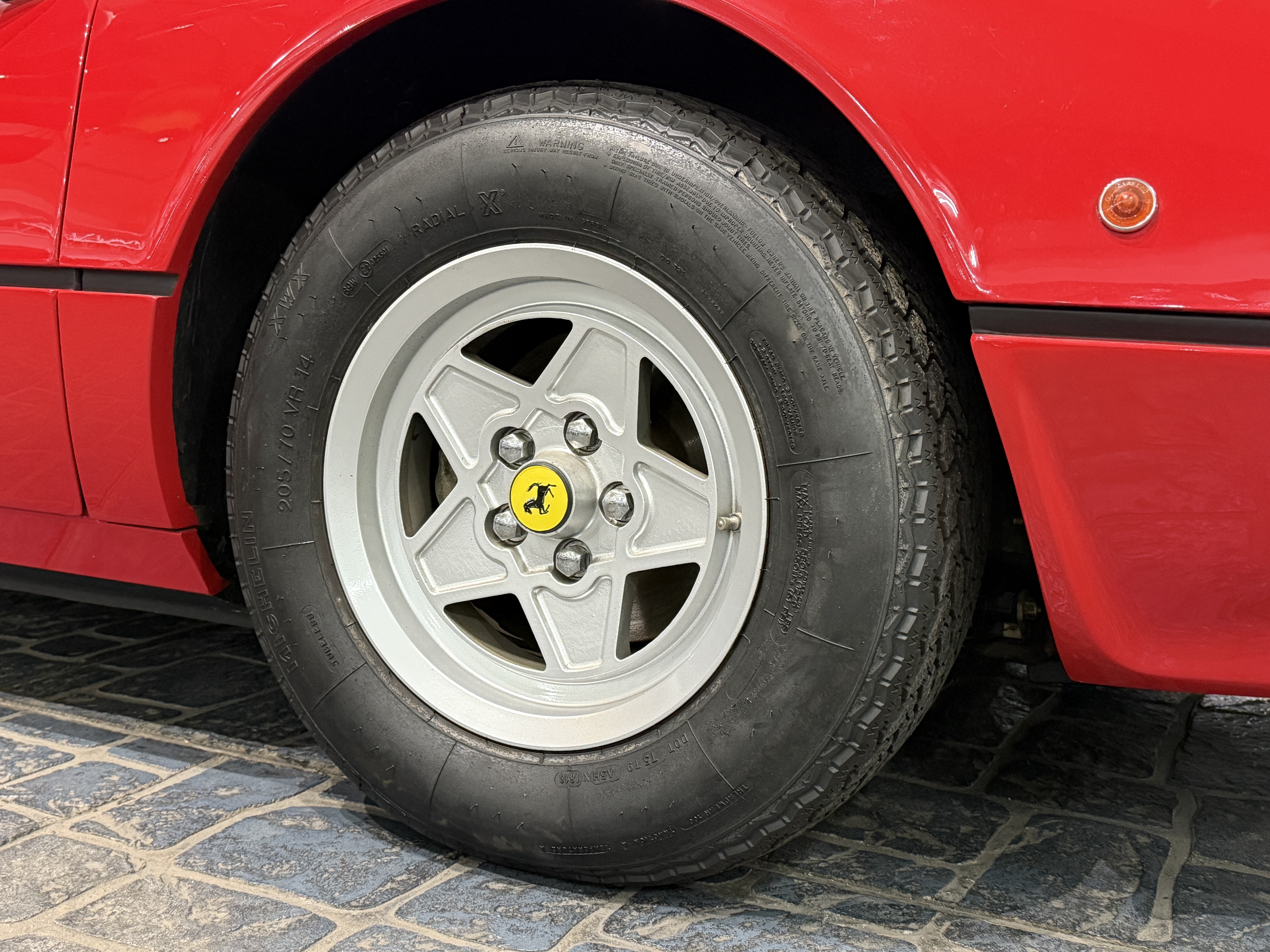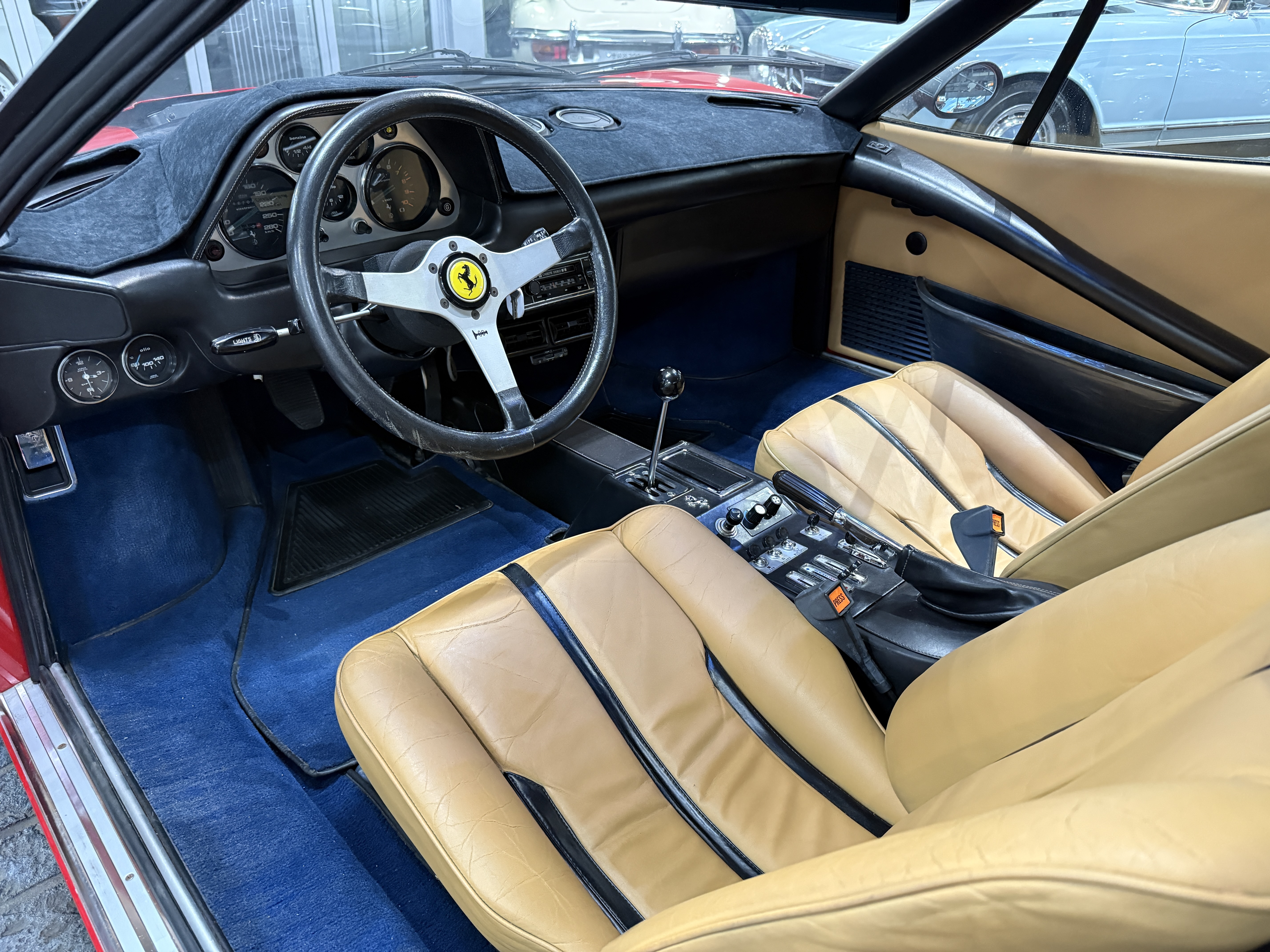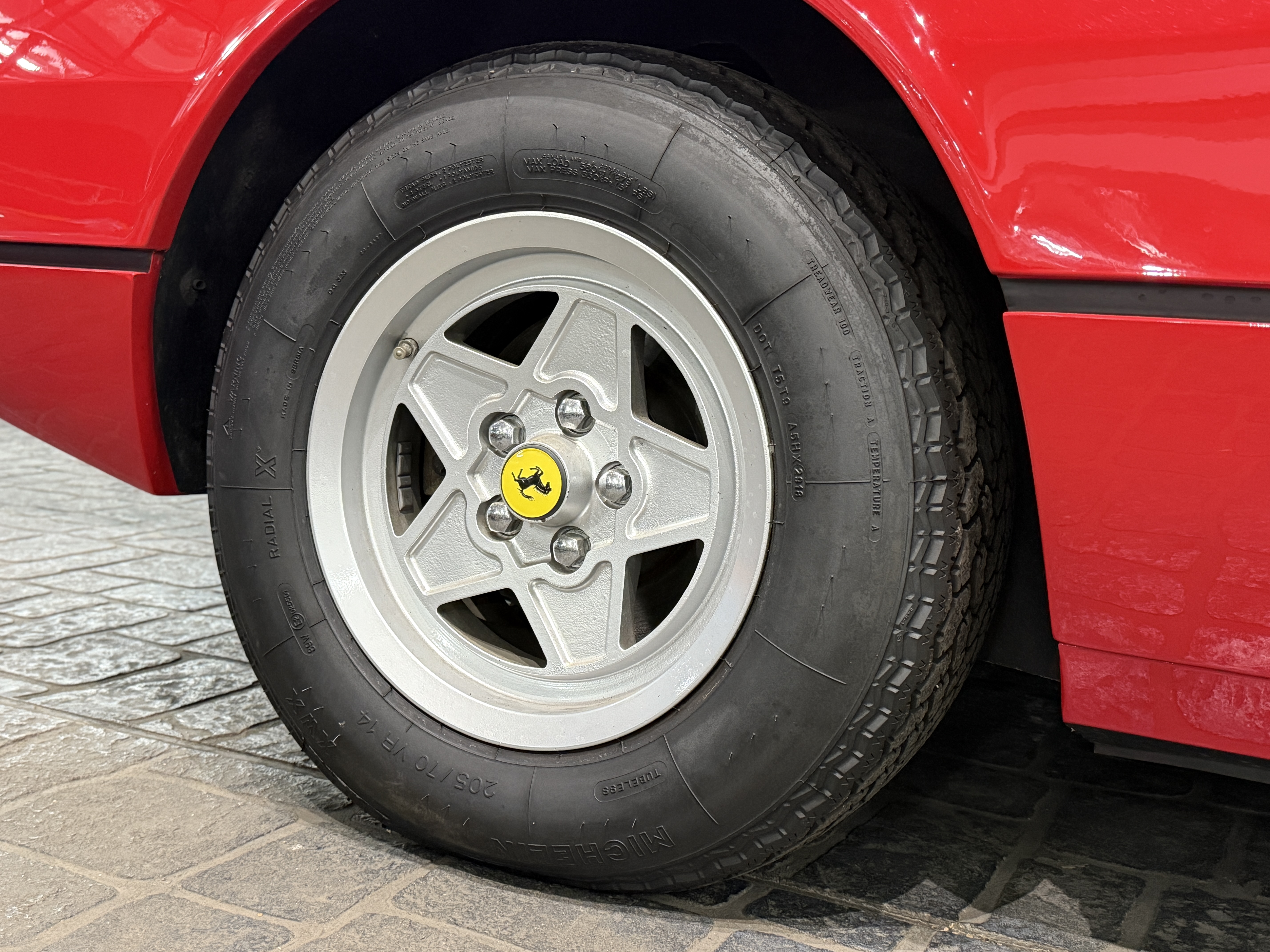 12気筒エンジンを搭載していないにもかかわらず、フェラーリのエンブレムをそのノーズに戴いたロードモデルがショーデビューを果たしたのは、1975年10月2日のパリサロンだった。その淡いブルーメタリックのボディカラーを纏ったスタイルには、あきらかに「ディーノ246GT」の正当な後継車としてのモチーフが使われていた。ドアからリアフェンダーにかけてのエアインテーク、クォーターピラーの造形、70年代的なシャープなエッジが取り込みながらも、本来なら「ディーノ」と呼ばれる1台になっていたのかもしれない。その車の名前は「フェラーリ308GTB」。3ℓでV型8気筒エンジンを搭載するGTで、クーペ(B=ベルリネッタ)という意味を持つ。12気筒エンジン搭載モデルが単一気筒容積を車名に用いるのとは異なり、排気量と気筒数を組み合わせるのも「ディーノ246GT」と同様となる。1992年に刊行された「インサイド・フェラーリ」というマラネロ・ファクトリー内部の写真が多く掲載された本の中に「フードにディーノのバッジの凹み(フェラーリ・エンブレムの縦長では無く、横長タイプ)をもつ」とキャプションに書かれた「308GTB」のプロトタイプと思われる一台の残骸の写真が掲載されている。確かに「ディーノ」の後継車として検討されていた時期があったのだろう。販売拡大を続ける「ポルシェ911」や「ランボルギーニ・ウラッコ」「マセラティ・メラク」に対抗するべく、1973年10月4日のパリサロンで先行デビューを果たした2+2モデルの「ディーノ308GT4」と2車種で「ディーノ・シリーズ」を編成するという考えを、1969年6月以降フェラーリ・ロードモデルを掌握していたフィアットは考えていたのかもしれない。フィアットは「ディーノ」をアルミボディの「206GT」から、製作しやすいスチール・ボディの「246GT」に変更した時の様に、生産規模と販売台数の拡大を目論んでいた。しかしその思惑は外れ、先行デビューした「ディーノ308GT4」への北米での反応が良く無かった。これには誰の目にもエモーショナルなスポーツモデルに映る「ディーノ246GT」とは異なり、プレーンなベルトーネ・デザインの「GT4」のボディデザインはわかりやすさに欠けるだけでなく、北米の顧客は「フェラーリ」のブランドを求めていた。それに加えて1974年9月に北米で施行されたFMVSS(連邦自動車安全基準)により、それまで販売されていた「365GTB/4デイトナ」「365GTC」「ディーノ246GT」が違法車扱いとなり販売出来ない事態を招いていた。この状況を打開すべく登場したのが「フェラーリ308GTB」となる。ボディデザインはピニンファリーナ製となり「デイトナ」「BB」を始めとする11台もの高い人気を誇るフェラーリ・ロードモデルのデザイン担当したレオナルド・フィオラバンティによるものとなる。そのデザインのベースとなったのは、自身がデザインを担当し1968年のトリノショーで発表したプロトタイプ「フェラーリP6」だといわれている。フロントフェンダーからのウェストラインや、サイドのエアインテーク形状、トンネルバックとなるリアのスタイルに共通性が感じられる。70年代的なウェッジを取り込みながらも、丸みと抑揚が感じられるフェンダーラインなどに着目すると、同じ1975年にデビューを飾るフィオラバンティのデザインによる「ランチア・モンテカルロ」に比べ、時代を遡る感じを受ける。1971年にプロトタイプがデビューした「365BB」のバンパーがボディと一体化してデザインされているのに着目すると、独立して別体でデザインされているバンパーが採用されている「308GTB」は、それ以前にデザインされていたのかもしれないとも考えられる。「308GTB」の開発は、フェラーリの市販車開発チームが担い、チーム責任者は以前からその職にあるアンジェロ・ベッレイとなる。地元モデナのフェルモ・コルニ高専卒ながら、創立直後からフェラーリに入社し勤務を続け、忠実な古参としてエンツォ・フェラーリから篤い信頼を得る人物で「275GTB」に始まり「テスタロッサ」までフェラーリ・ロードモデル開発に従事した。「308GTB」の車体構造は「ディーノ246GT」を踏襲した、フェラーリ伝統となるチューブラーフレーム構造となるが、FMVSSに対応したエネルギー吸収バンパーが装備可能となっている。フェラーリ御用達の鋼管フレーム専門工房ヴァッカーリによる鋼管フレームは、3本のクロームモリブデン鋼で出来た太い楕円断面鋼管を中心に、角断面鋼管を組み合わせラダー形状のセンターフレームを構築している。そこに前後サスペンションや、パワートレインの支持フレームが締結されている。この古くから用いられるチューブラーフレーム構造のシャーシに対して、その外皮となるボディパネルは、70年代に向けてフェラーリが新たに取り組む軽量化技術が用いられている。同様に運動性能を確保するという考えから、FRP製パーツやアルミ製カウルを導入し先にデビューを飾った「365BB」であったが「ディーノ」後継車とな