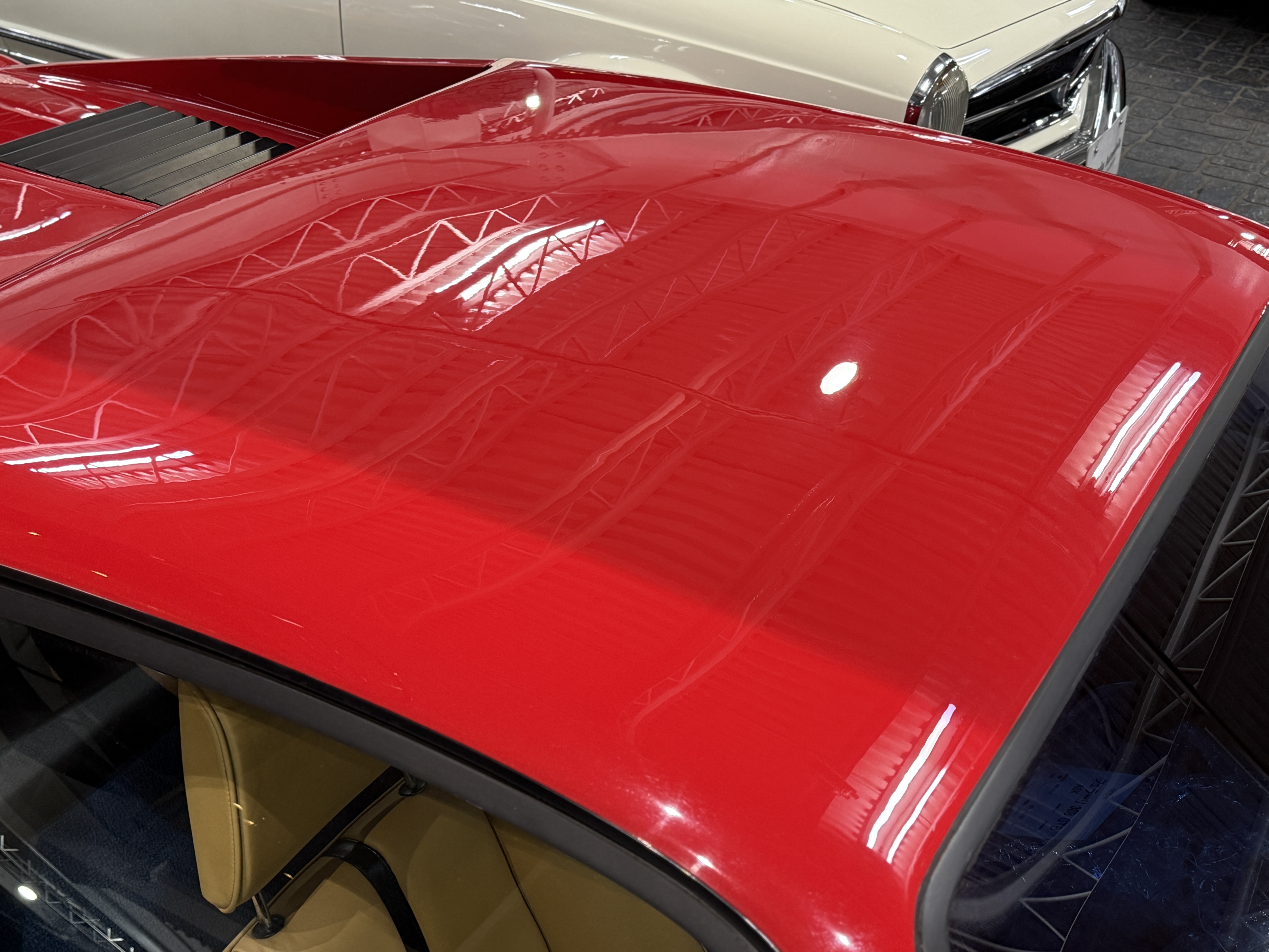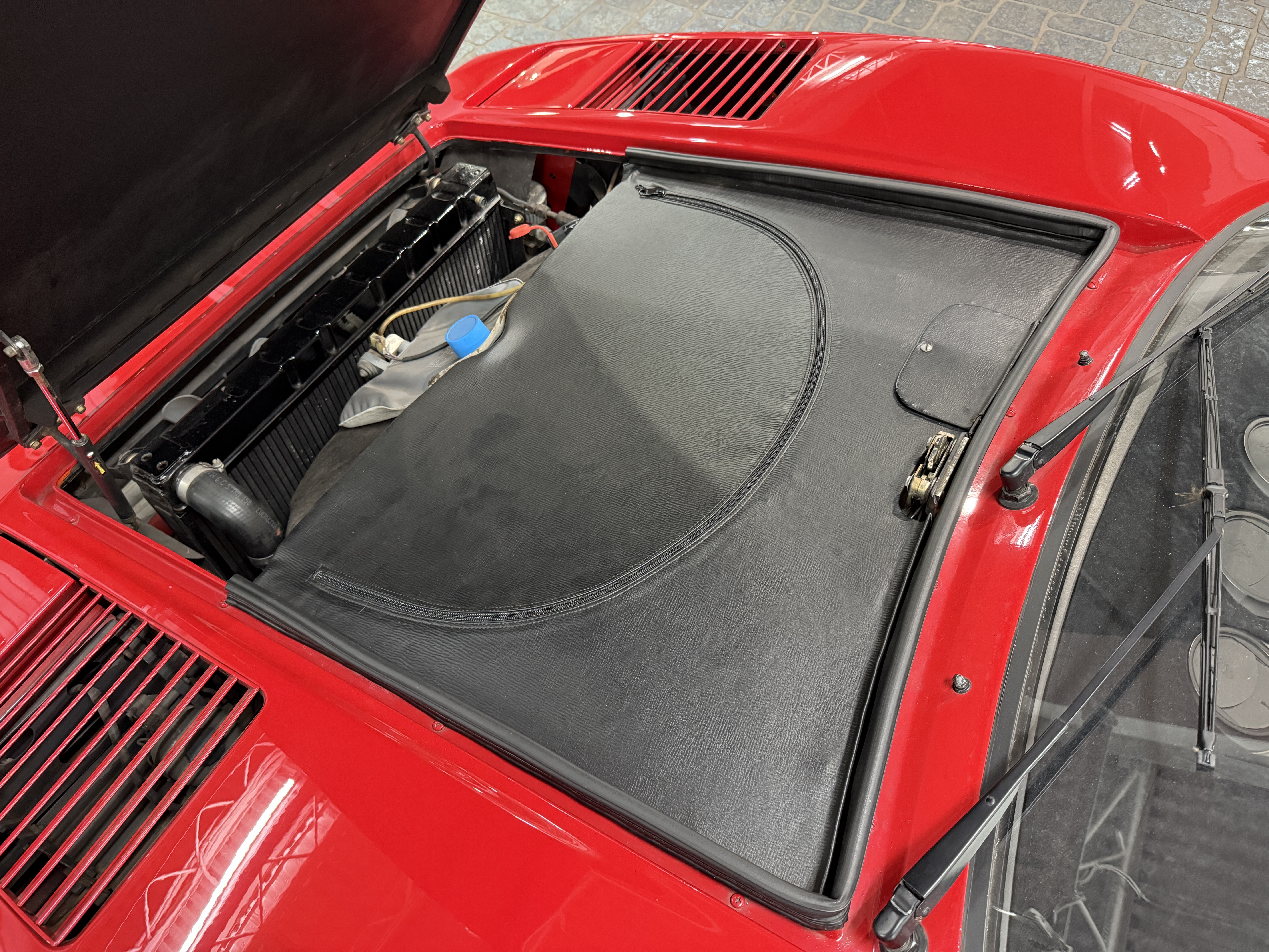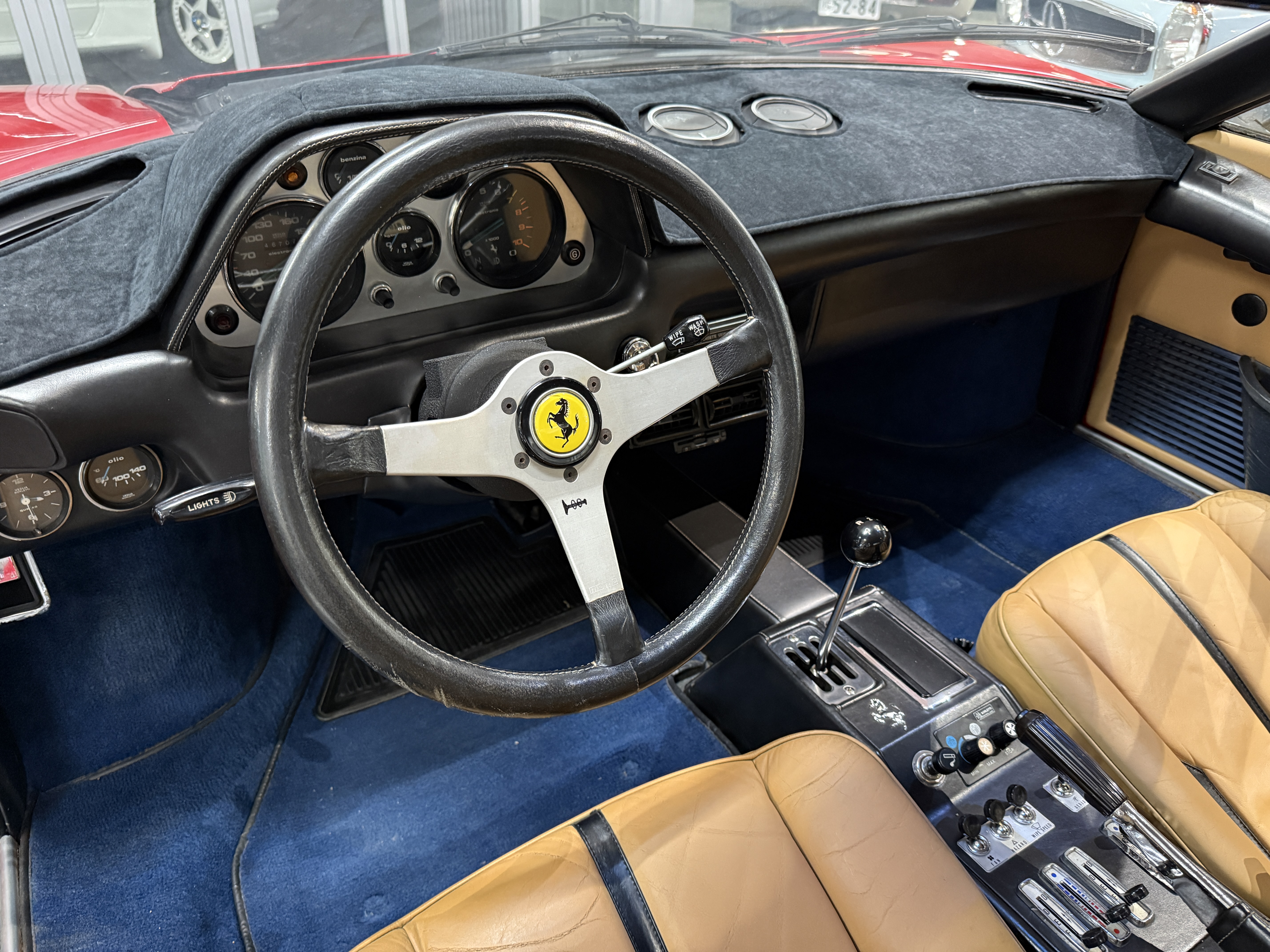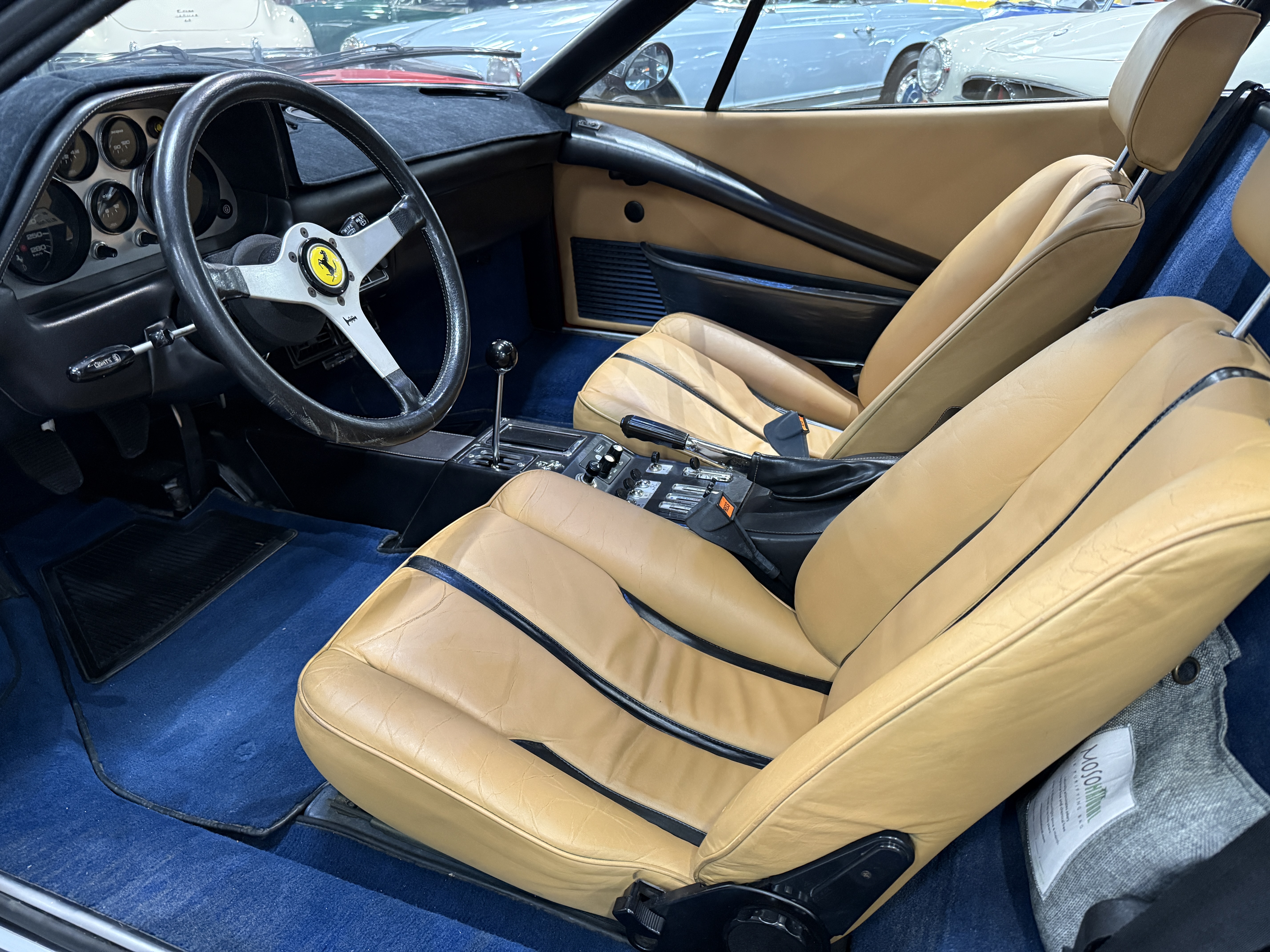 12気筒エンジンを搭載していないにもかかわらず、フェラーリのエンブレムをそのノーズに戴いたロードモデルがショーデビューを果たしたのは、1975年10月2日のパリサロンだった。その淡いブルーメタリックのボディカラーを纏ったスタイルには、あきらかに「ディーノ246GT」の正当な後継車としてのモチーフが使われていた。ドアからリアフェンダーにかけてのエアインテーク、クォーターピラーの造形、70年代的なシャープなエッジが取り込みながらも、本来なら「ディーノ」と呼ばれる1台になっていたのかもしれない。その車の名前は「フェラーリ308GTB」。3ℓでV型8気筒エンジンを搭載するGTで、クーペ(B=ベルリネッタ)という意味を持つ。12気筒エンジン搭載モデルが単一気筒容積を車名に用いるのとは異なり、排気量と気筒数を組み合わせるのも「ディーノ246GT」と同様となる。1992年に刊行された「インサイド・フェラーリ」というマラネロ・ファクトリー内部の写真が多く掲載された本の中に「フードにディーノのバッジの凹み(フェラーリ・エンブレムの縦長では無く、横長タイプ)をもつ」とキャプションに書かれた「308GTB」のプロトタイプと思われる一台の残骸の写真が掲載されている。確かに「ディーノ」の後継車として検討されていた時期があったのだろう。販売拡大を続ける「ポルシェ911」や「ランボルギーニ・ウラッコ」「マセラティ・メラク」に対抗するべく、1973年10月4日のパリサロンで先行デビューを果たした2+2モデルの「ディーノ308GT4」と2車種で「ディーノ・シリーズ」を編成するという考えを、1969年6月以降フェラーリ・ロードモデルを掌握していたフィアットは考えていたのかもしれない。フィアットは「ディーノ」をアルミボディの「206GT」から、製作しやすいスチール・ボディの「246GT」に変更した時の様に、生産規模と販売台数の拡大を目論んでいた。しかしその思惑は外れ、先行デビューした「ディーノ308GT4」への北米での反応が良く無かった。これには誰の目にもエモーショナルなスポーツモデルに映る「ディーノ246GT」とは異なり、プレーンなベルトーネ・デザインの「GT4」のボディデザインはわかりやすさに欠けるだけでなく、北米の顧客は「フェラーリ」のブランドを求めていた。それに加えて1974年9月に北米で施行されたFMVSS(連邦自動車安全基準)により、それまで販売されていた「365GTB/4デイトナ」「365GTC」「ディーノ246GT」が違法車扱いとなり販売出来ない事態を招いていた。この状況を打開すべく登場したのが「フェラーリ308GTB」となる。ボディデザインはピニンファリーナ製となり「デイトナ」「BB」を始めとする11台もの高い人気を誇るフェラーリ・ロードモデルのデザイン担当したレオナルド・フィオラバンティによるものとなる。そのデザインのベースとなったのは、自身がデザインを担当し1968年のトリノショーで発表したプロトタイプ「フェラーリP6」だといわれている。フロントフェンダーからのウェストラインや、サイドのエアインテーク形状、トンネルバックとなるリアのスタイルに共通性が感じられる。70年代的なウェッジを取り込みながらも、丸みと抑揚が感じられるフェンダーラインなどに着目すると、同じ1975年にデビューを飾るフィオラバンティのデザインによる「ランチア・モンテカルロ」に比べ、時代を遡る感じを受ける。1971年にプロトタイプがデビューした「365BB」のバンパーがボディと一体化してデザインされているのに着目すると、独立して別体でデザインされているバンパーが採用されている「308GTB」は、それ以前にデザインされていたのかもしれないとも考えられる。「308GTB」の開発は、フェラーリの市販車開発チームが担い、チーム責任者は以前からその職にあるアンジェロ・ベッレイとなる。地元モデナのフェルモ・コルニ高専卒ながら、創立直後からフェラーリに入社し勤務を続け、忠実な古参としてエンツォ・フェラーリから篤い信頼を得る人物で「275GTB」に始まり「テスタロッサ」までフェラーリ・ロードモデル開発に従事した。「308GTB」の車体構造は「ディーノ246GT」を踏襲した、フェラーリ伝統となるチューブラーフレーム構造となるが、FMVSSに対応したエネルギー吸収バンパーが装備可能となっている。フェラーリ御用達の鋼管フレーム専門工房ヴァッカーリによる鋼管フレームは、3本のクロームモリブデン鋼で出来た太い楕円断面鋼管を中心に、角断面鋼管を組み合わせラダー形状のセンターフレームを構築している。そこに前後サスペンションや、パワートレインの支持フレームが締結されている。この古くから用いられるチューブラーフレーム構造のシャーシに対して、その外皮となるボディパネルは、70年代に向けてフェラーリが新たに取り組む軽量化技術が用いられている。同様に運動性能を確保するという考えから、FRP製パーツやアルミ製カウルを導入し先にデビューを飾った「365BB」であったが「ディーノ」後継車とな